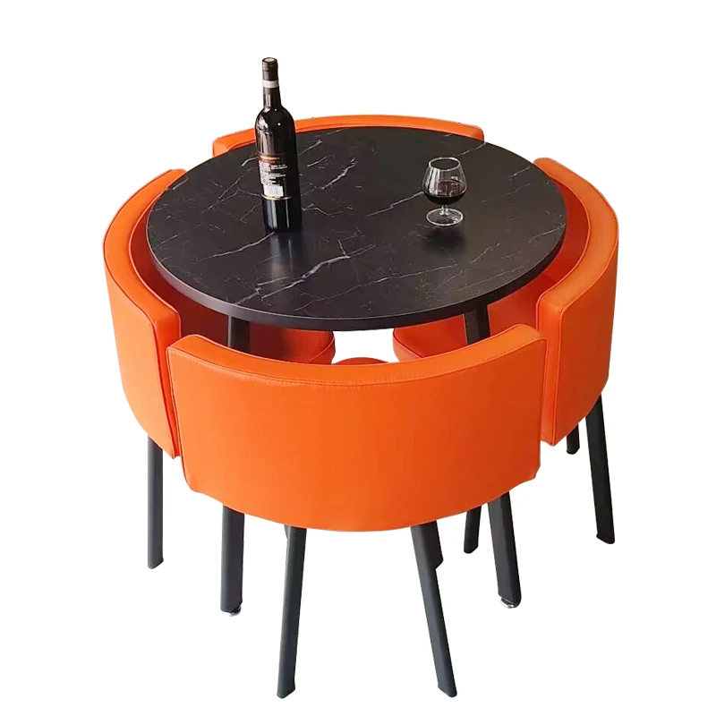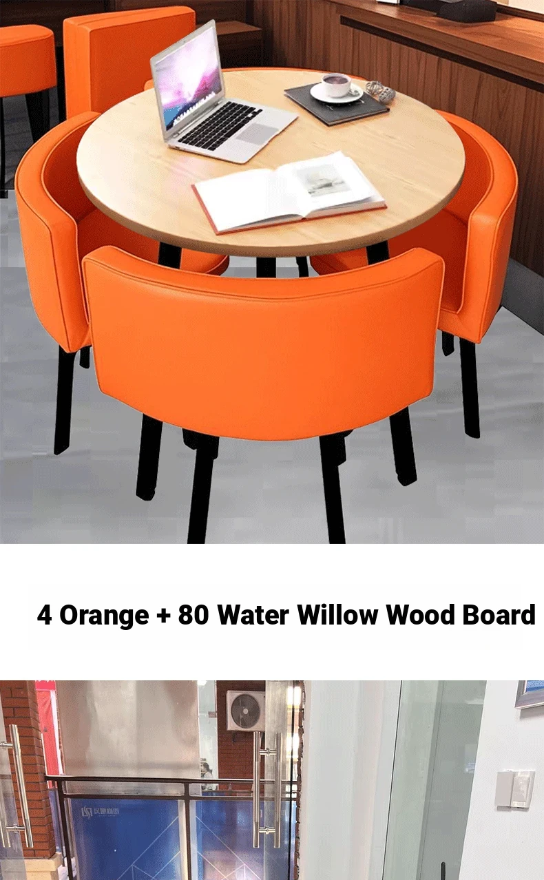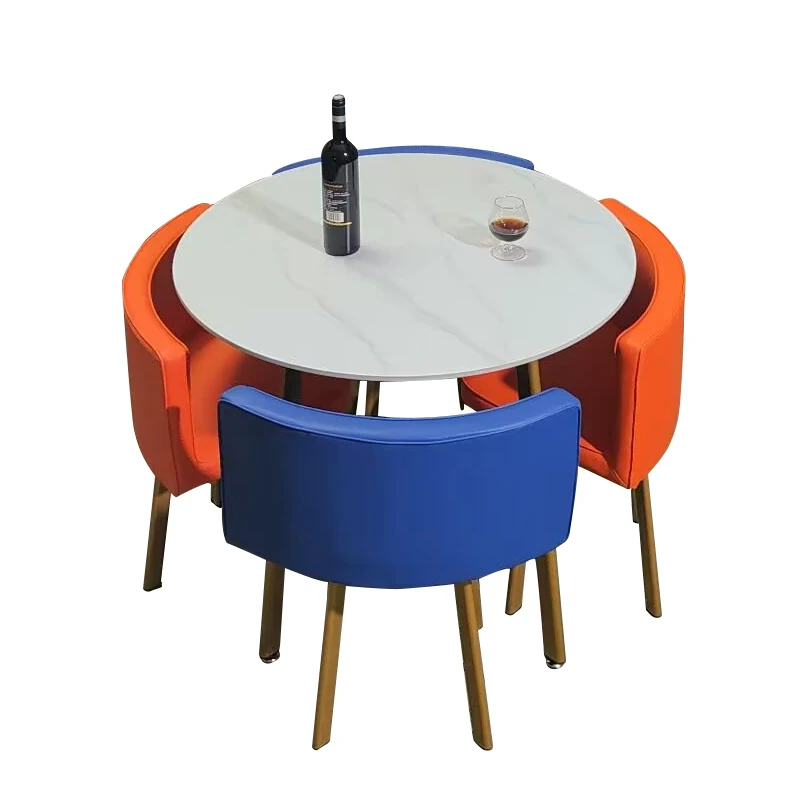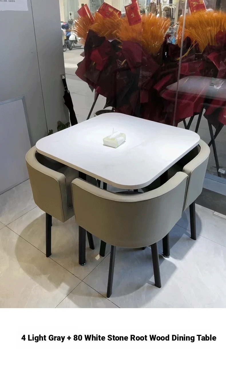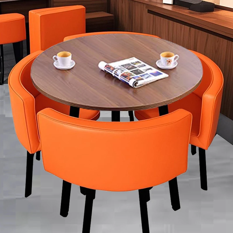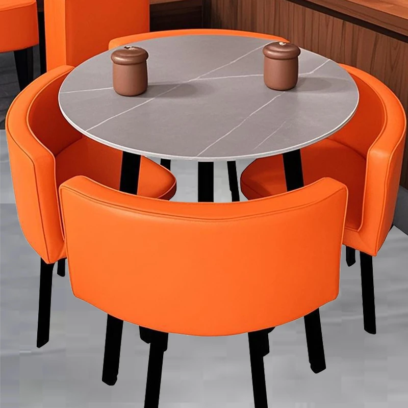 New 2023 Gray Round Reception Table for Libraries and Restaurants - Compact and Stylish Design with White Stone Base and Wooden Top, Perfect for Small Spaces