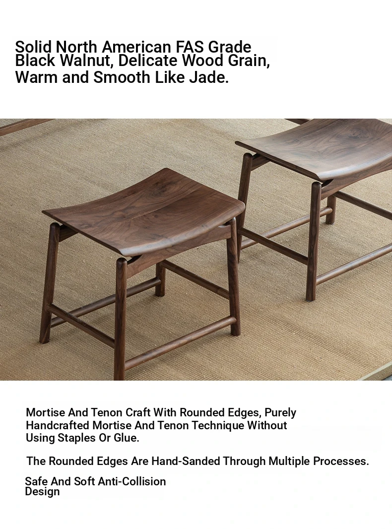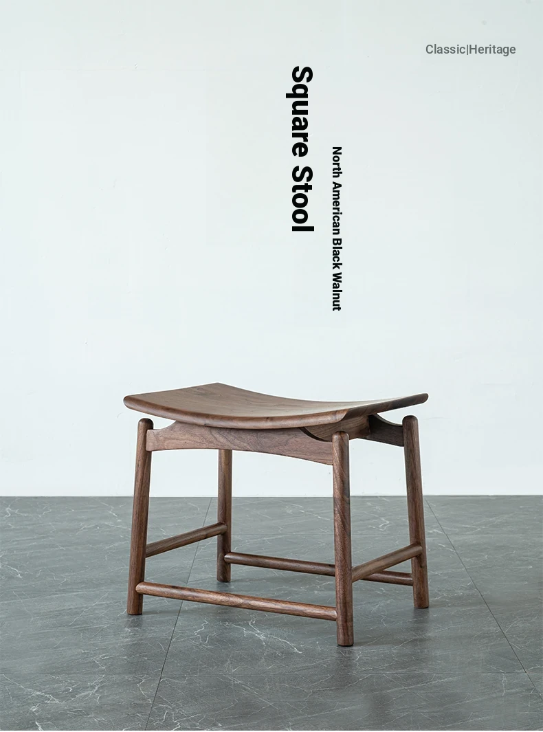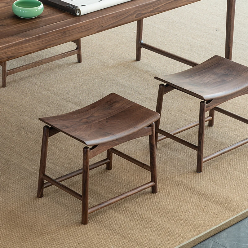 New Chinese Style Solid Wood Stool - Walnut Small Square Bench, Perfect for Tea Rooms, Zen Spaces, and Dining Areas - Elegant, Durable, and Versatile Design