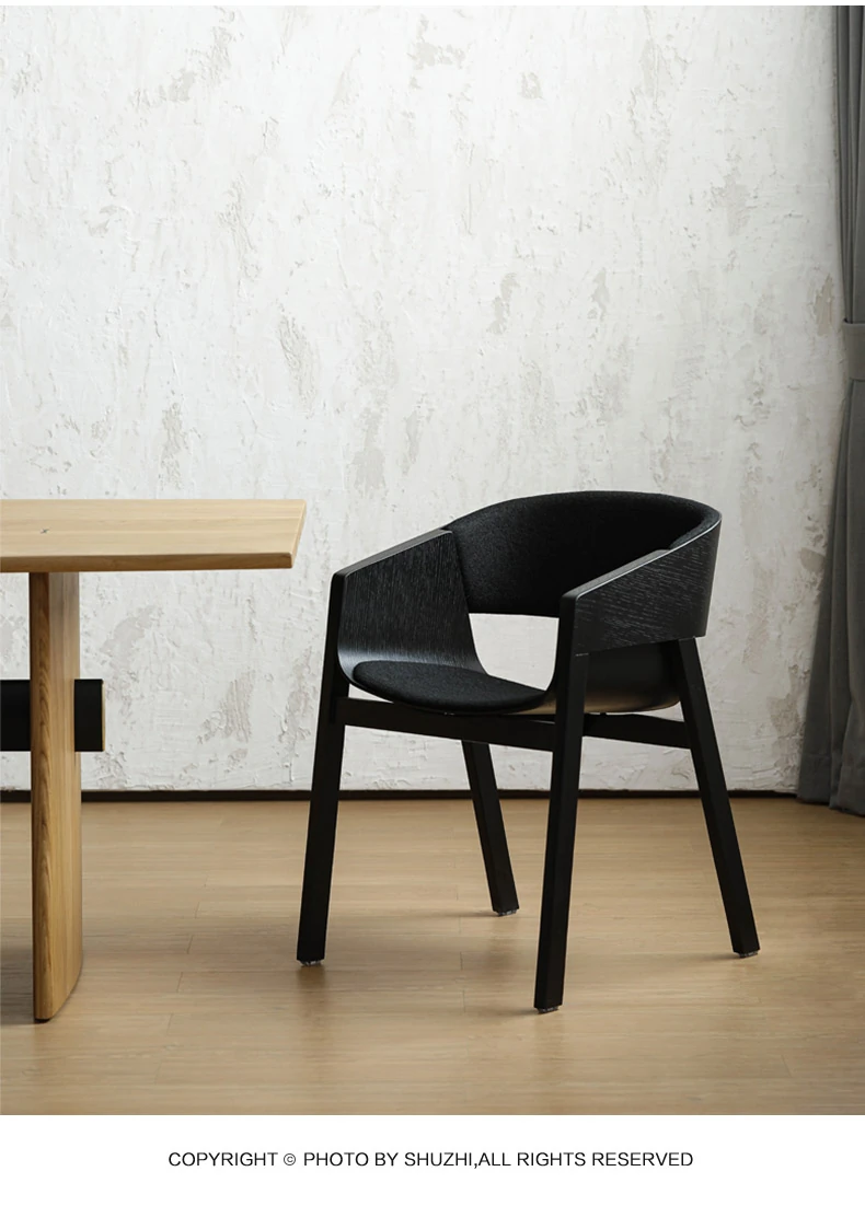 Nordic Italian Minimalist Dining Chair with Backrest - Imported Ash Wood Designer Soft Upholstered Modern Simple Armchair for Relaxation