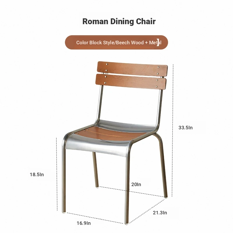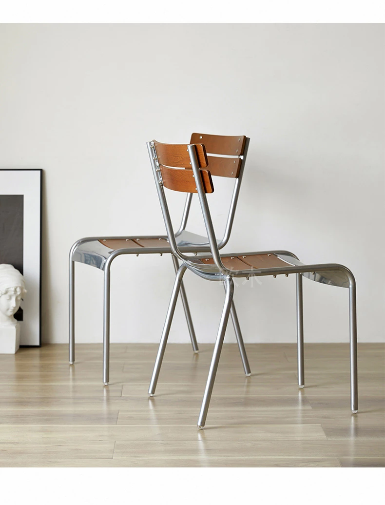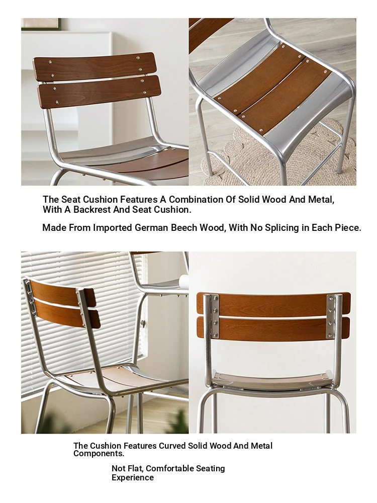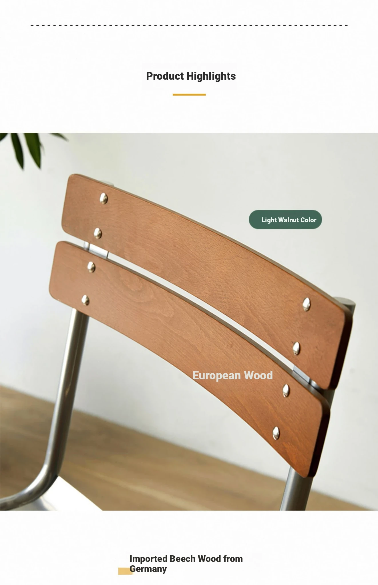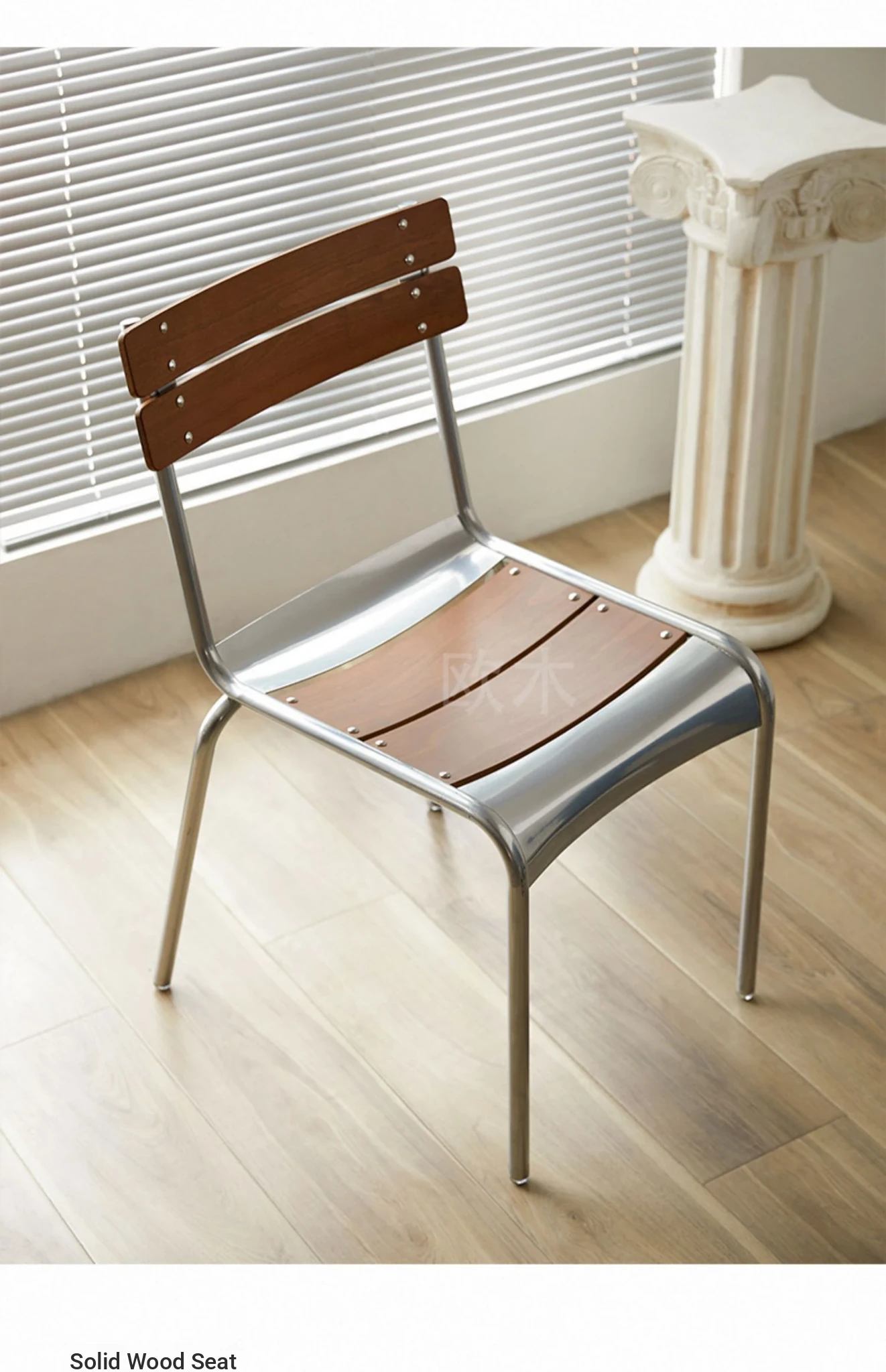Nordic Minimalist Dining Chair - Retro Japanese Design, Stainless Steel Accent, Solid Wood Backrest, Perfect for Cafés and Dining Rooms, Stylish and Comfortable!