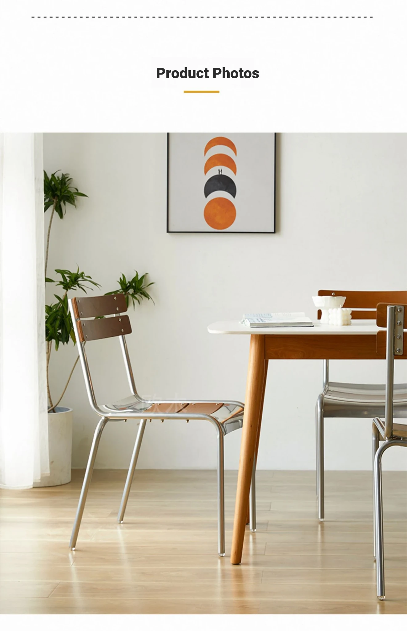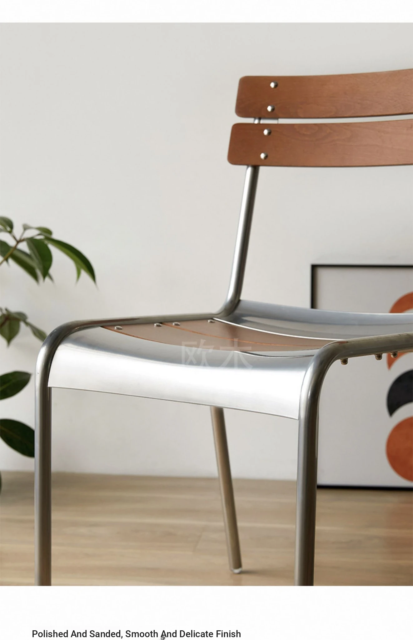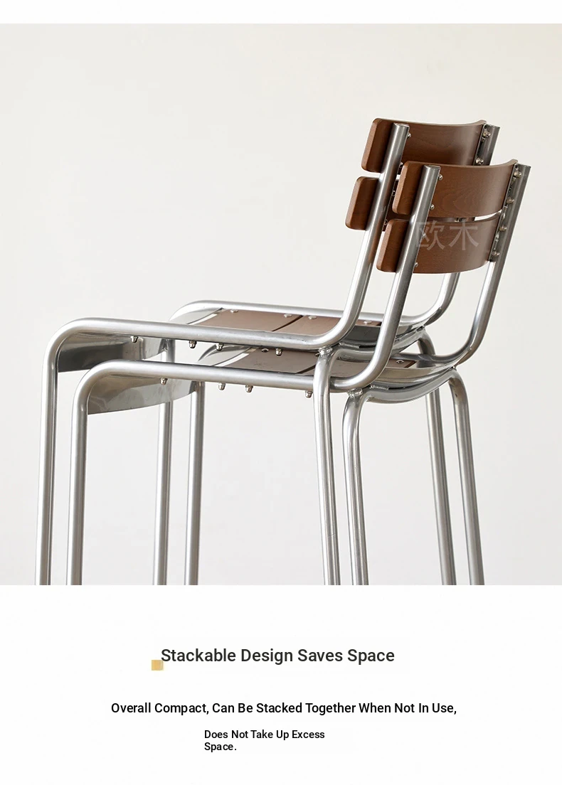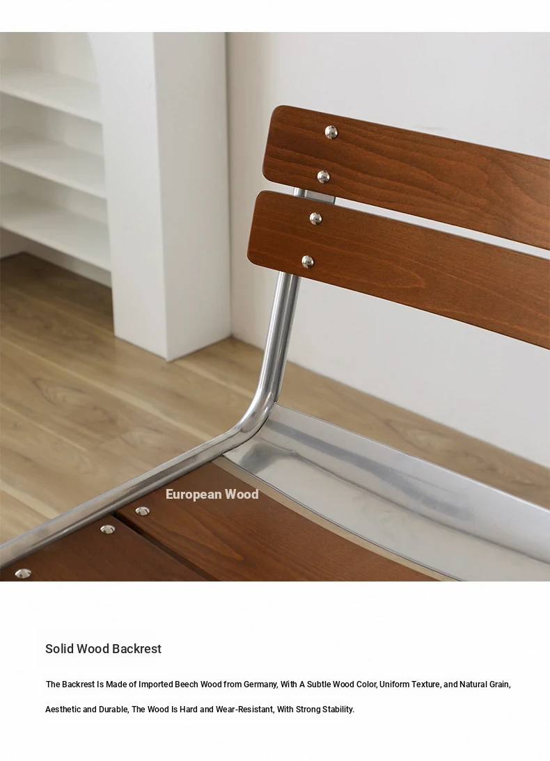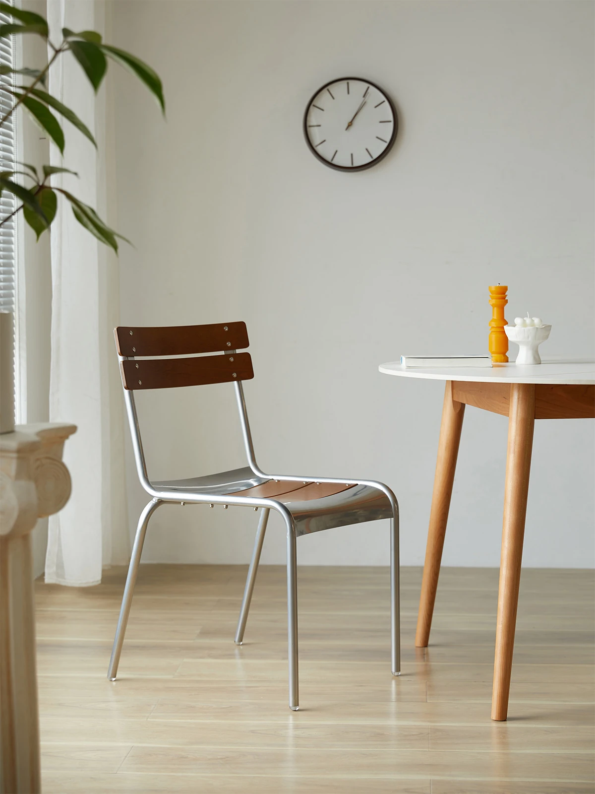 Nordic Minimalist Dining Chair - Retro Japanese Design, Stainless Steel Accent, Solid Wood Backrest, Perfect for Cafés and Dining Rooms, Stylish and Comfortable!