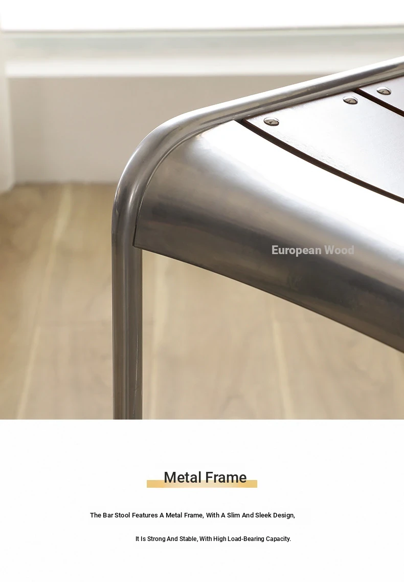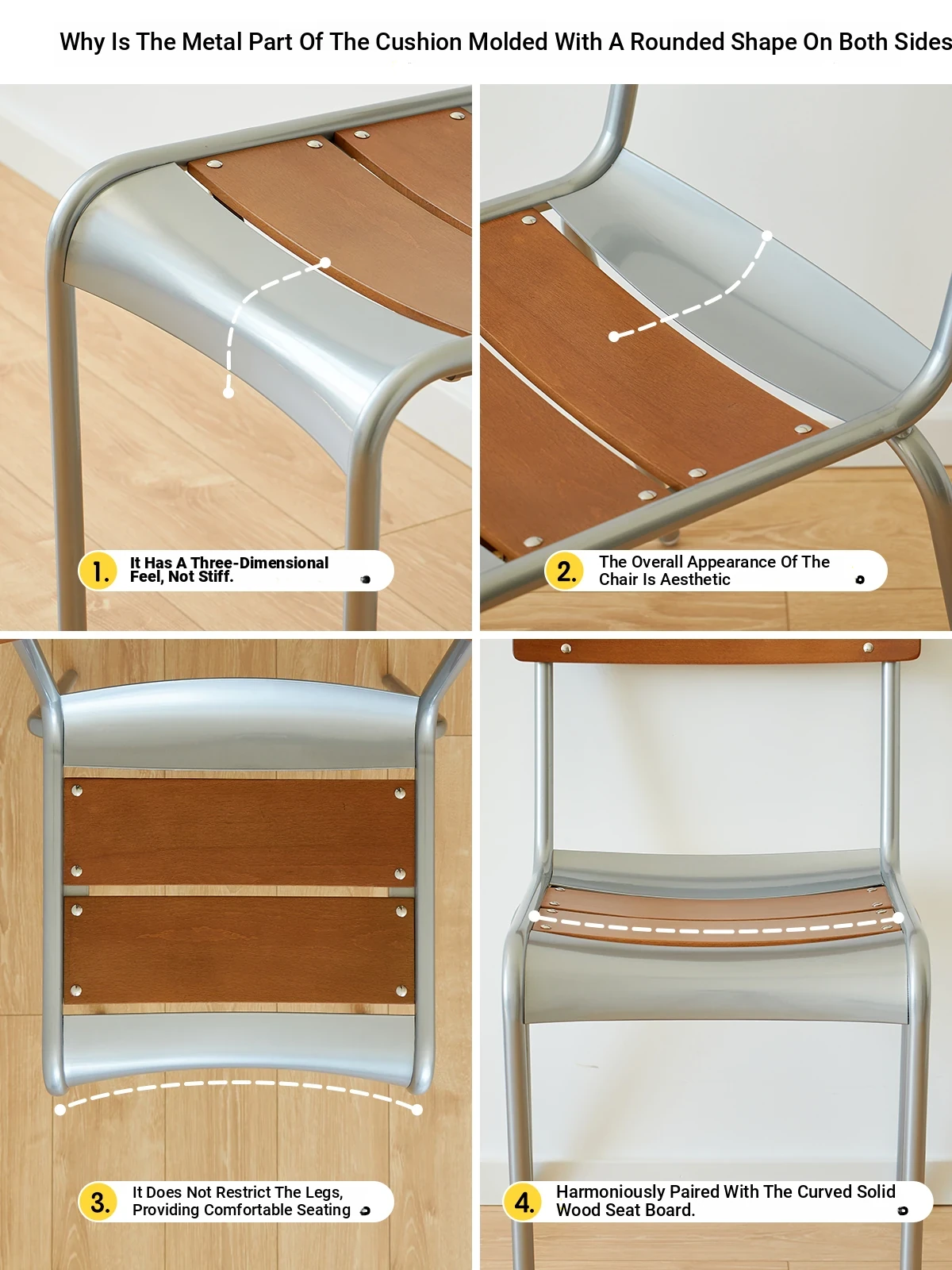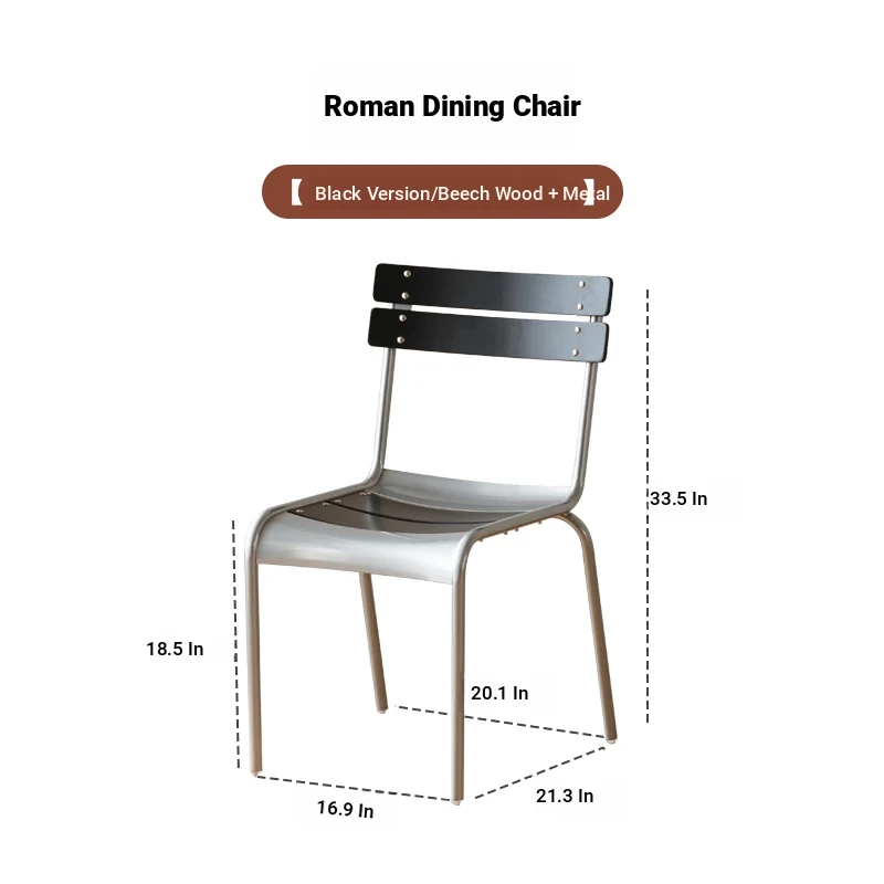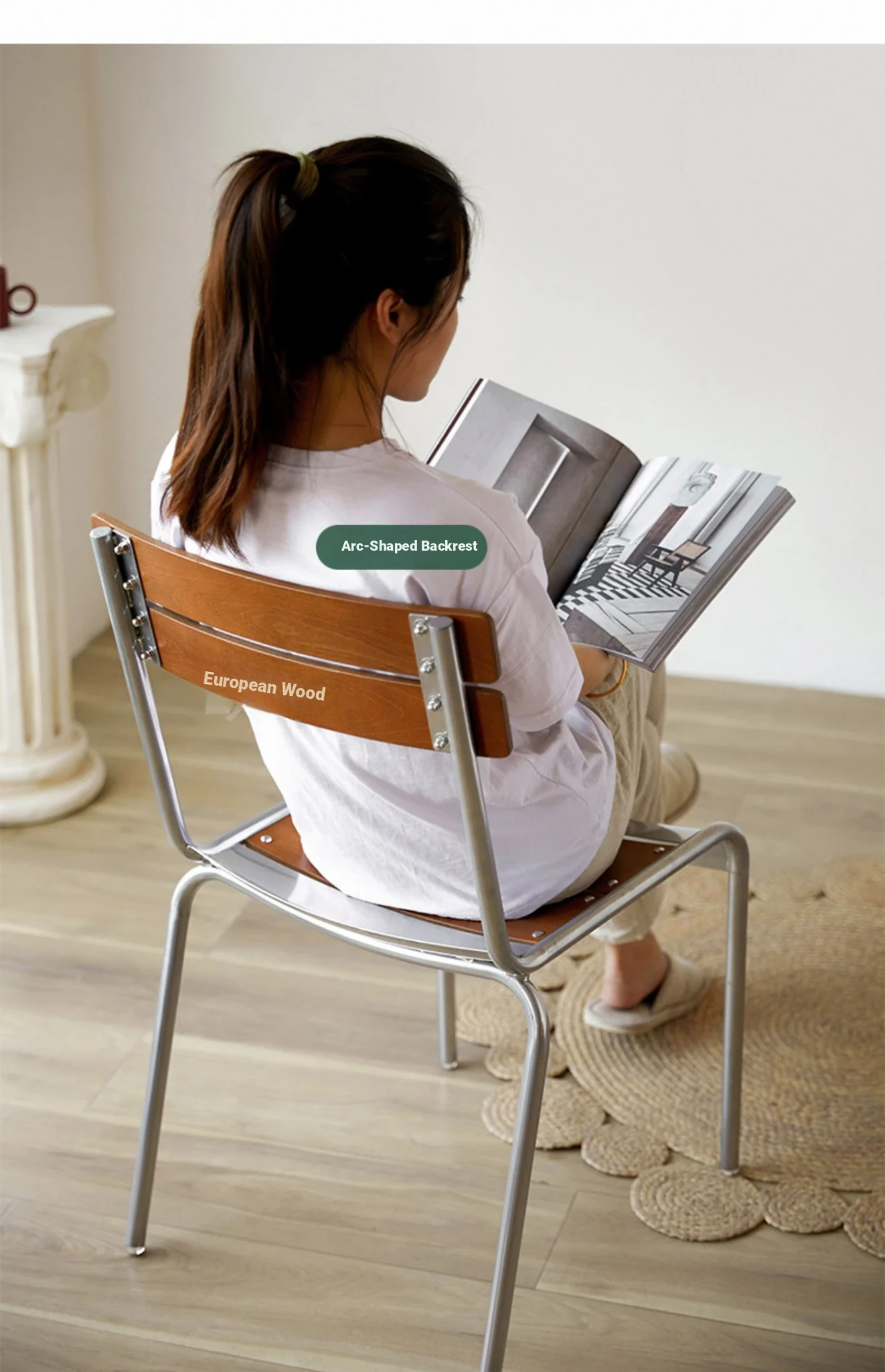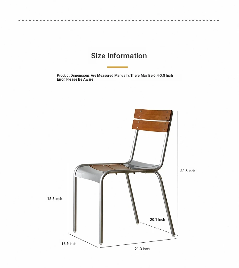 Nordic Minimalist Dining Chair - Retro Japanese Design, Stainless Steel Accent, Solid Wood Backrest, Perfect for Cafés and Dining Rooms, Stylish and Comfortable!