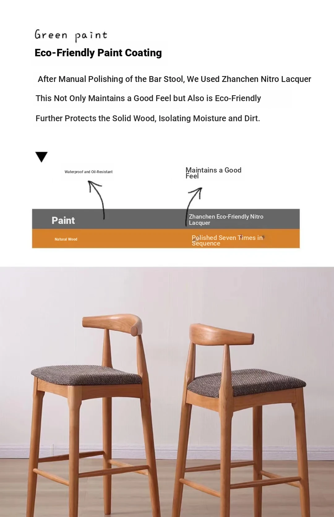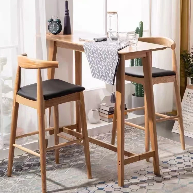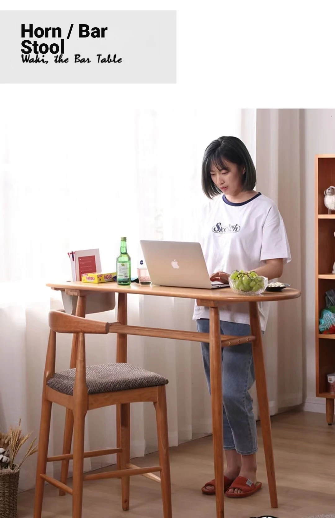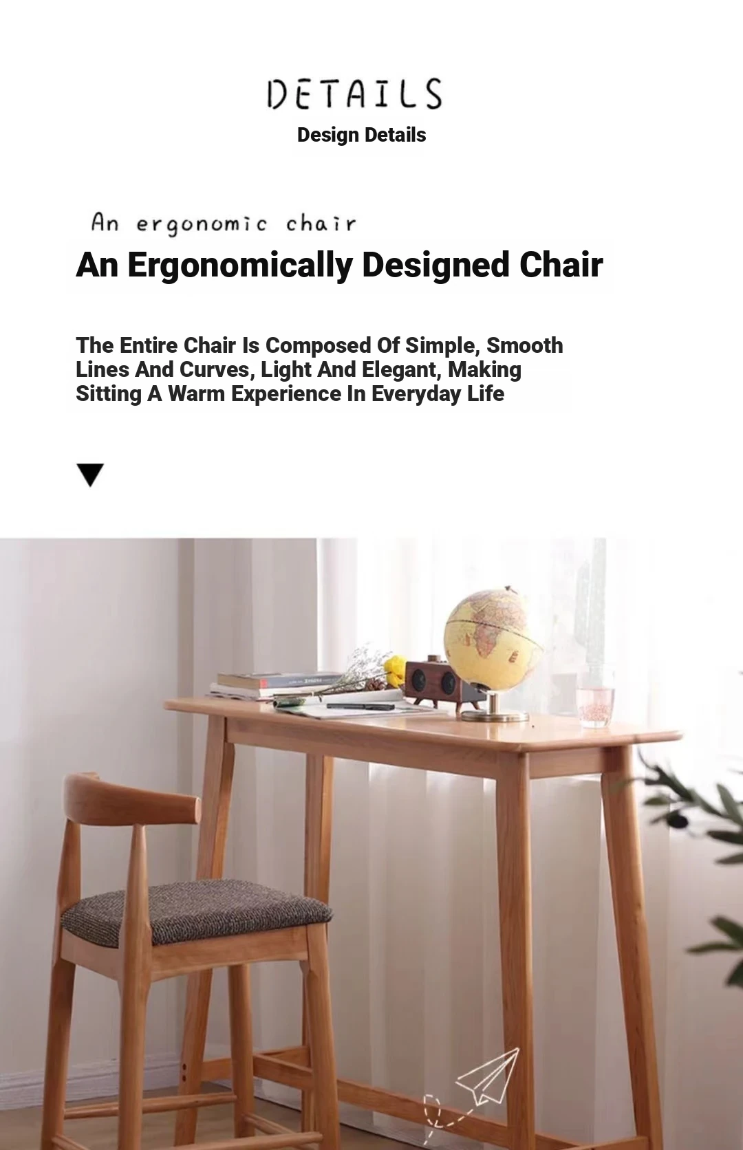 Nordic Minimalist Natural Wood Horn Chair - Stylish Bar Stool for Japanese Cuisine Restaurants, Hotels, Homes, and Cafés - Perfect High Stool for Dining and Bars