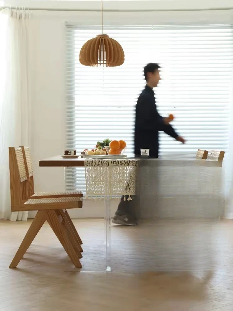 Nordic Minimalist Solid Wood Dining Table and Chairs Set - Iron Frame Office Chair with Backrest, Relaxing Lounge Chair for Small Living Spaces