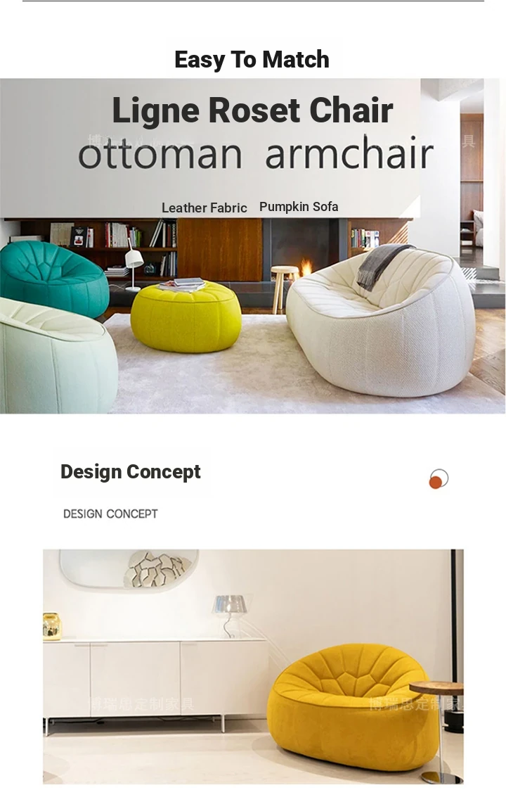 Nordic Modern Design Pumpkin-Shaped Lazy Sofa – Stylish Single, Double, and Triple Seat Lounge Chair with Footrest – Perfect for Cozy Living Spaces and Relaxation