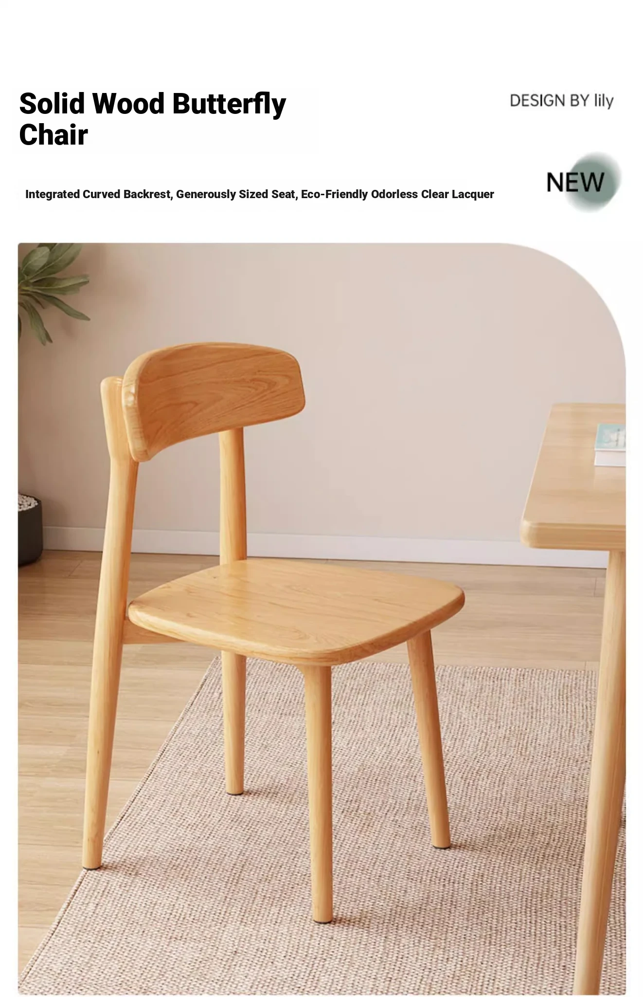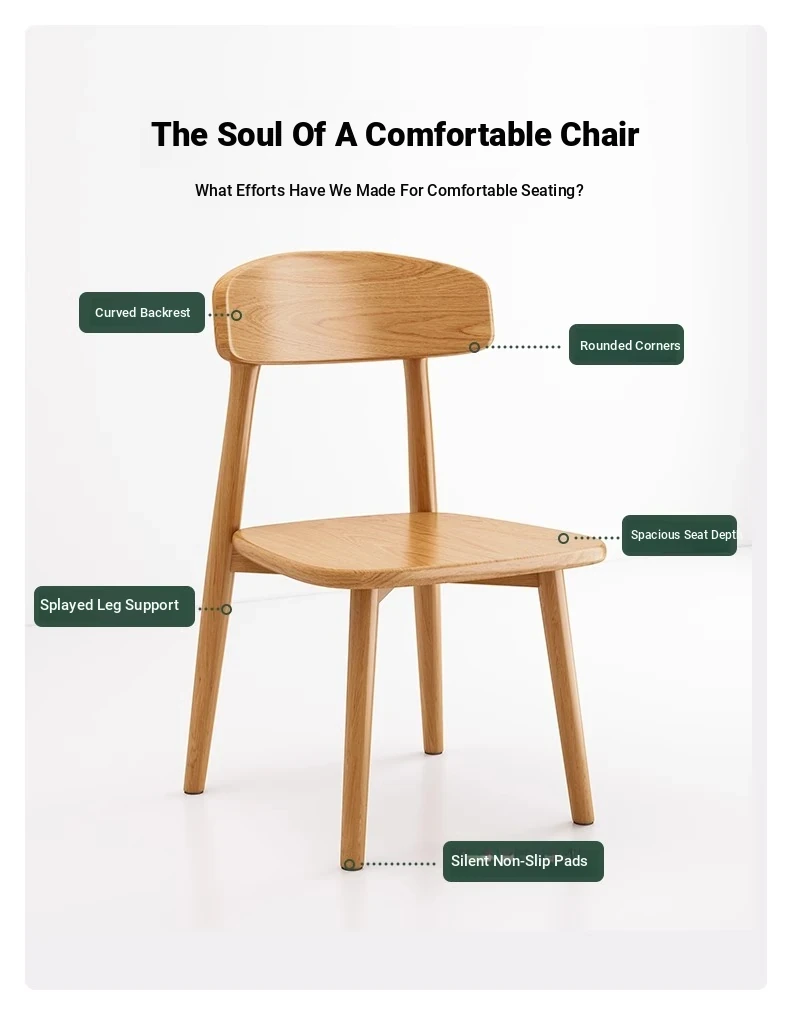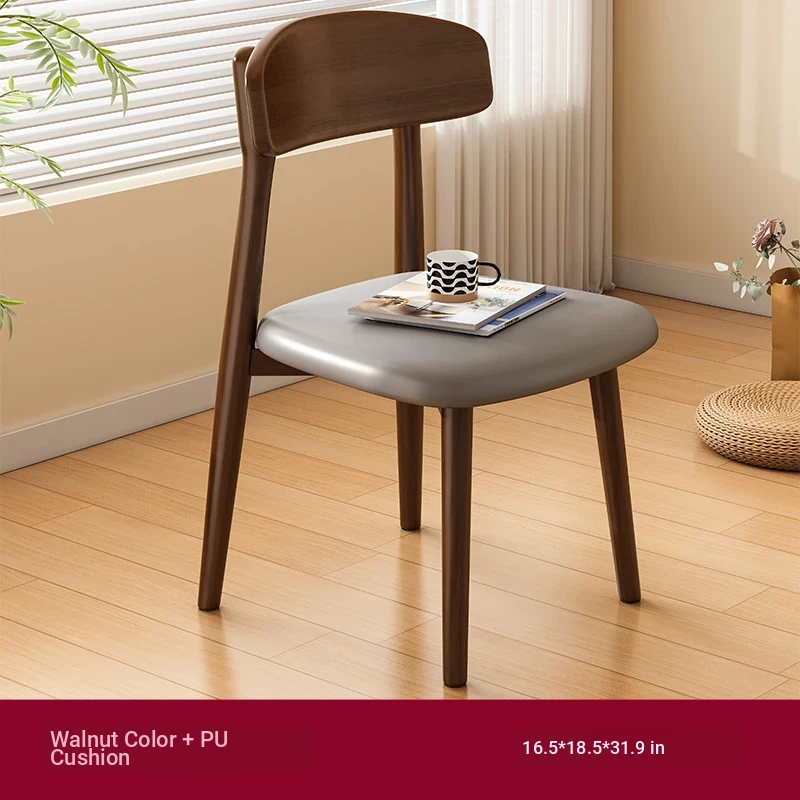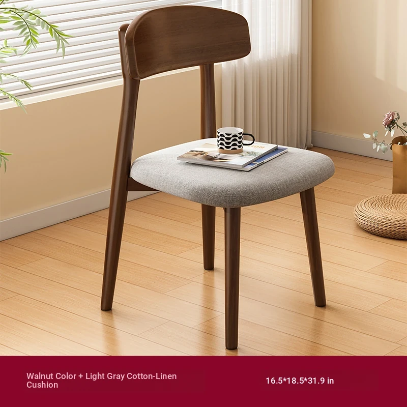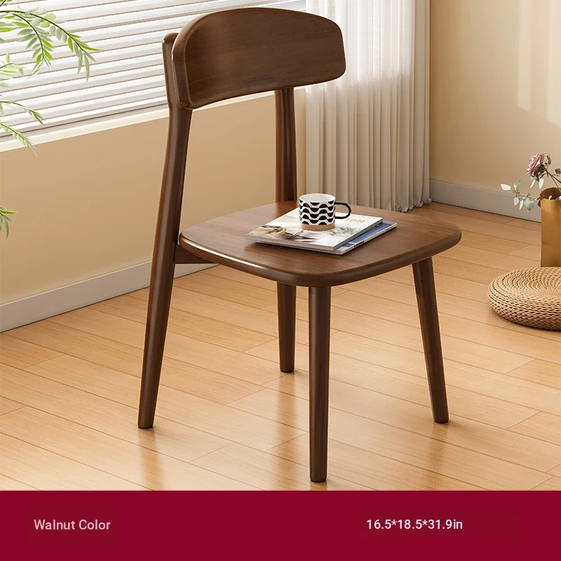Nordic Solid Wood Chair for Home Office - Comfortable Backrest Dining Chair in Creamy Walnut Finish for Modern Dining Table
