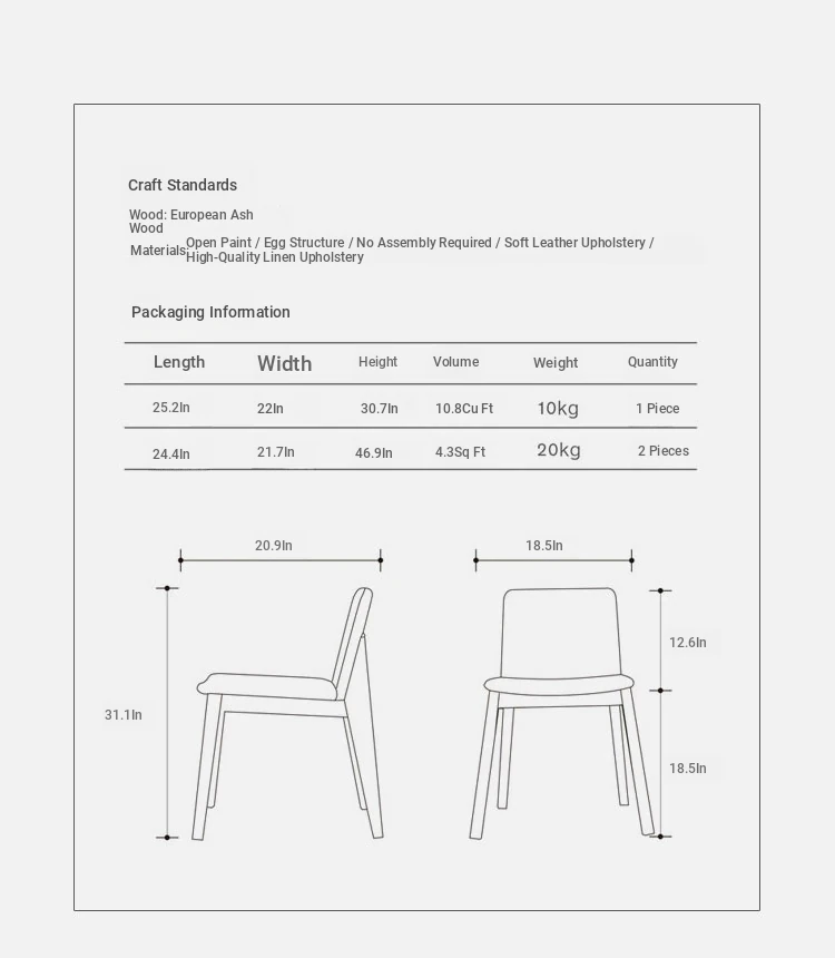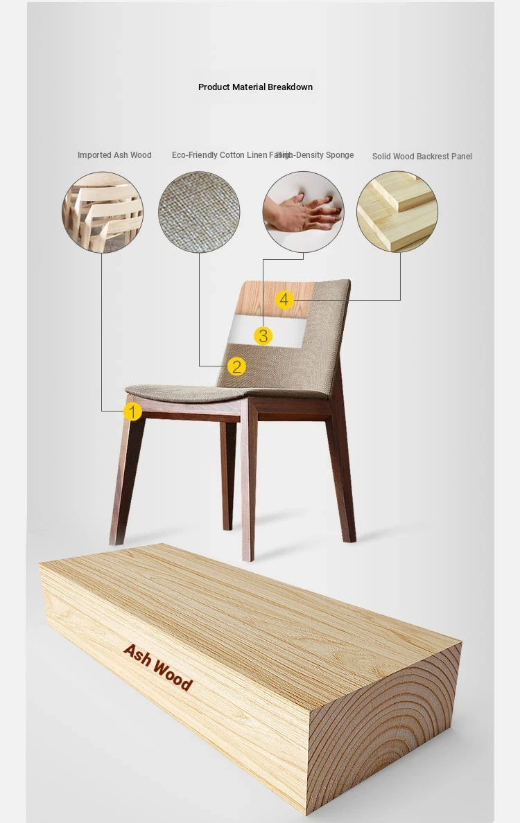 Nordic Style Ash Wood Dining Chair – Modern Minimalist Design for Home, Hotel, and Restaurant Use – Comfortable Backrest and Versatile Stool for Relaxation and Dining