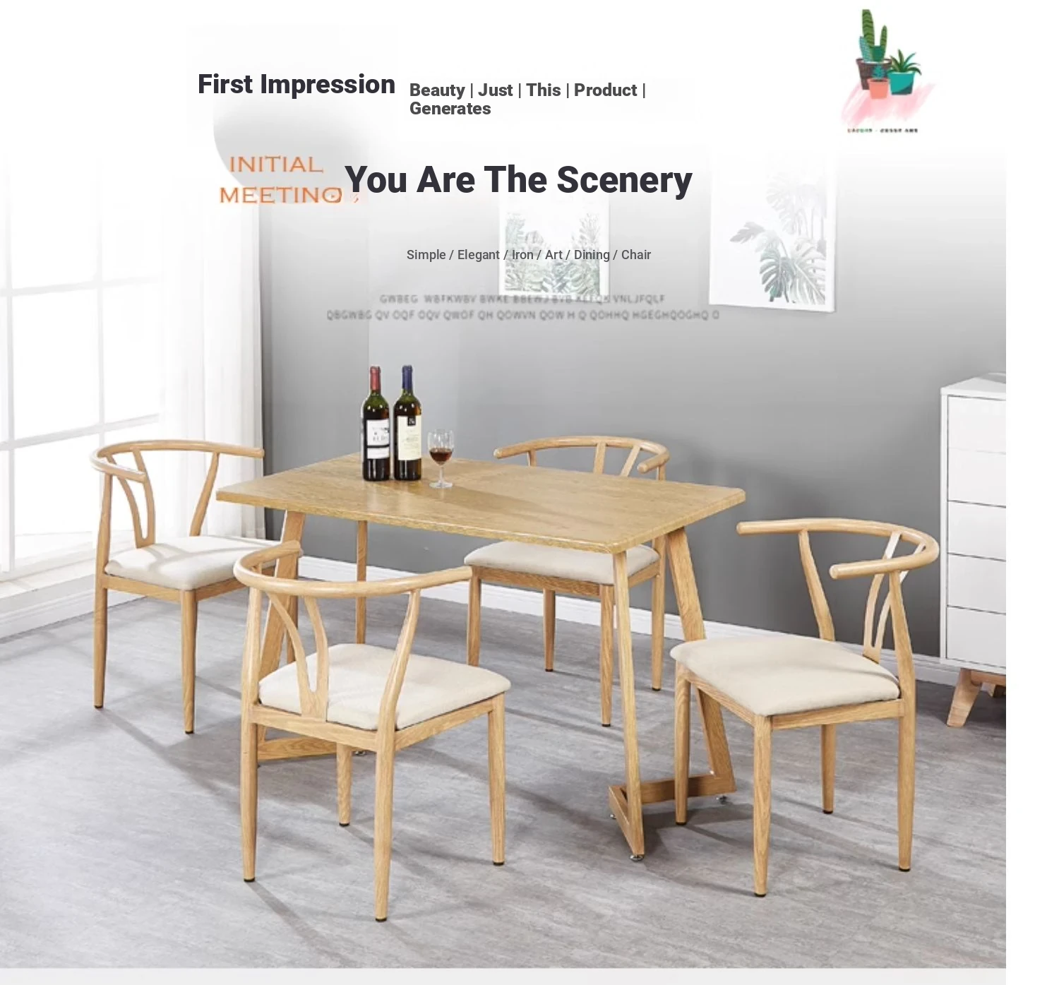 Nordic Style Chinese Dining Table and Chairs - Faux Wood Iron Backrest Armchair, Y-Shaped Chair for Restaurants and Tea Shops - Stylish and Comfortable Seating Solution