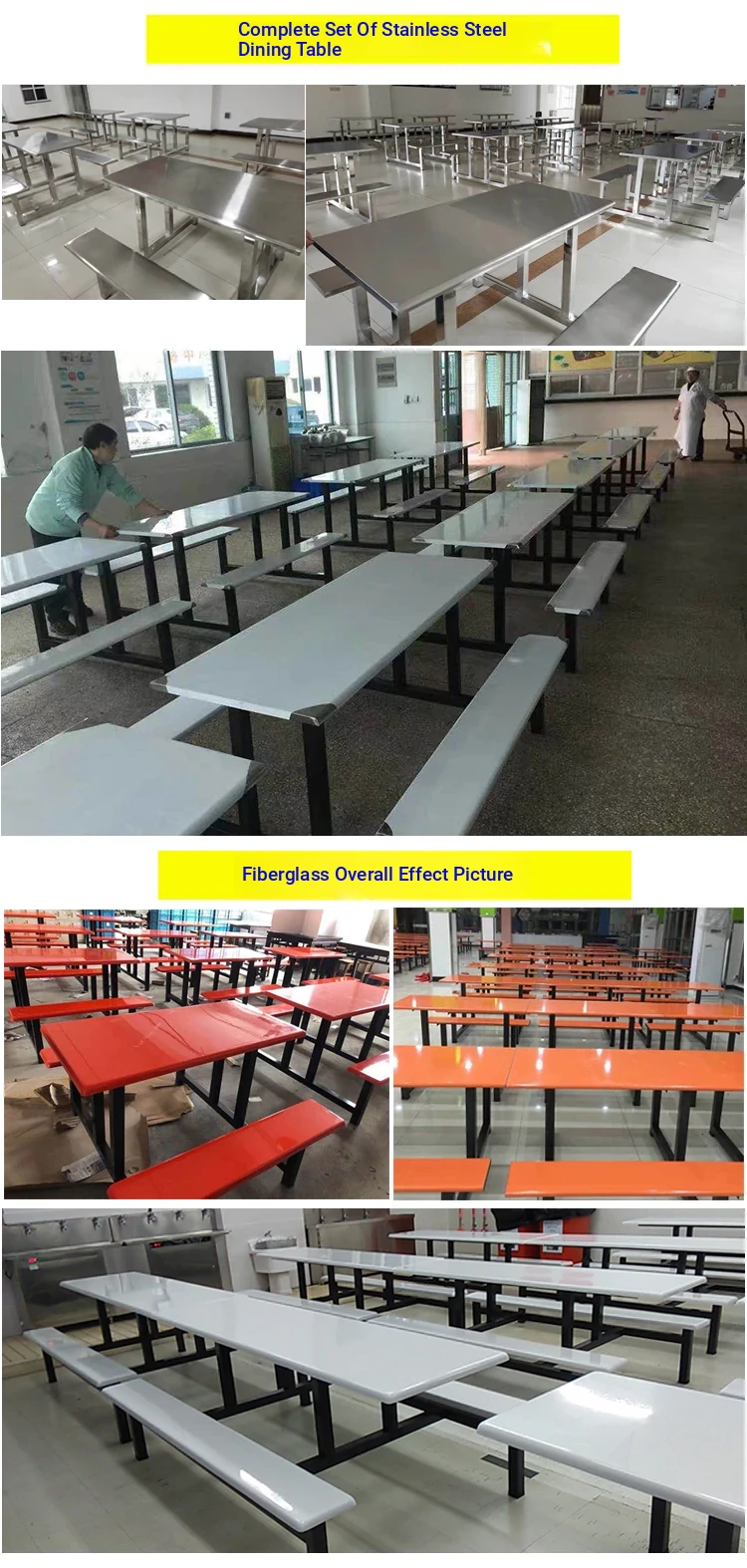 Outdoor Four-Person Dining Table Set for Student Canteens - Rectangular Fiberglass Tables and Benches for Staff Use, Perfect for Group Meals!