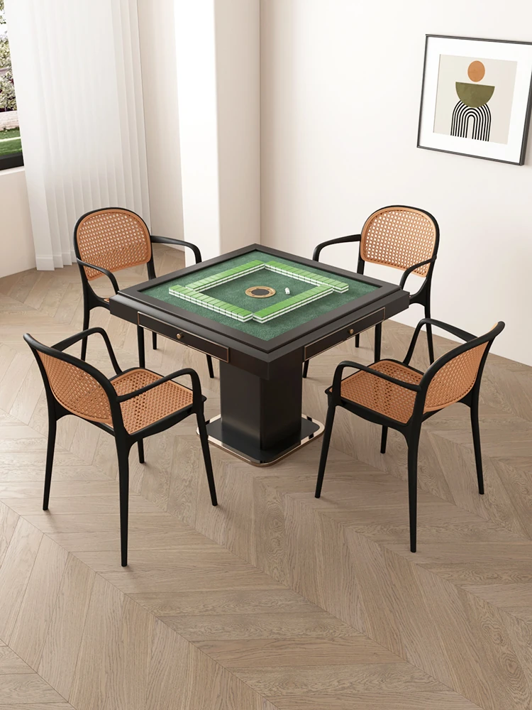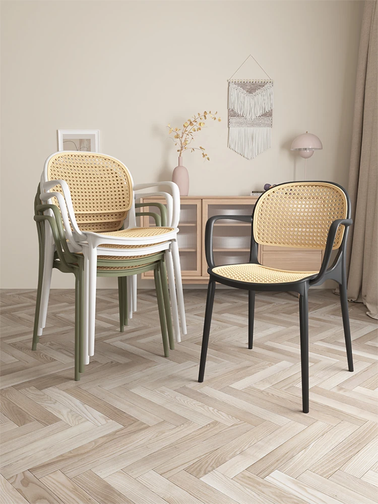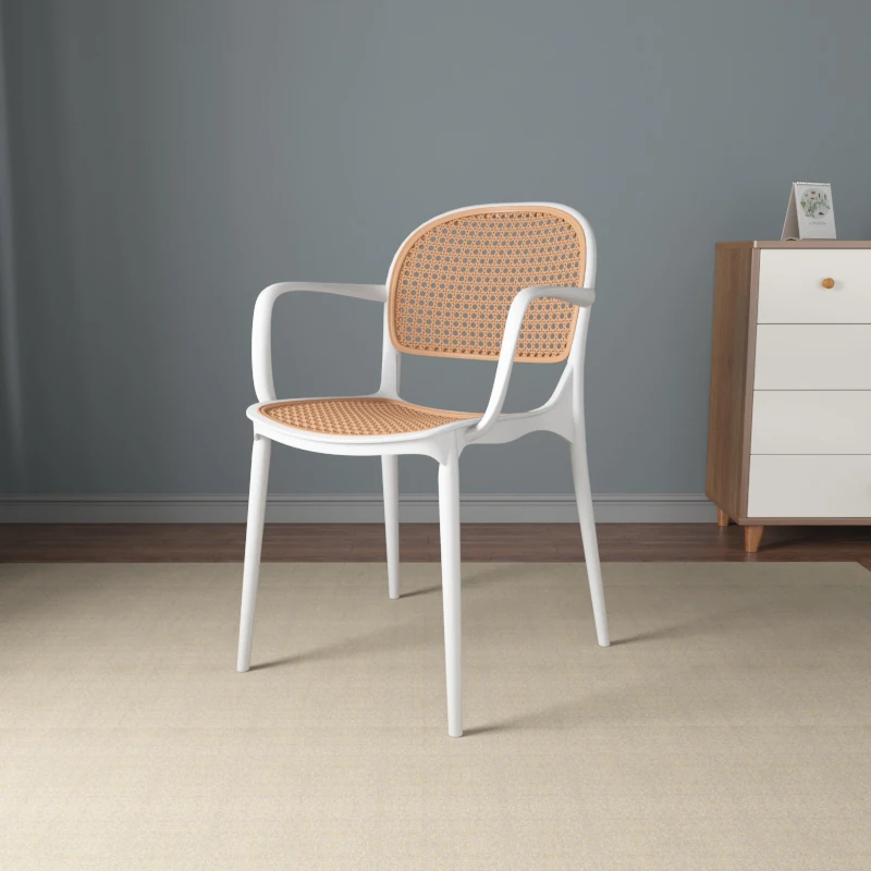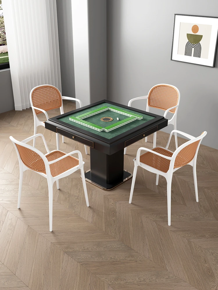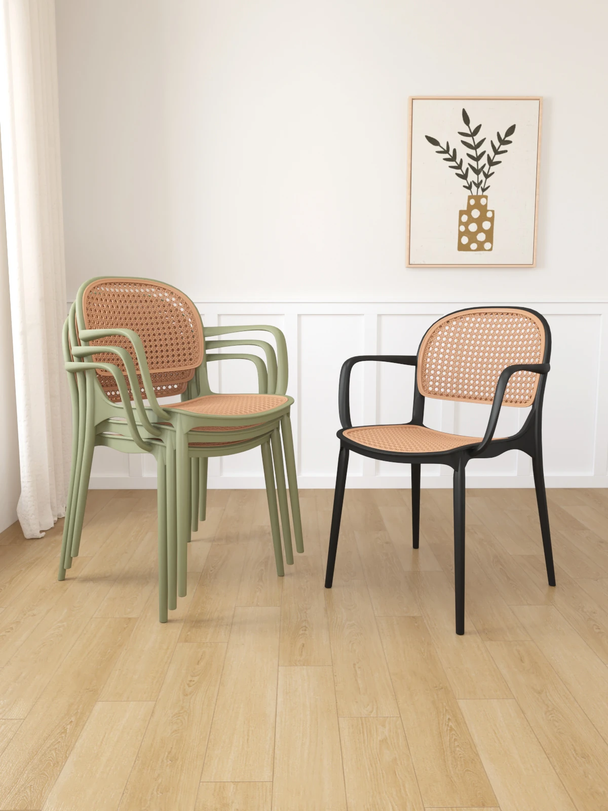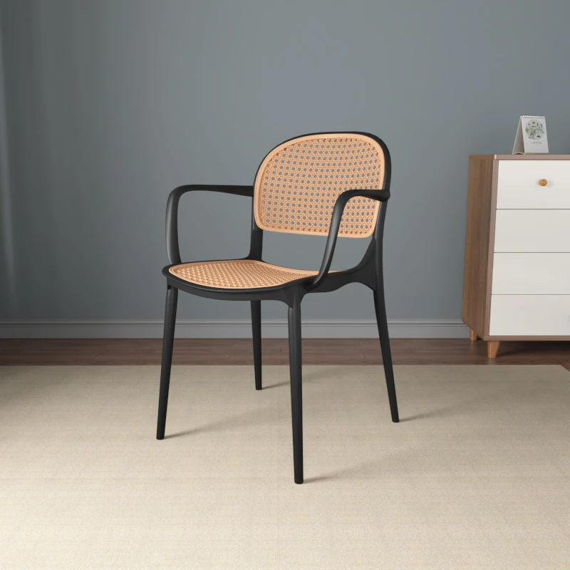 Outdoor Rattan Armchair for Mahjong Games - Durable Plastic Dining Chair for Patios and Gardens, Extra Tall and Wide Design Perfect for Seniors