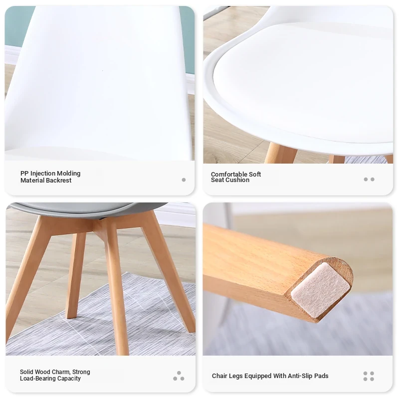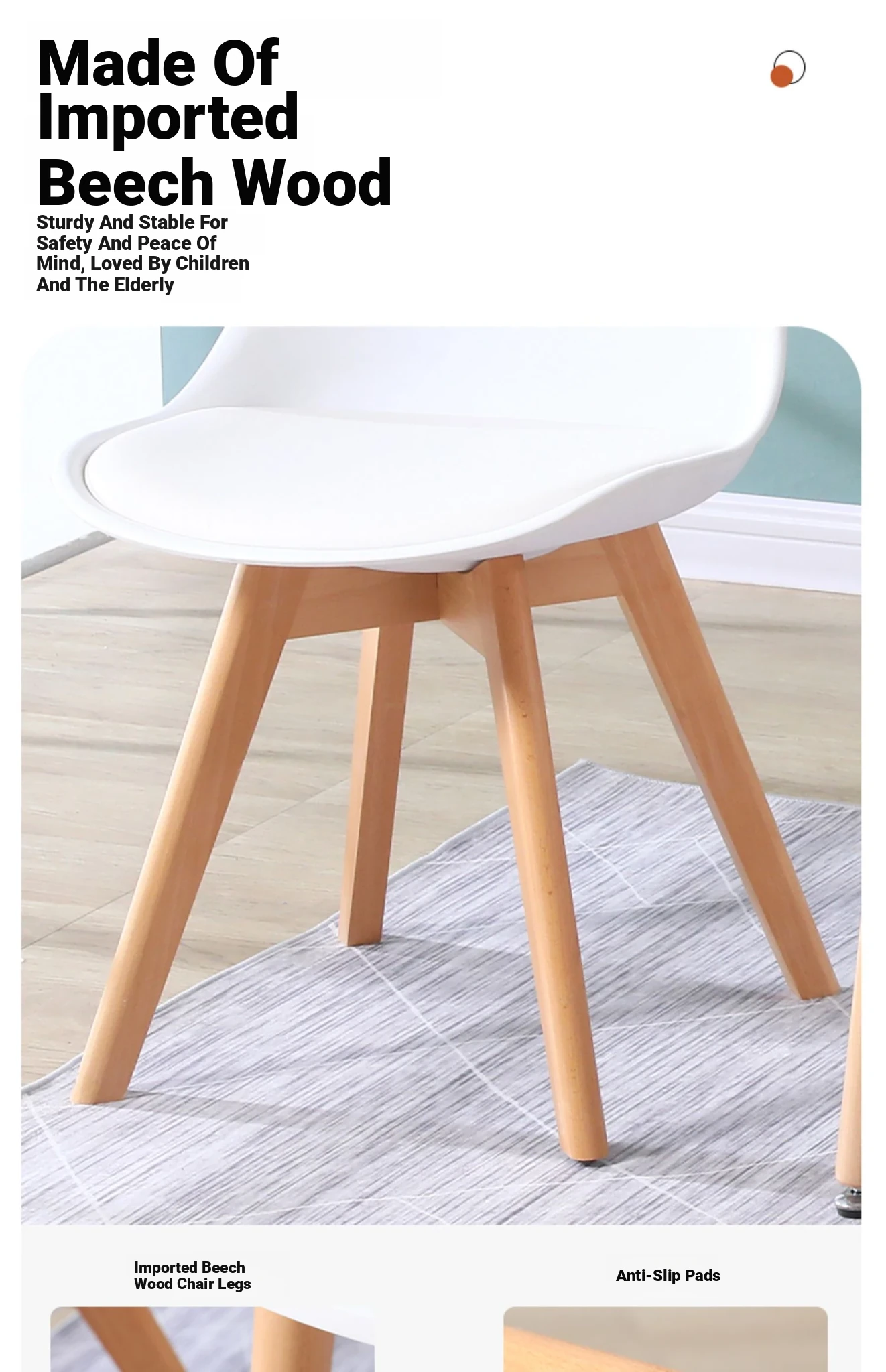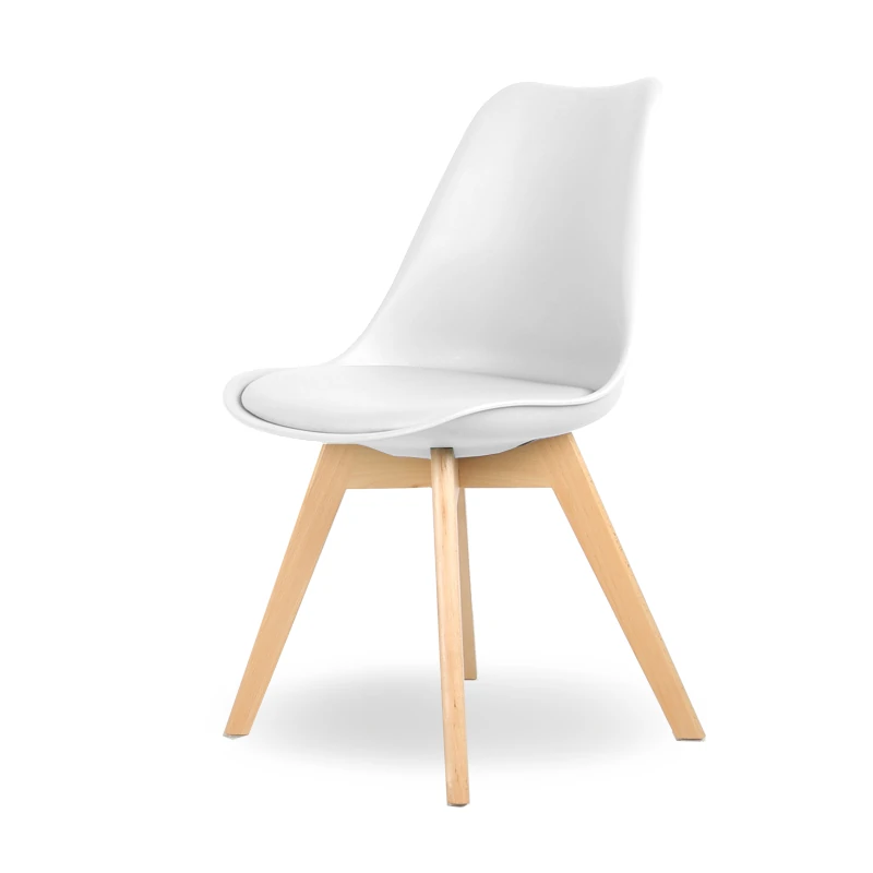 Plumay Nordic Beech Wood Dining Chair - Creative Meeting Chair & Minimalist Desk Chair with White Leather Upholstery - Perfect for Relaxation and Style