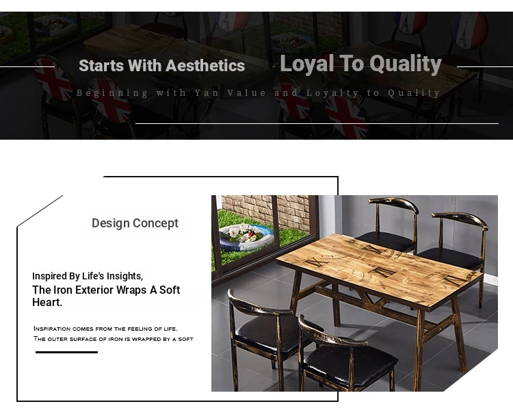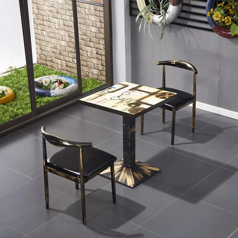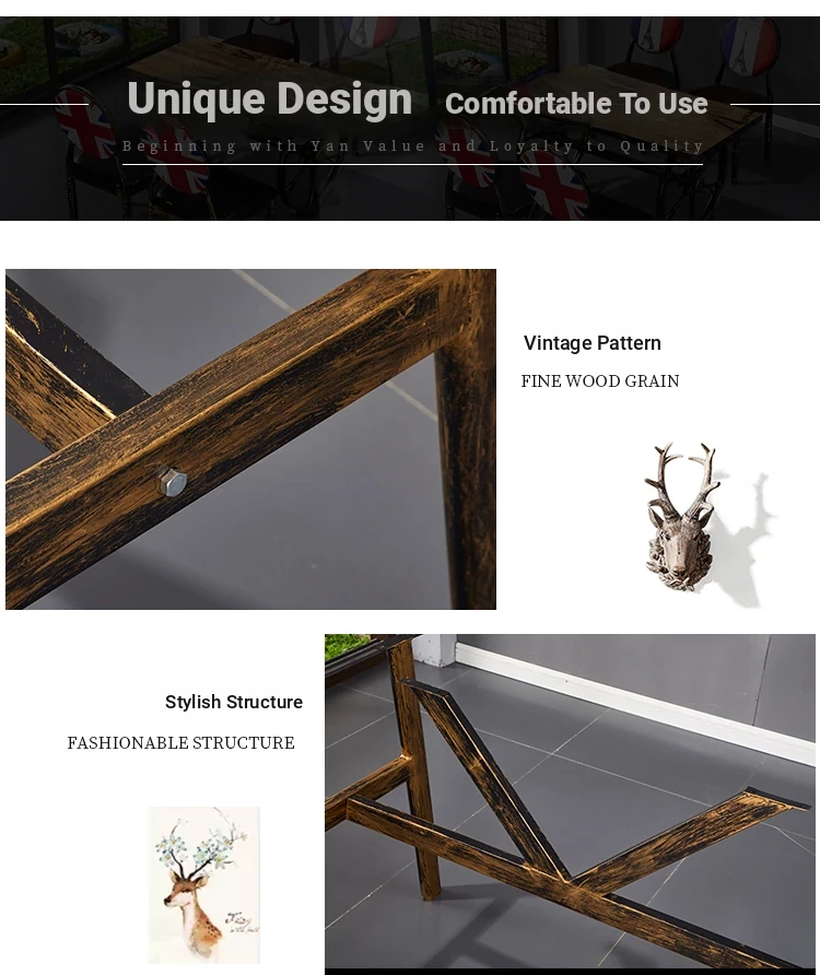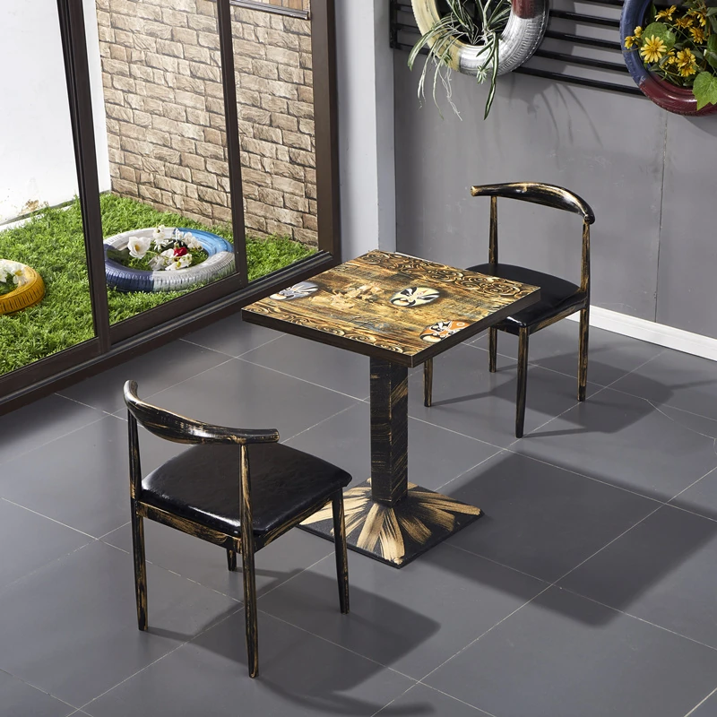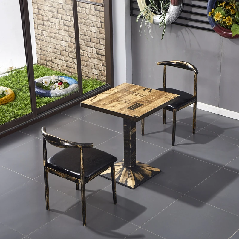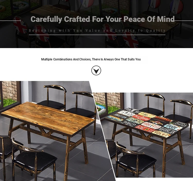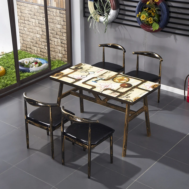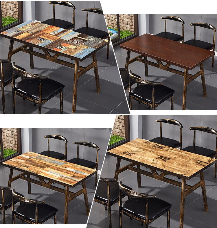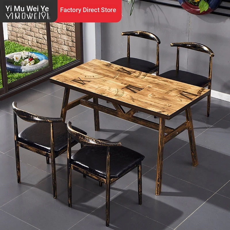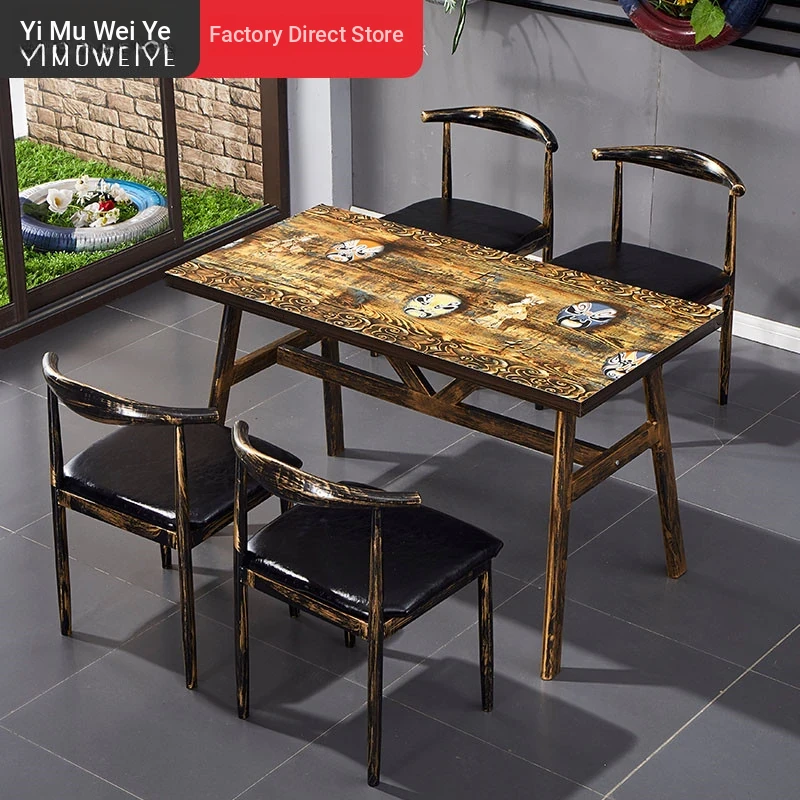Retro Rectangular Dining Table Set for Commercial BBQ Restaurants, Night Markets, Snack Bars, Hot Pot Shops, Breakfast Noodle Stalls, and Fast Food Outlets - Perfect for Creating an Inviting Atmosphere!