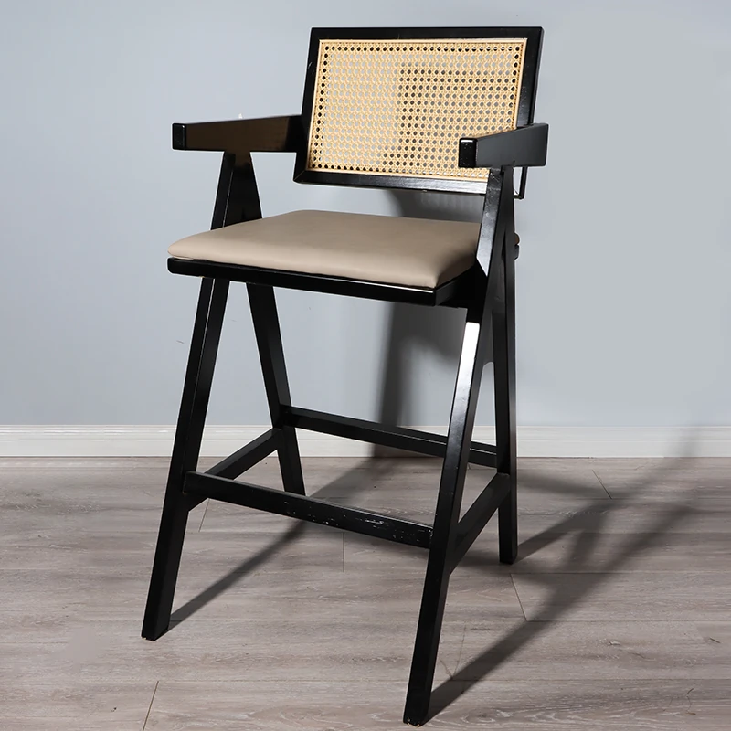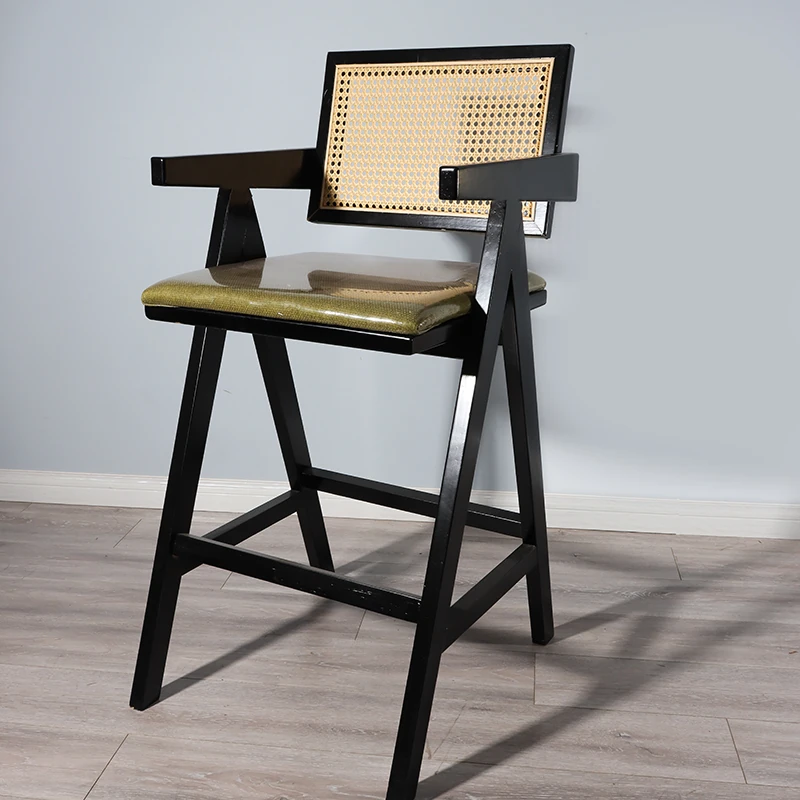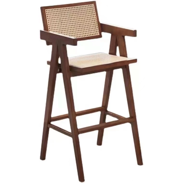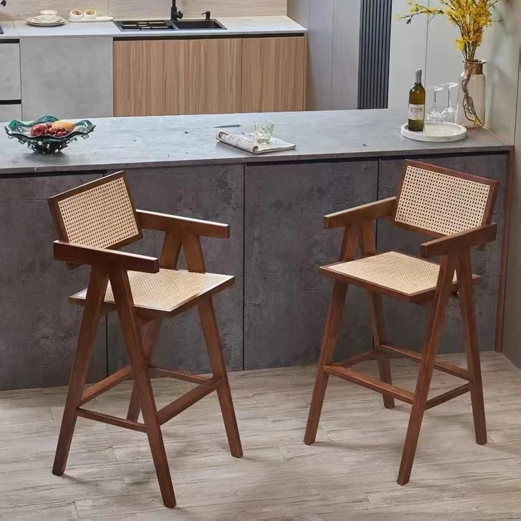 Scandinavian Minimalist Wabi-Sabi Style Solid Wood Rattan Bar Stools - Chic and Comfortable High Chairs for Home Use