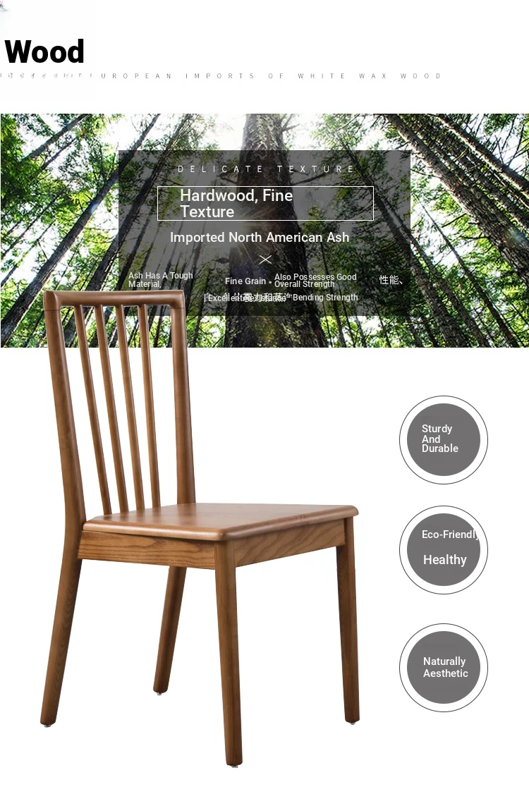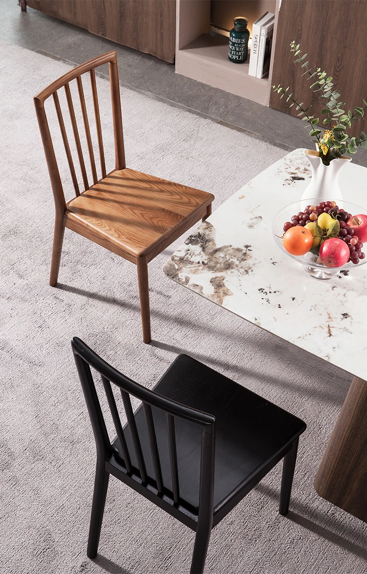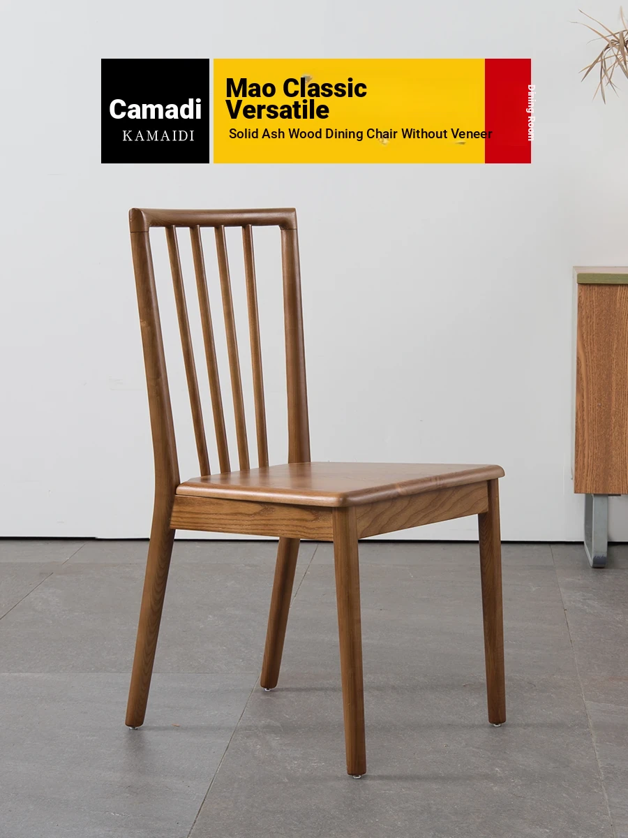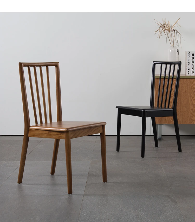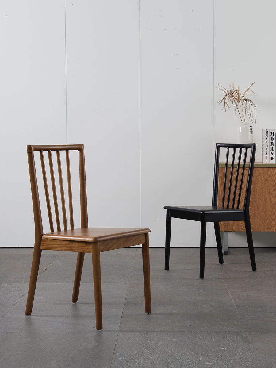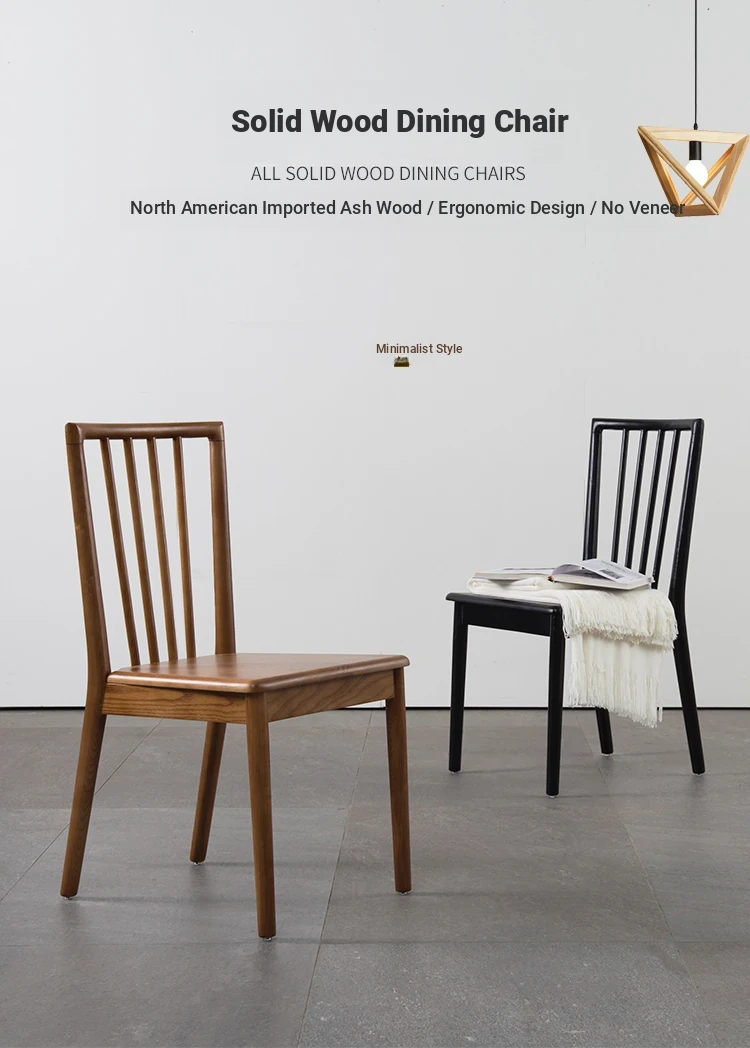 Solid Wood Dining Chair – Minimalist Design in Black Walnut Finish for Home Use, Designer Style New Chinese Ash Wood Backrest Chair