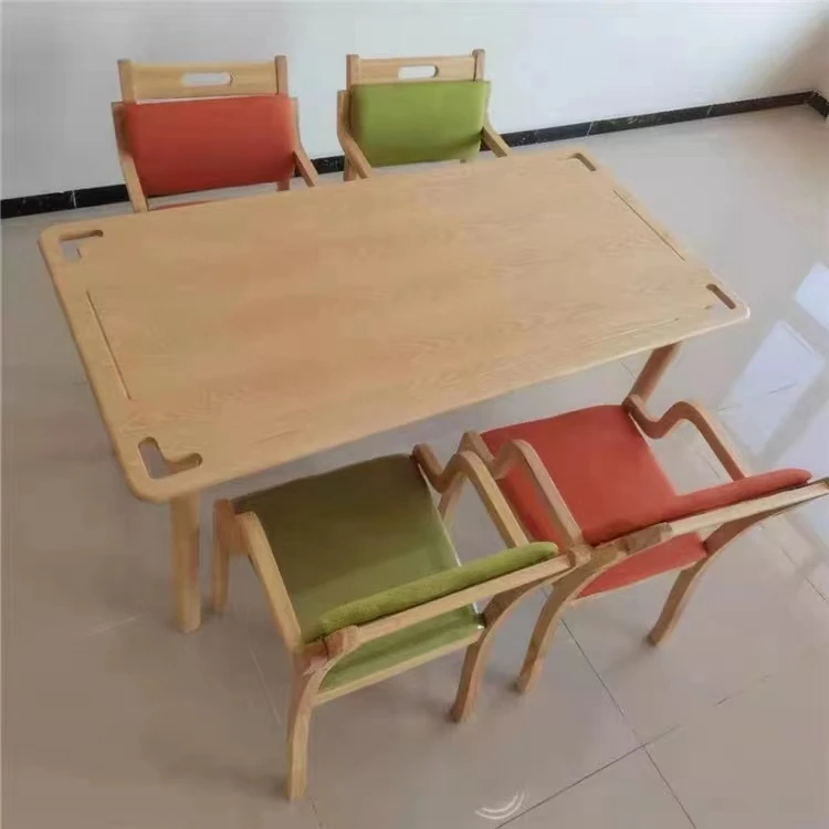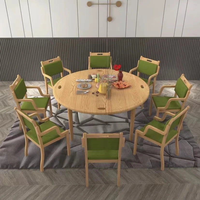 Solid Wood Dining Table and Chairs for Senior Living Facilities - Elderly-Friendly Furniture for Nursing Homes, Available for 2, 4, or 6 People
