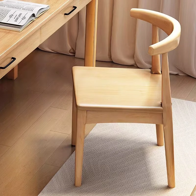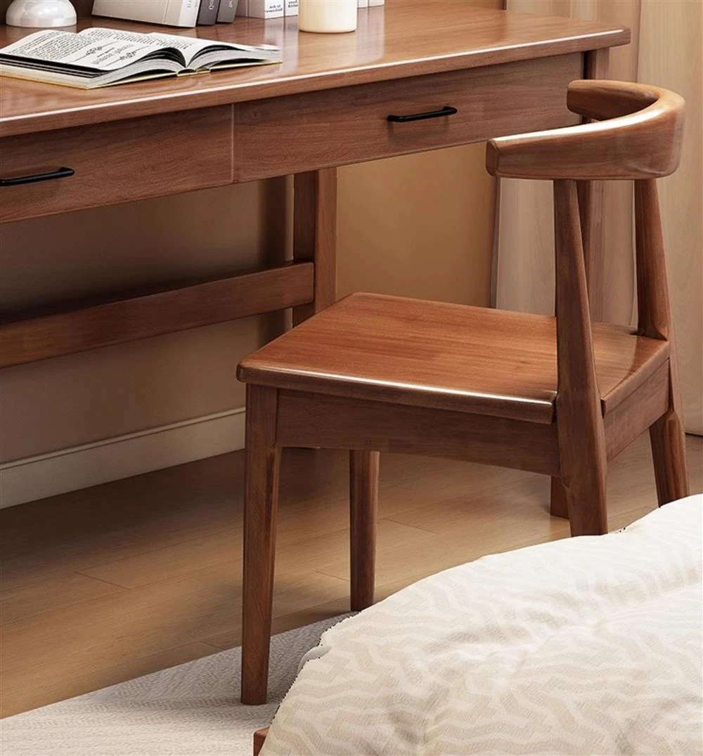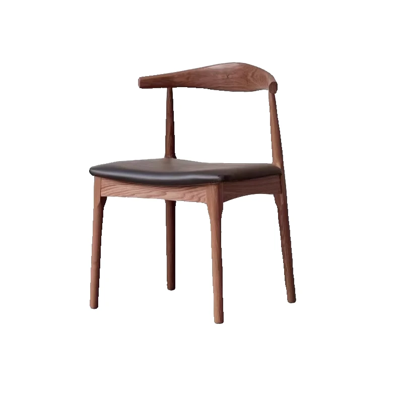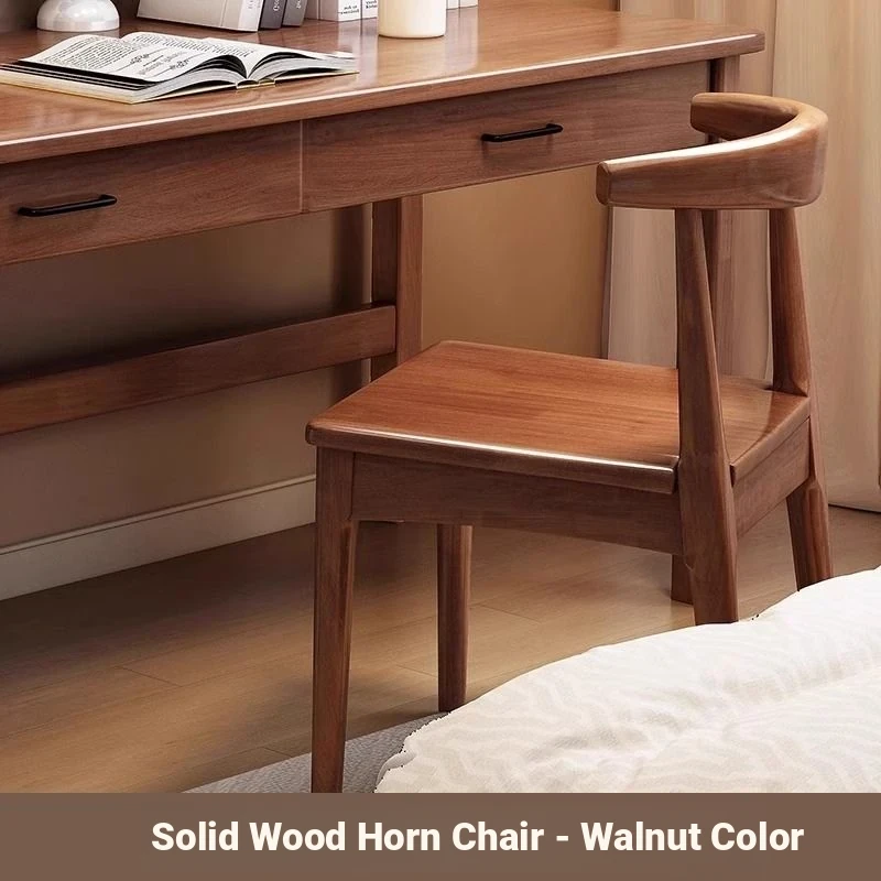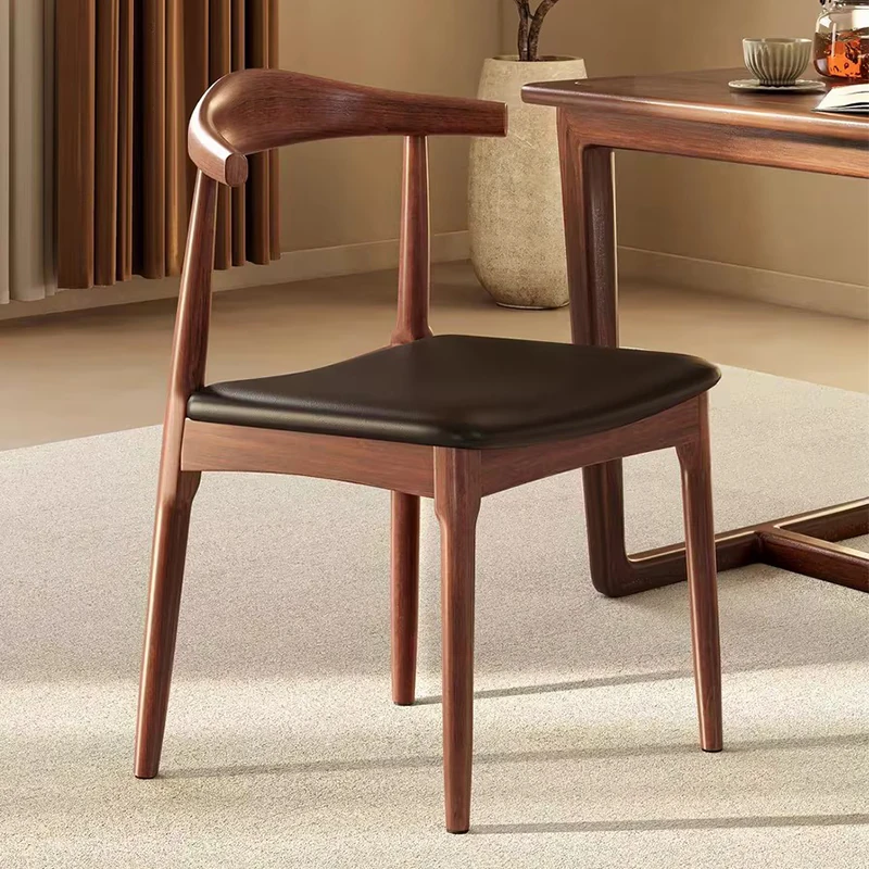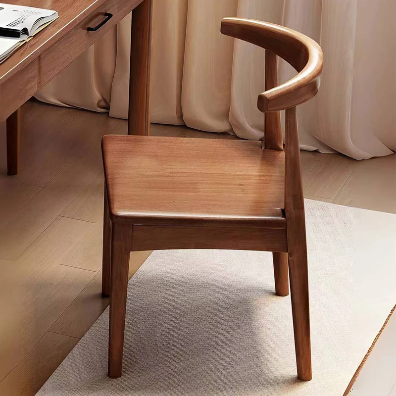 Solid Wood Horn Back Dining Chair - New Chinese Style Wooden Desk Chair for Home, Walnut Single Study Chair, Perfect for Office or Tea Table Use