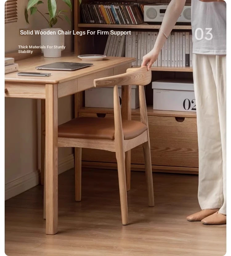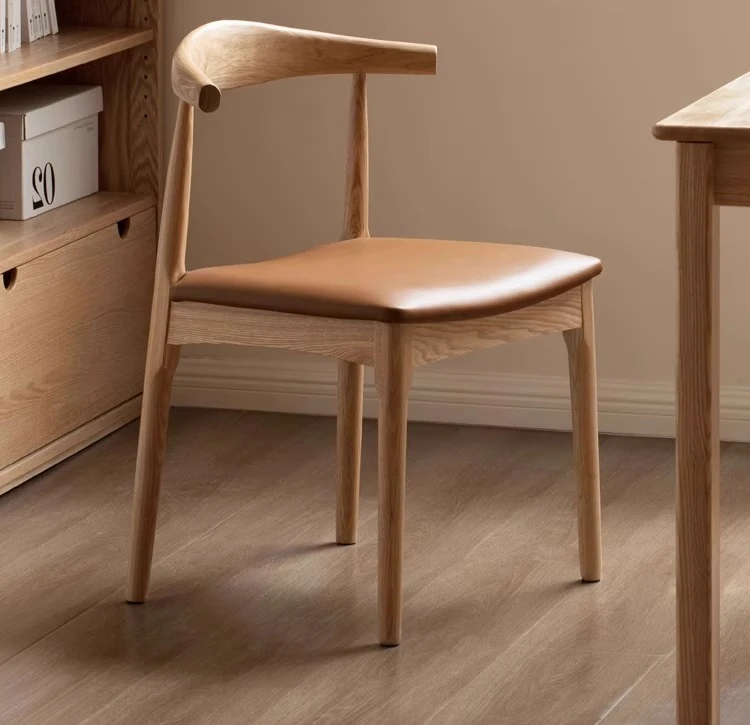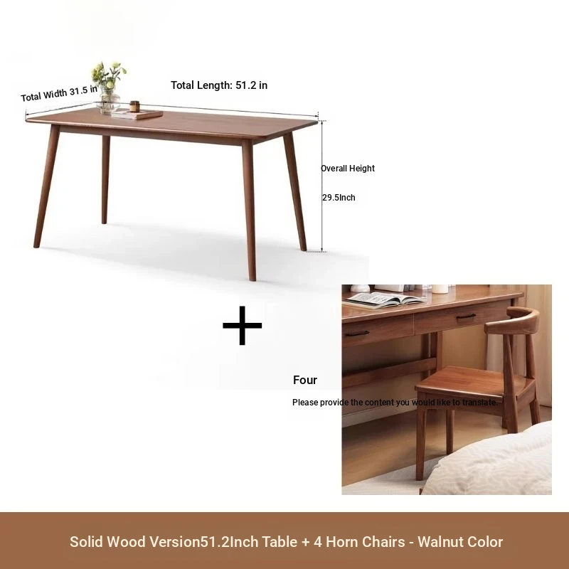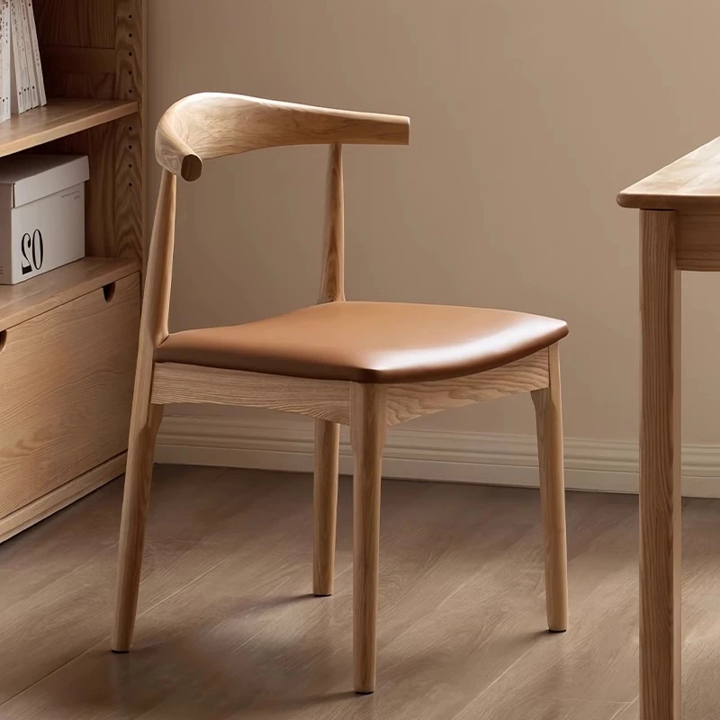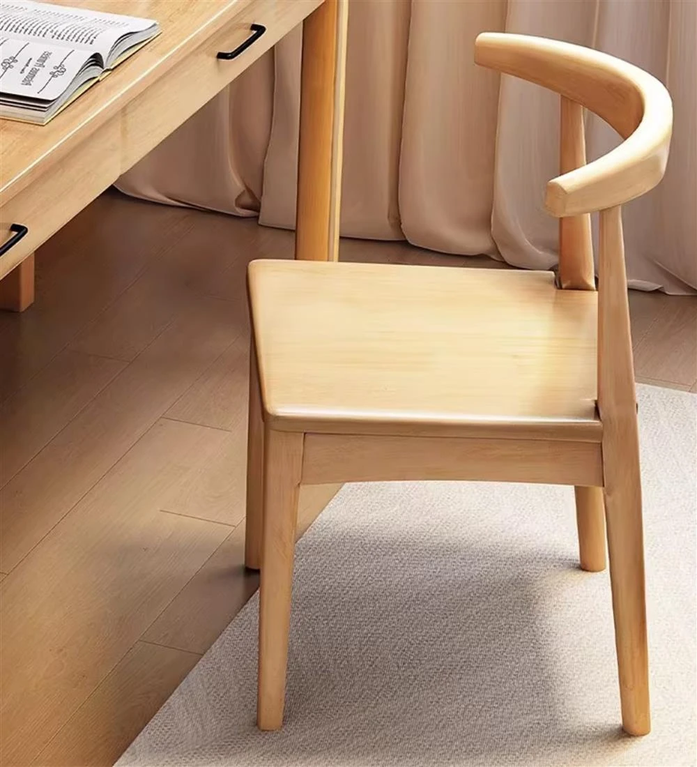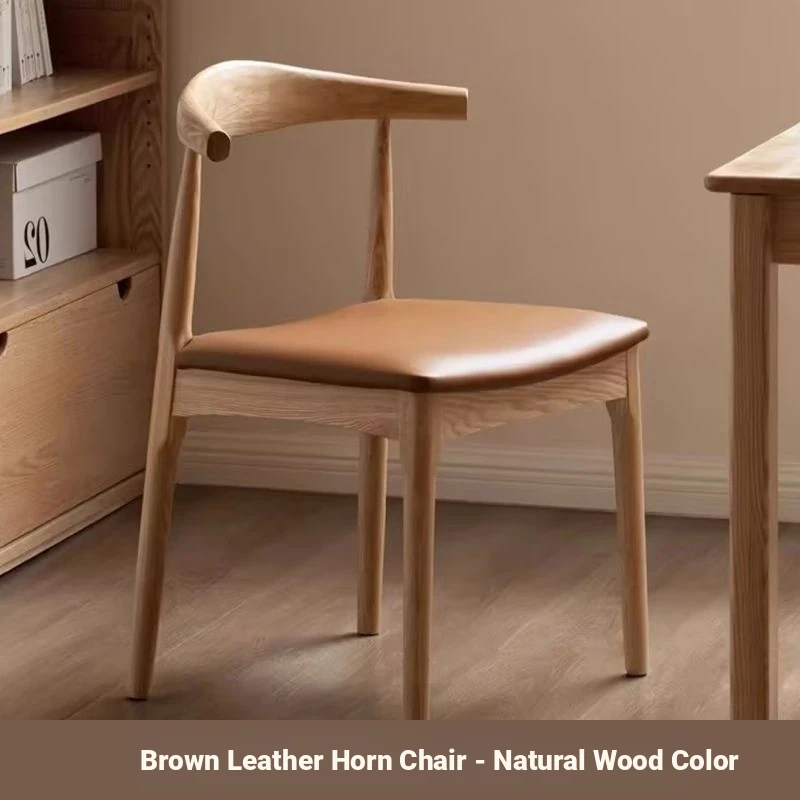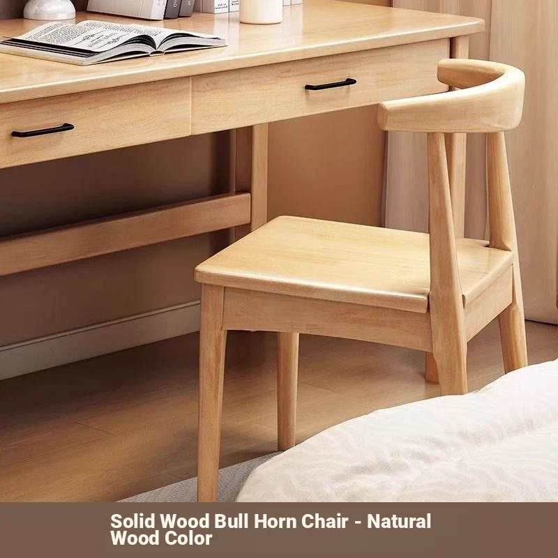 Solid Wood Horn Back Dining Chair - New Chinese Style Wooden Desk Chair for Home, Walnut Single Study Chair, Perfect for Office or Tea Table Use