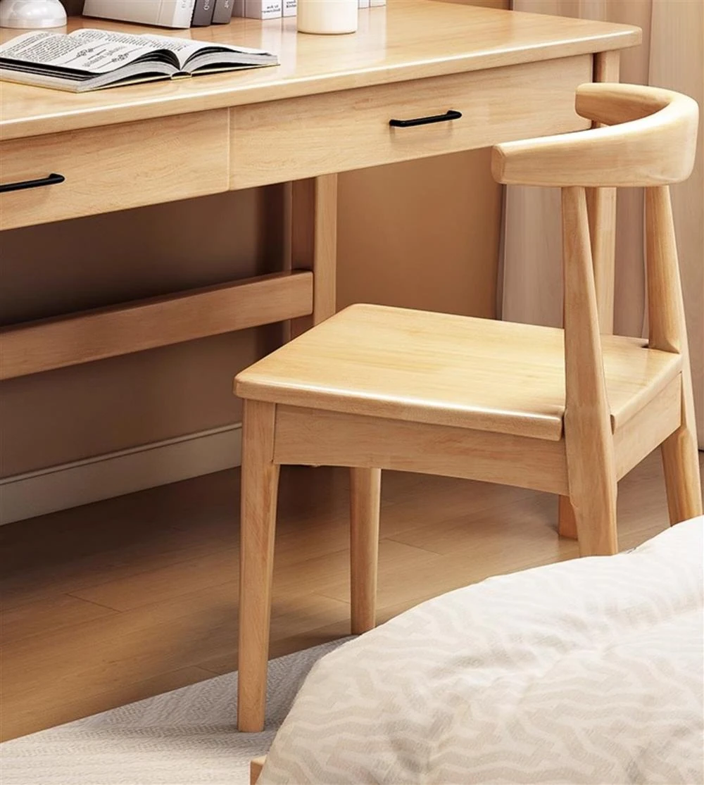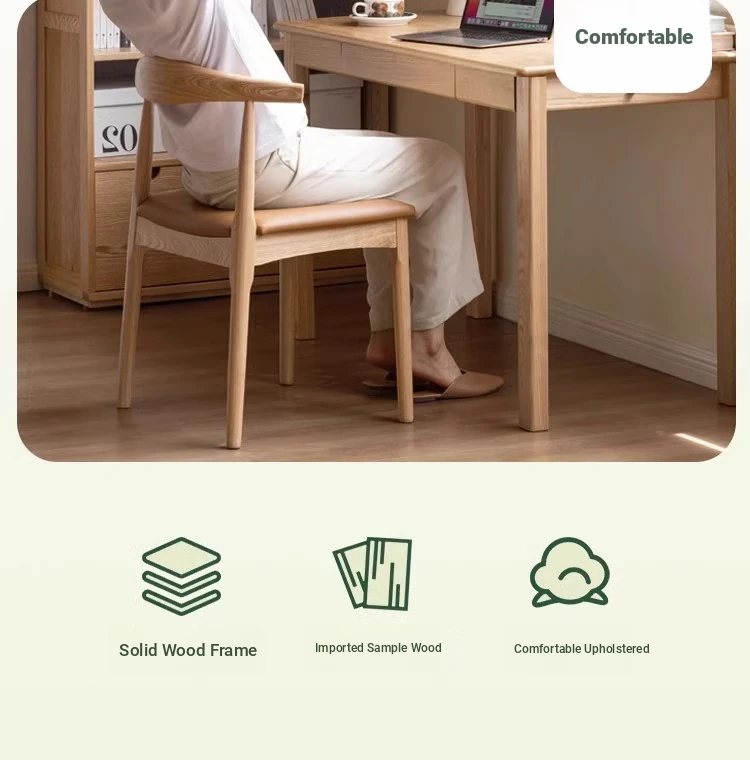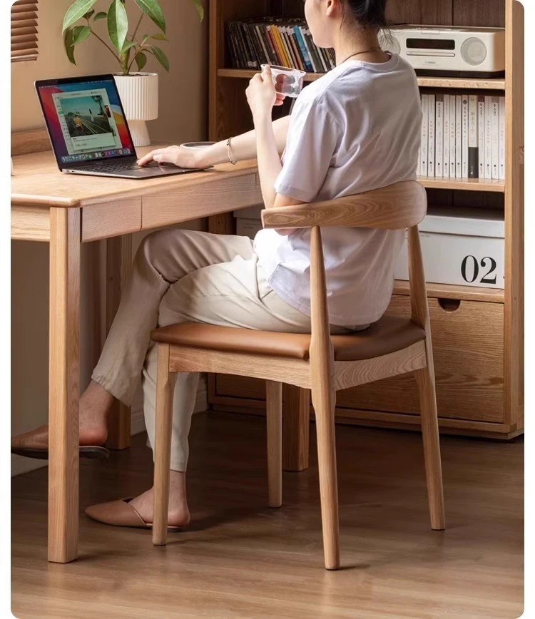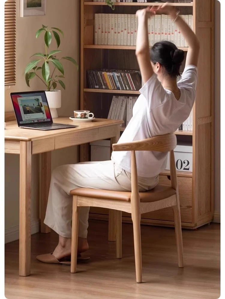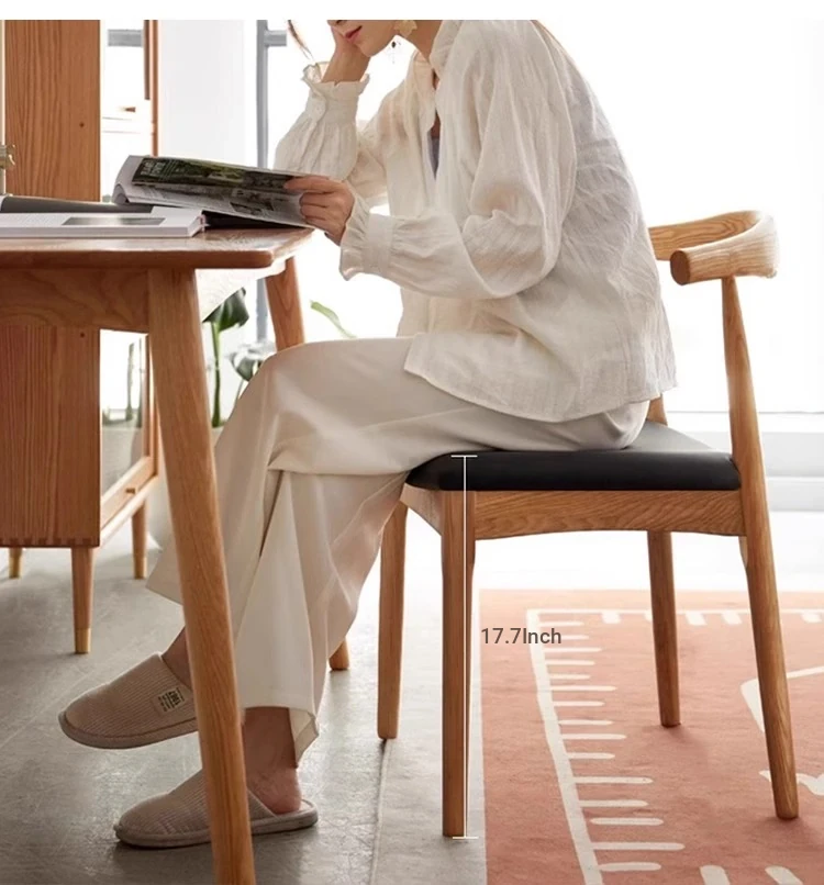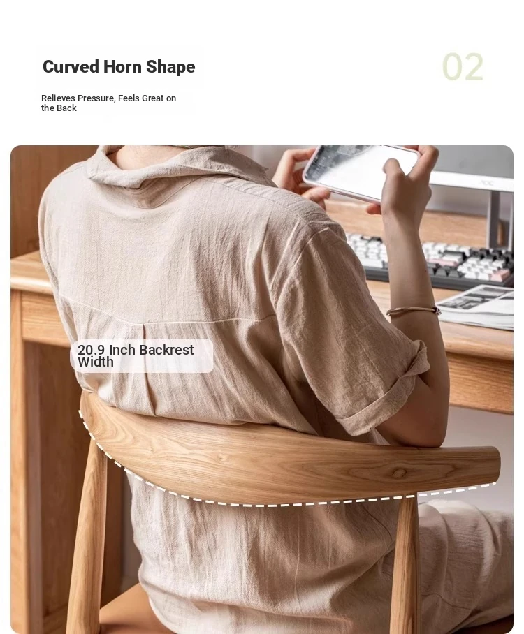 Solid Wood Horn Back Dining Chair - New Chinese Style Wooden Desk Chair for Home, Walnut Single Study Chair, Perfect for Office or Tea Table Use