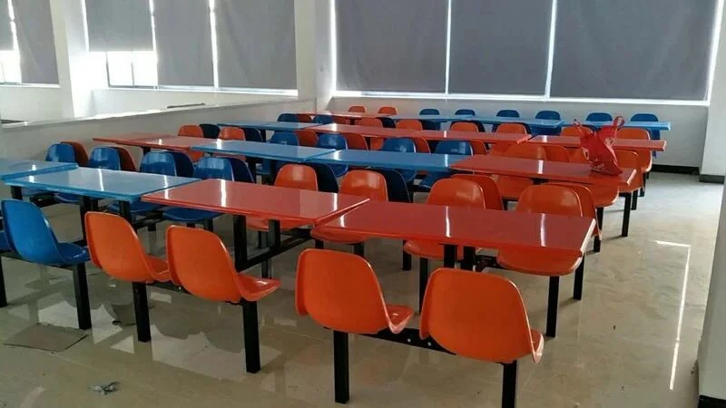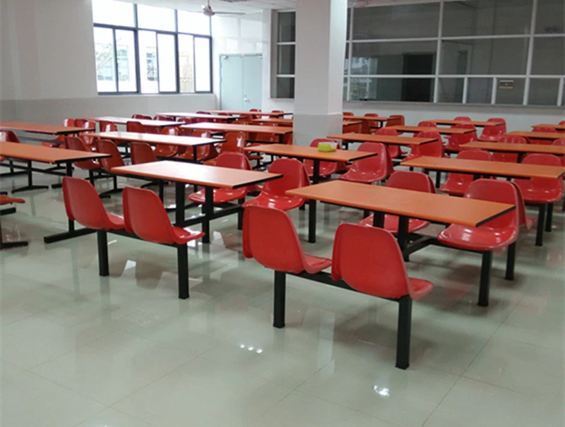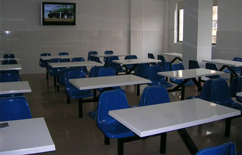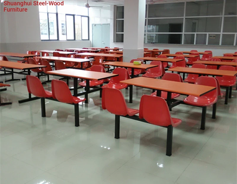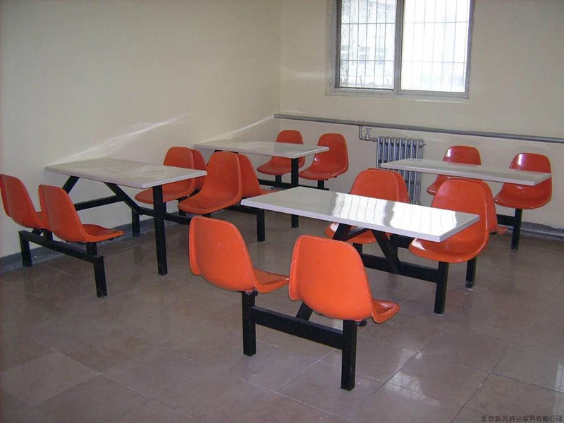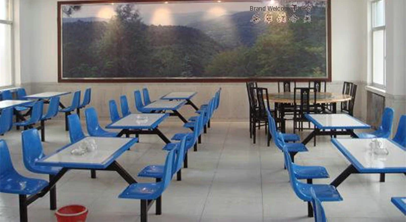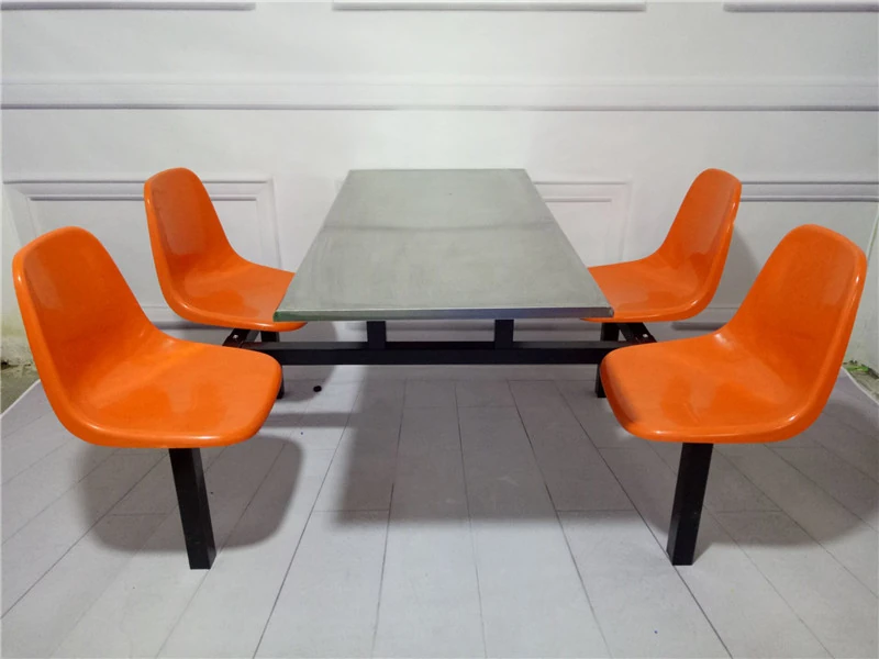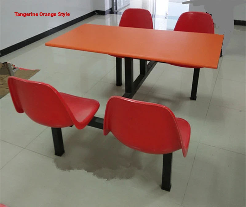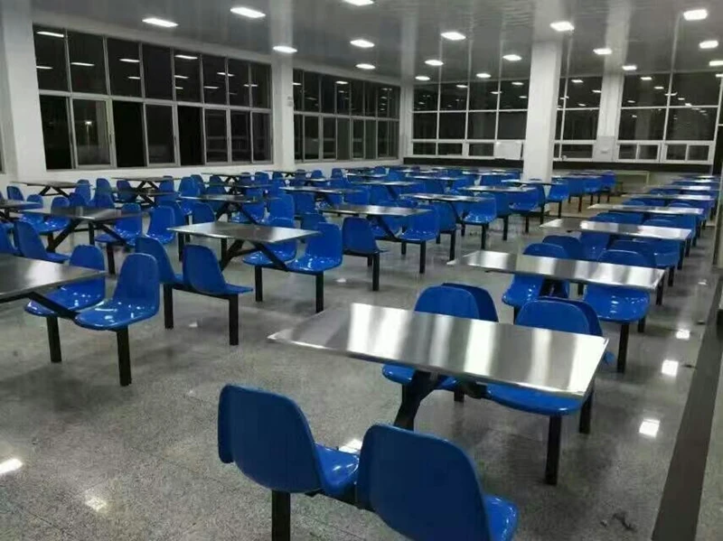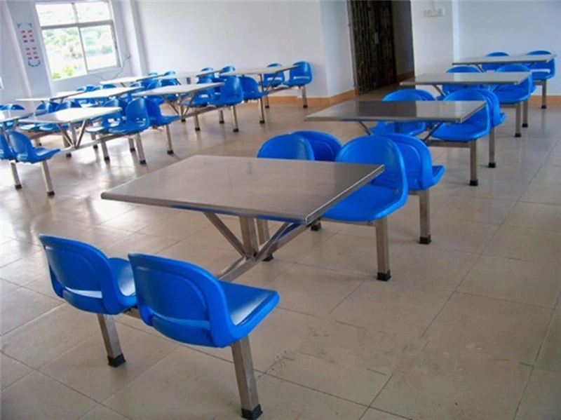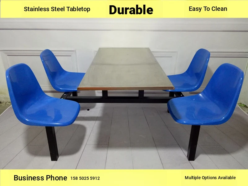 Stainless Steel 4-Person Dining Table Set - Space-Saving Fast Food Table and Chairs for Students, Cafeterias, and Employee Dining Areas - Comfortable Backrest Design for Outdoor Use