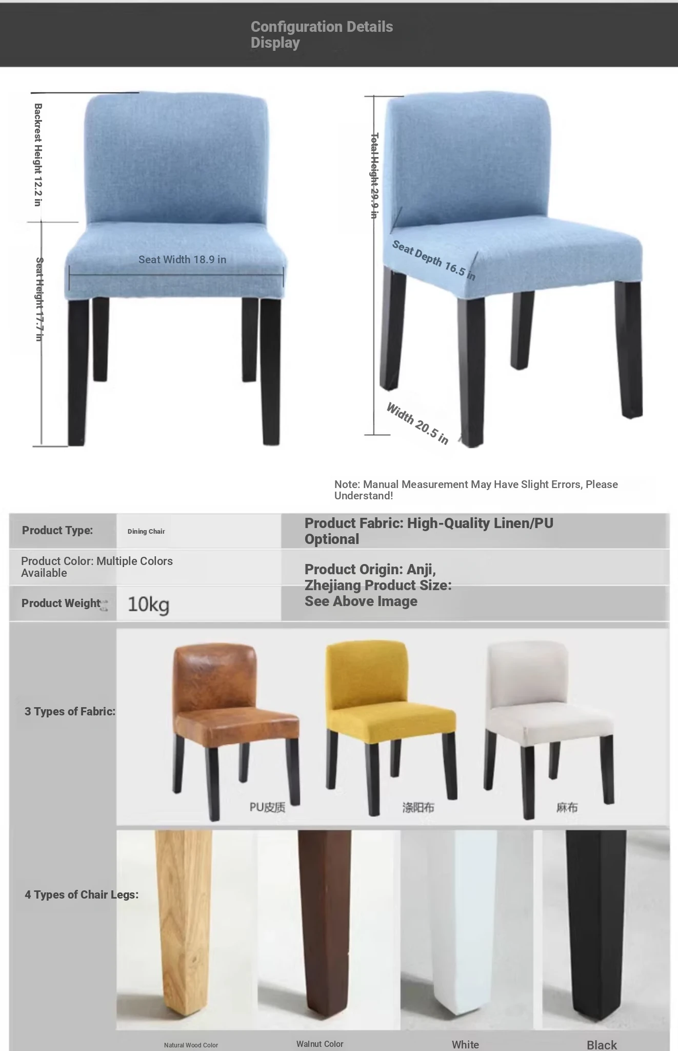 Stylish and Minimalist Removable Fabric Dining Chair for Home, Cafe, and Restaurant – Low-Back Design with Solid Wood Frame for Ultimate Comfort and Easy Cleaning