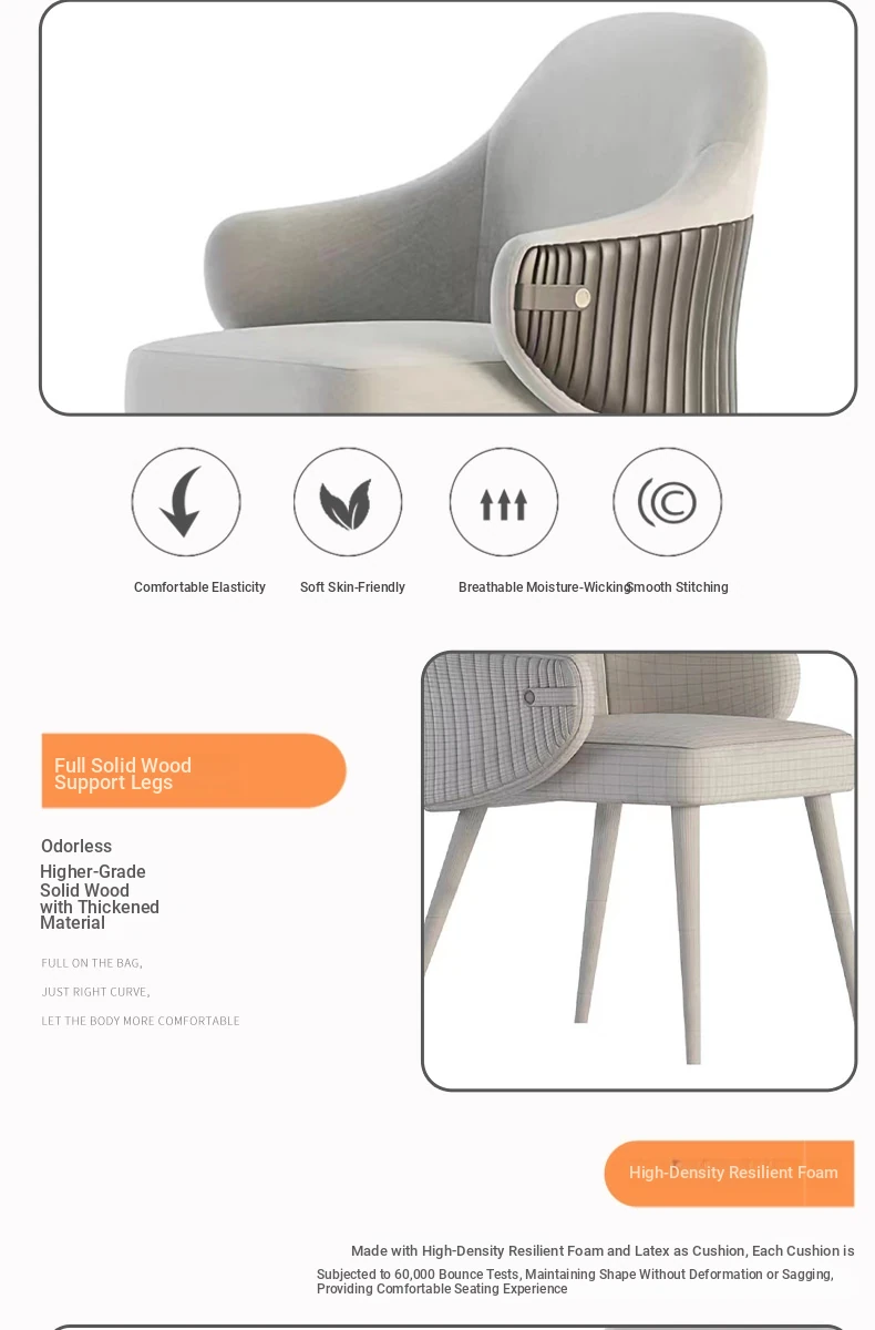 Stylish Minimalist Dining Chair for Home Use - Modern Scandinavian Design, Solid Wood Backrest, Perfect for Desks and Hotels, Elevate Your Dining Experience with Elegance and Comfort.