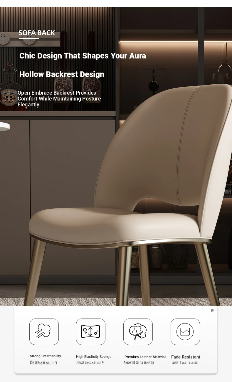 Stylish Modern Dining Chair for Small Spaces - High-End Stainless Steel Backrest Stool for Island Kitchen Tables - Perfect Blend of Luxury and Simplicity