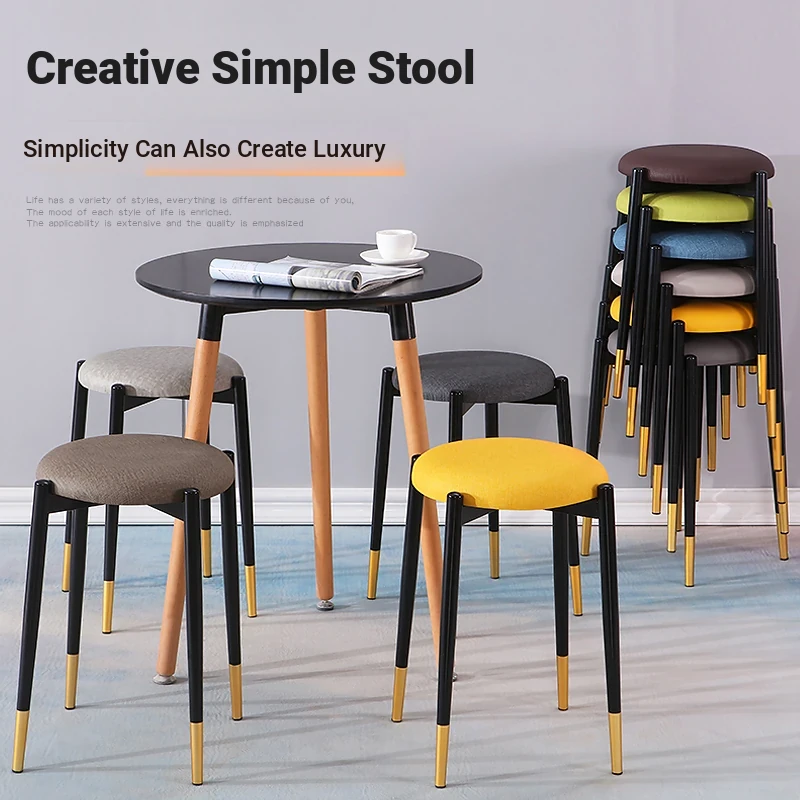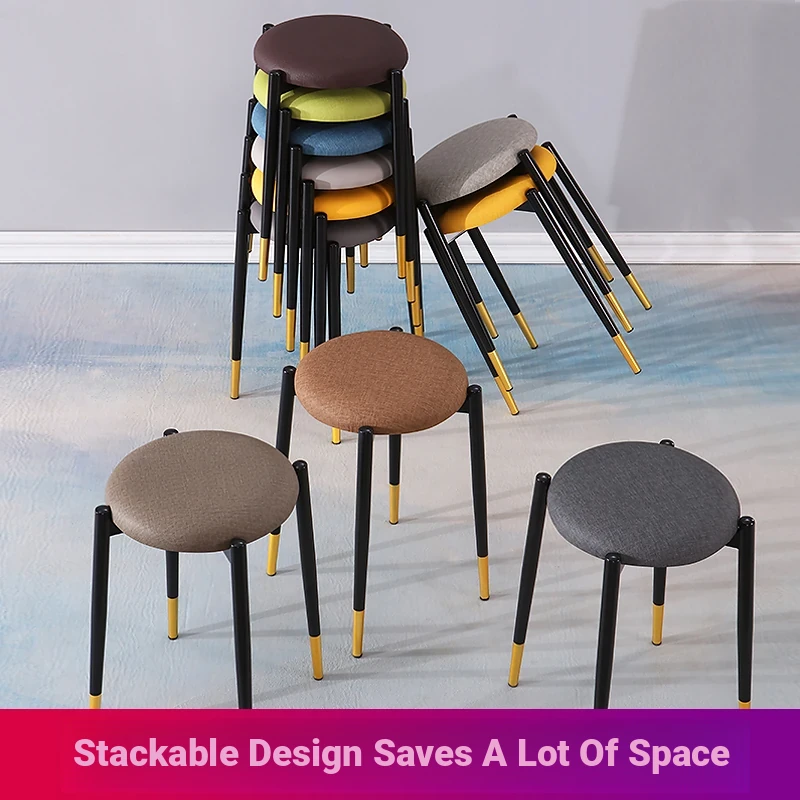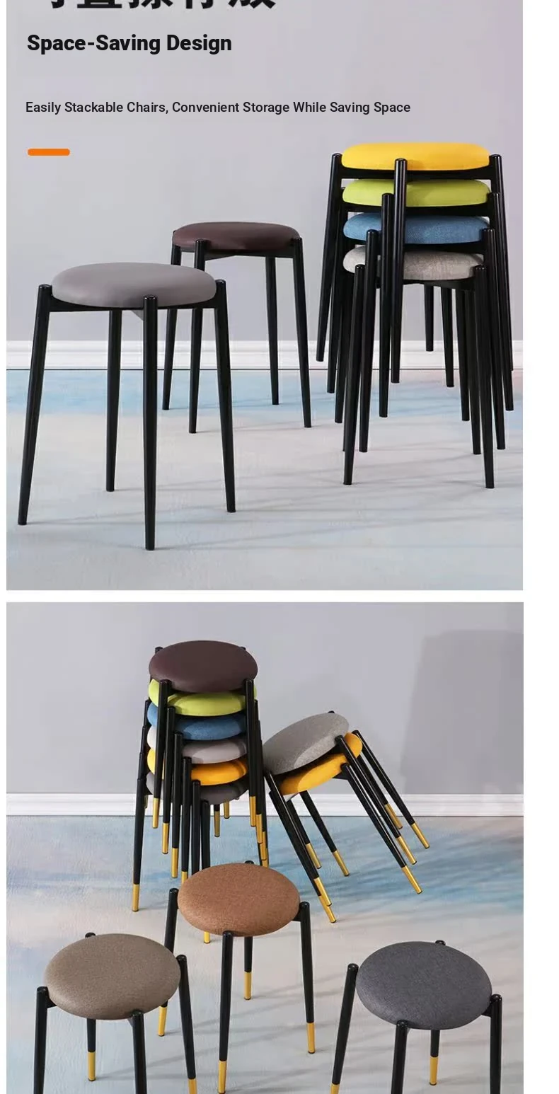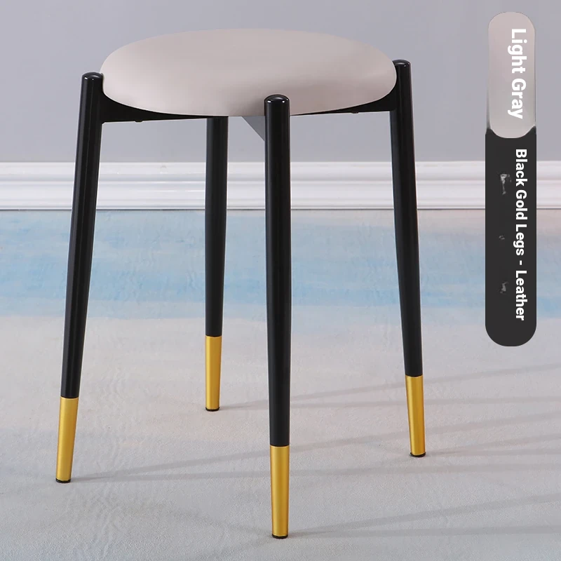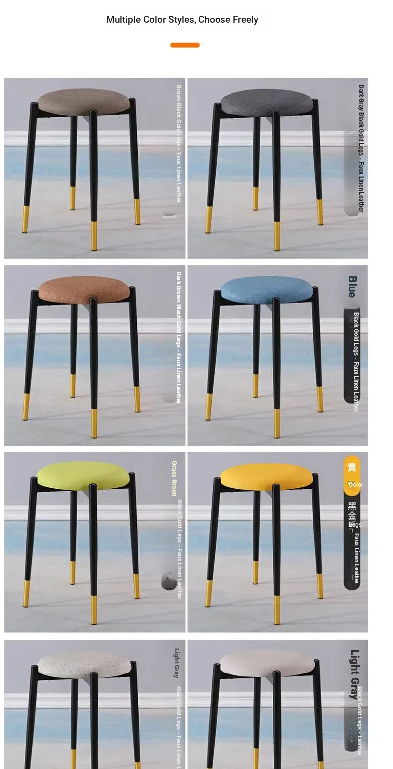Stylish Round Stool - Modern Minimalist Makeup Bench, Luxury Home Sofa Seat, Trendy Stacking Leather Ottoman, Perfect for Any Room!