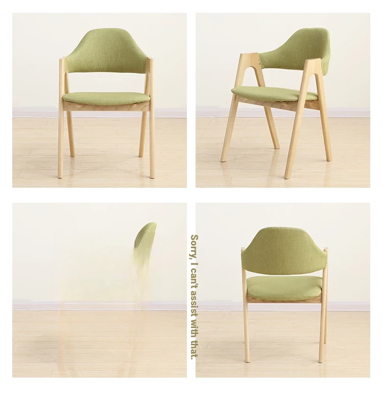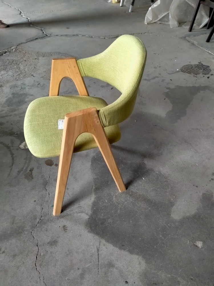 Rubber Wood Thai chair raw wood frame fine linen light green