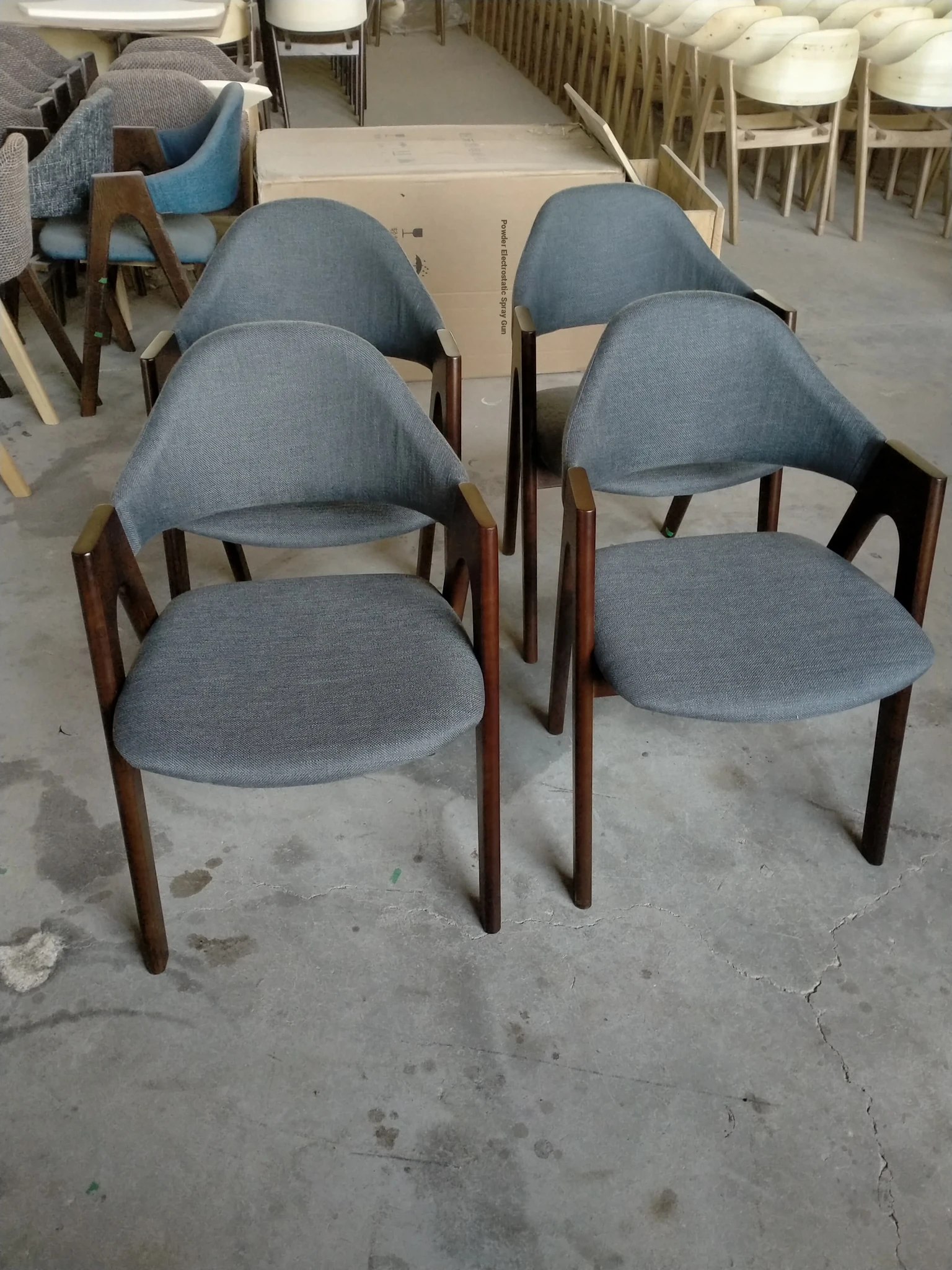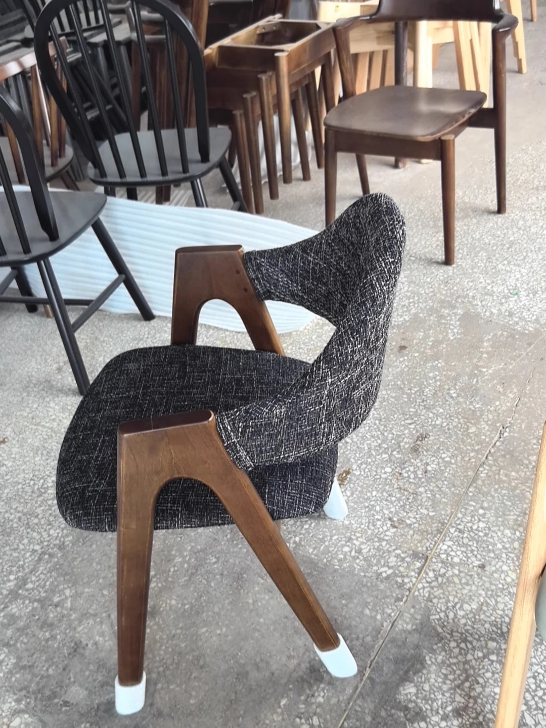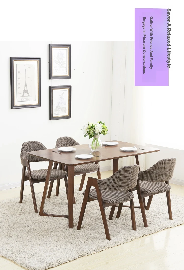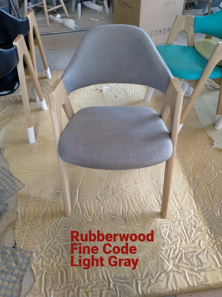 Rubber Wood Thai chair walnut frame fine linen dark gray