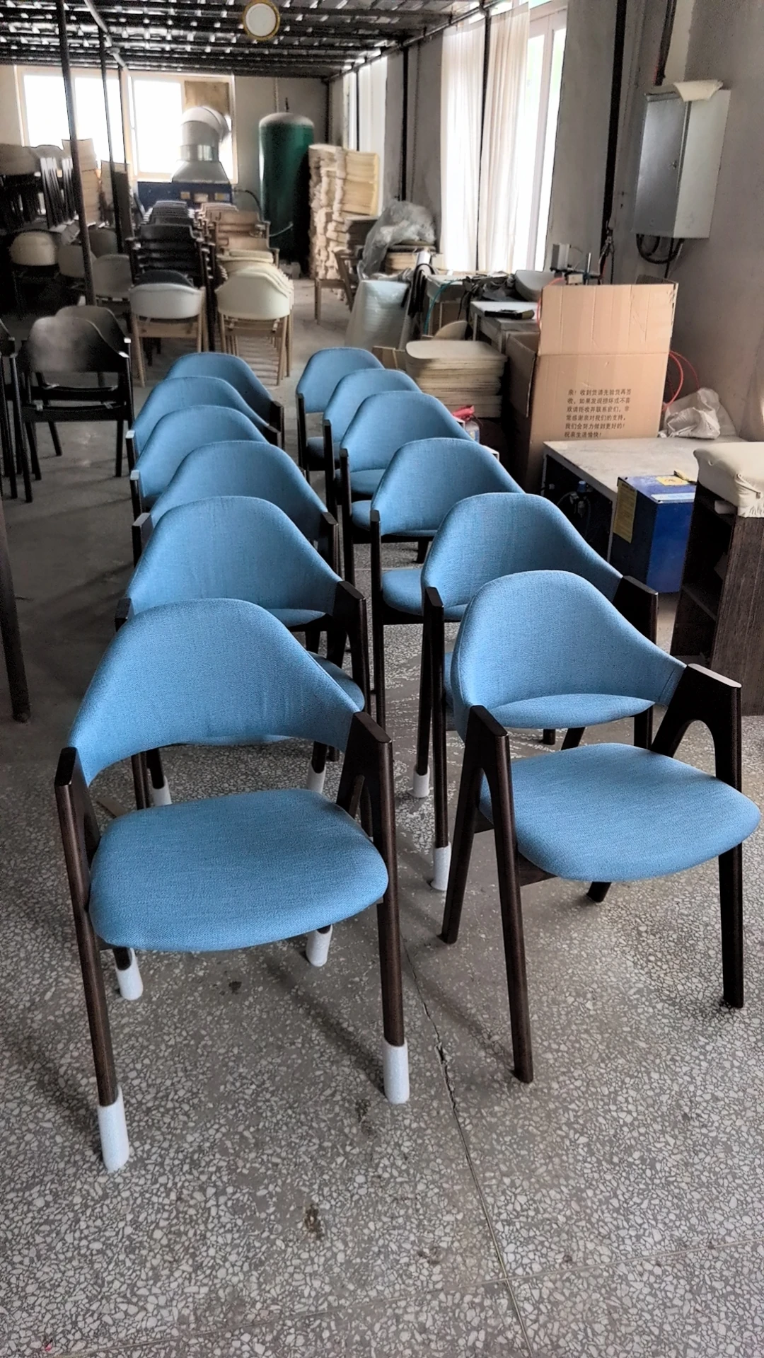Rubber Wood Thai chair walnut frame fine linen light blue
