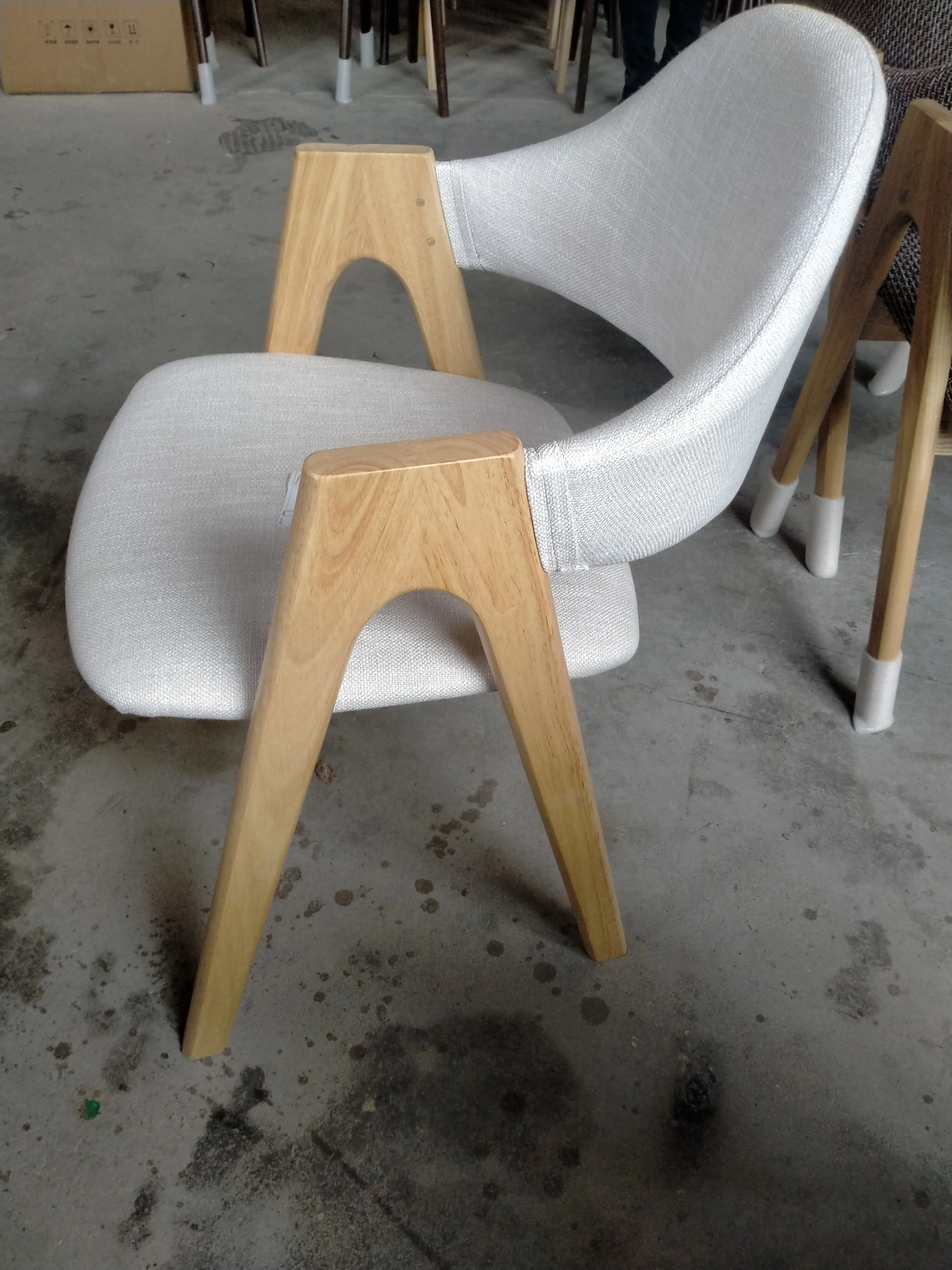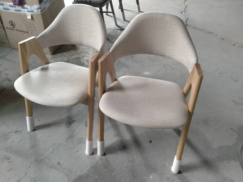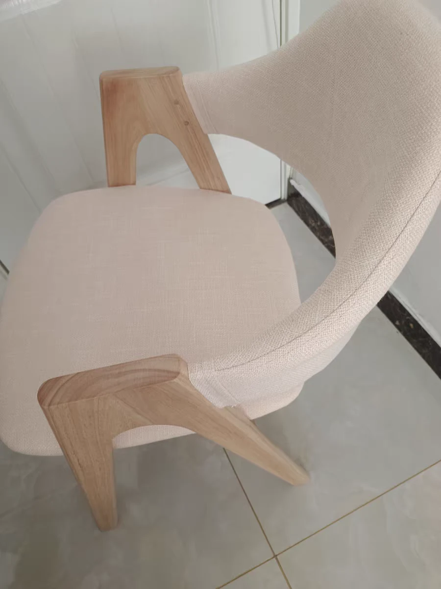 Rubber Wood Thai chair original wood frame fine linen beige