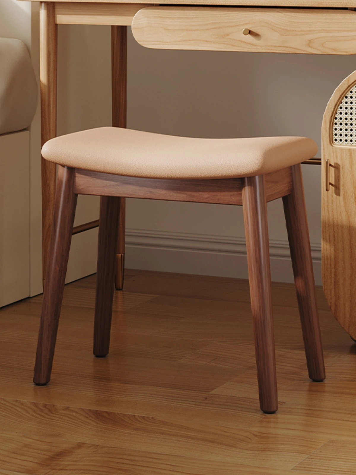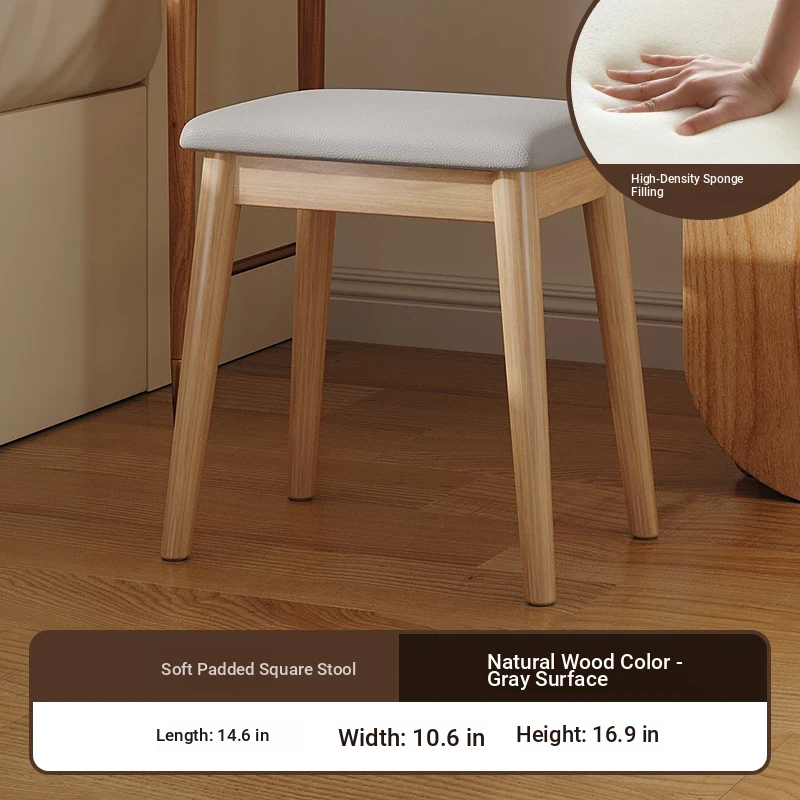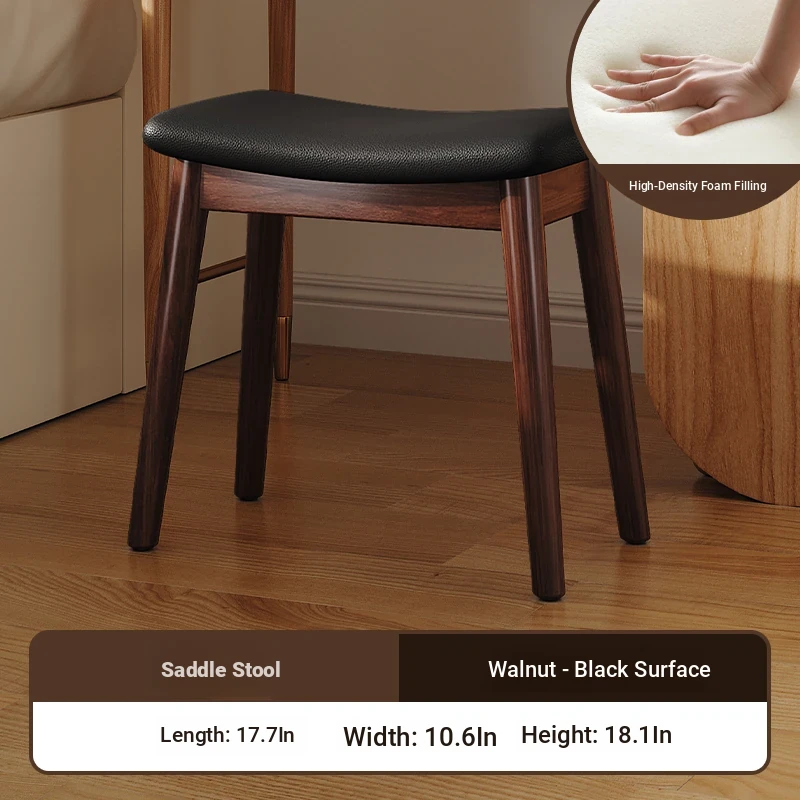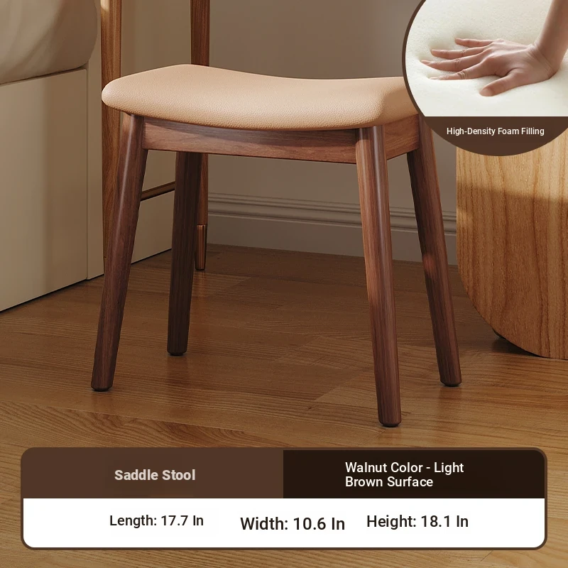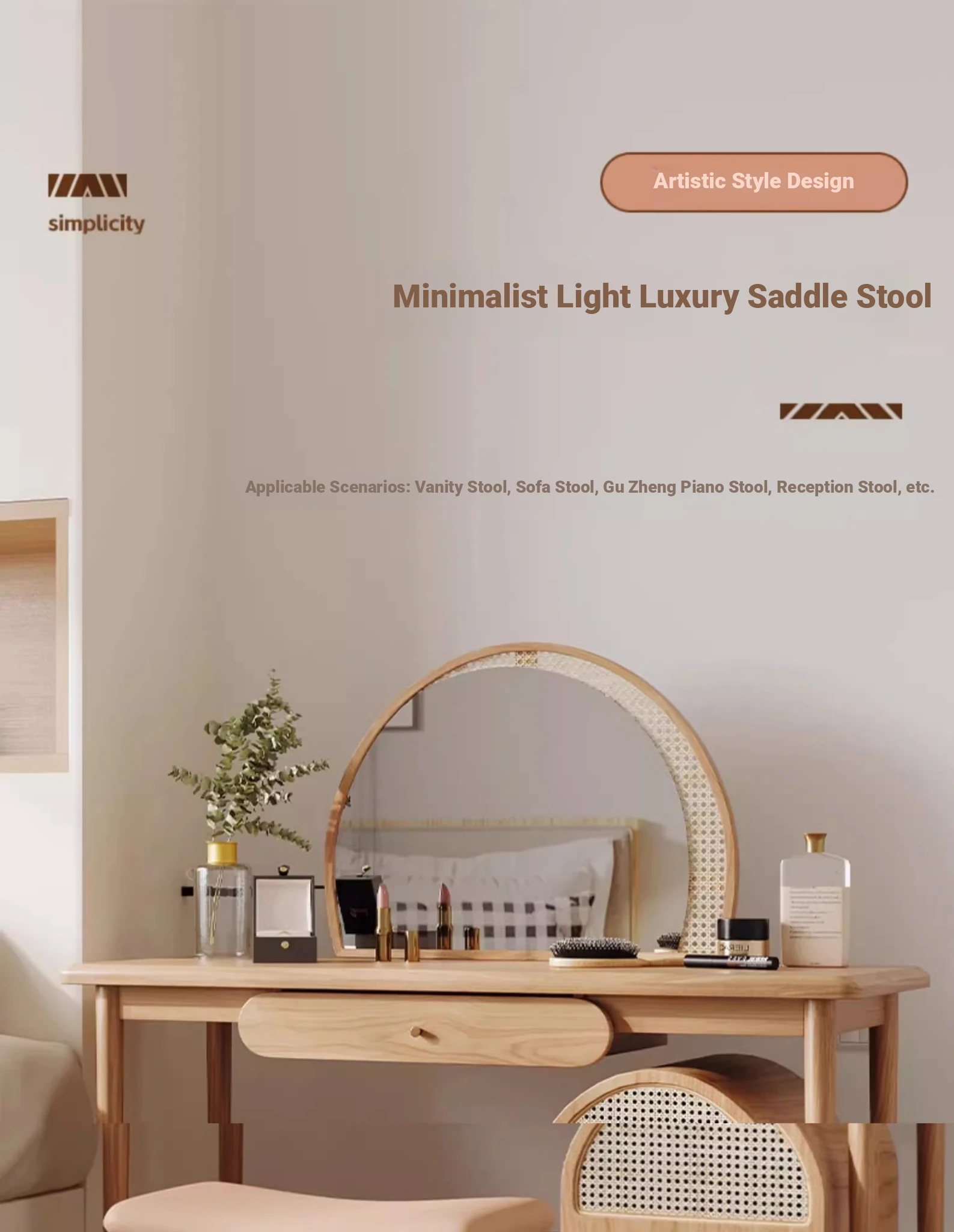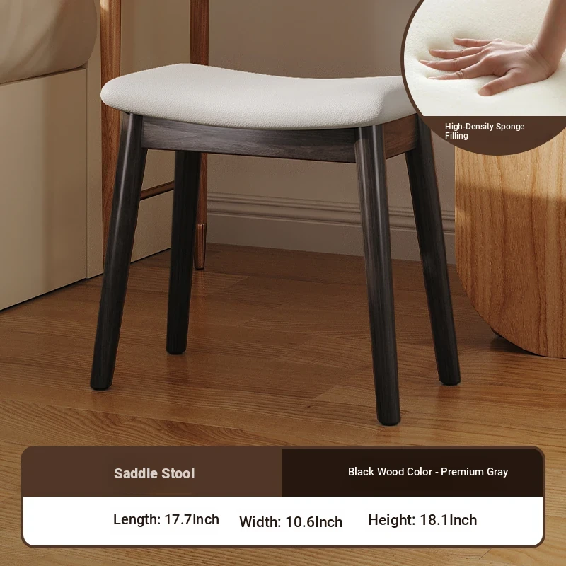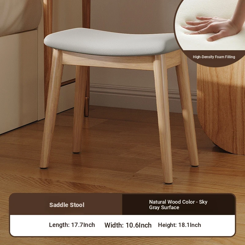 Stylish Solid Wood Saddle Stool - Perfect Makeup Chair for Girls' Bedrooms, Ideal for Dressing Tables, Trendy Short Stool with Square Top