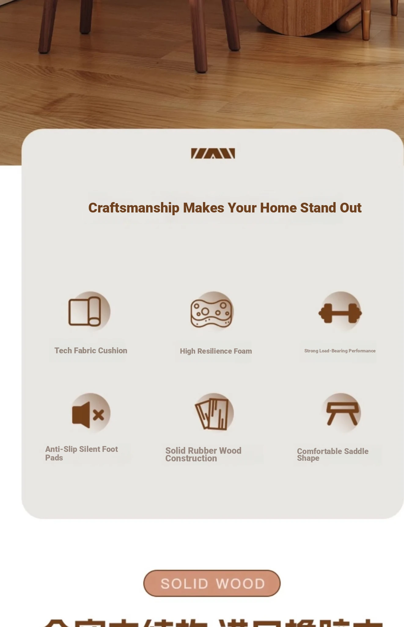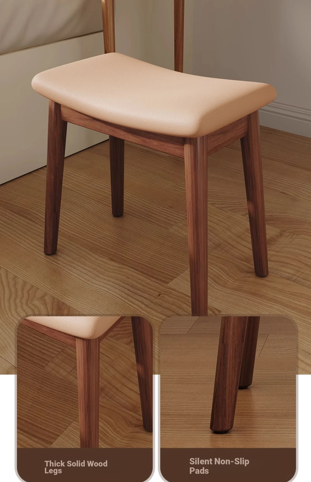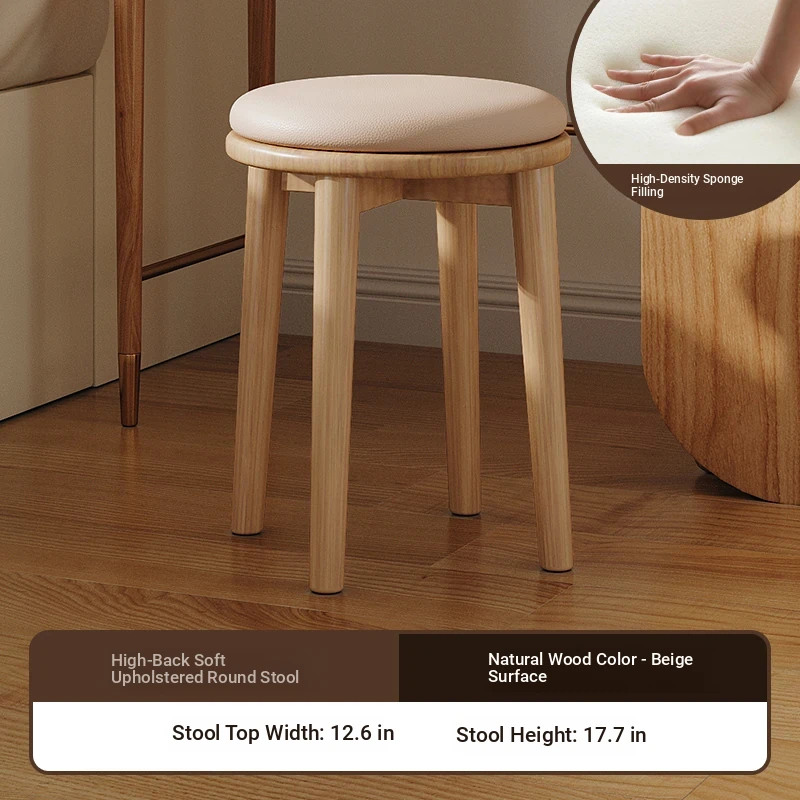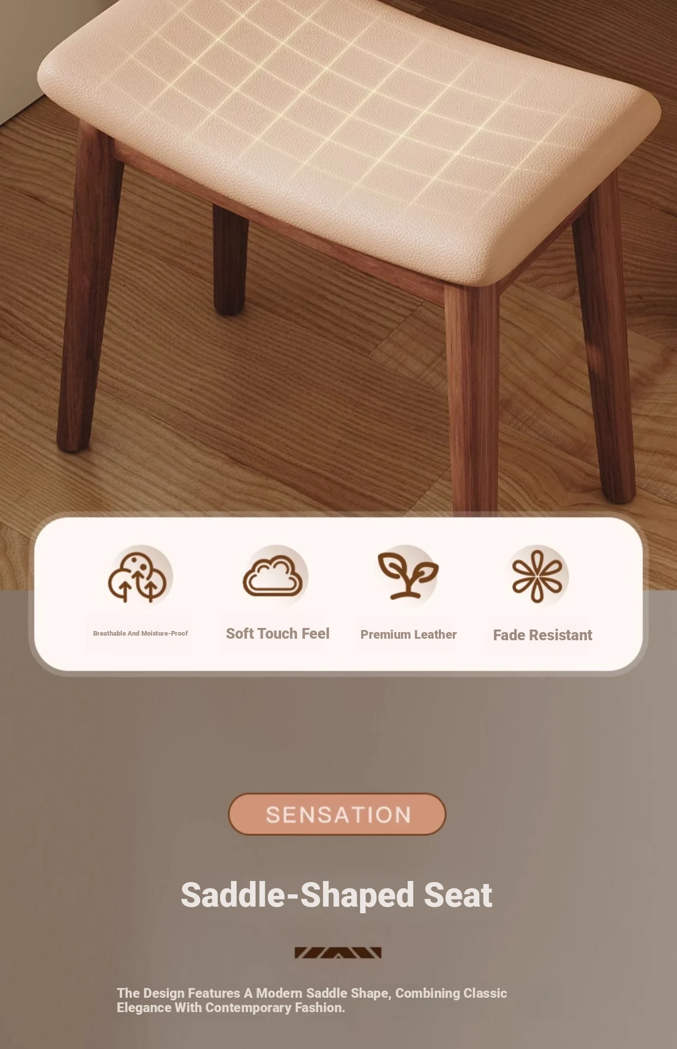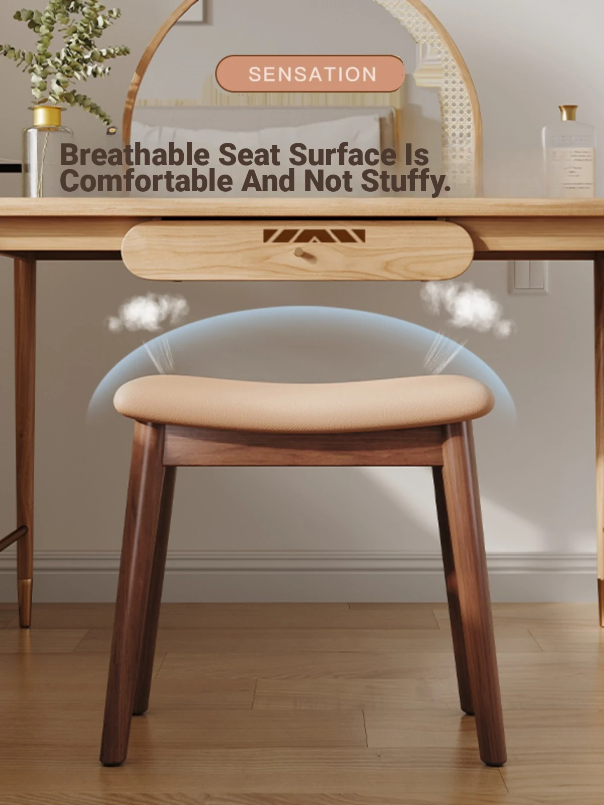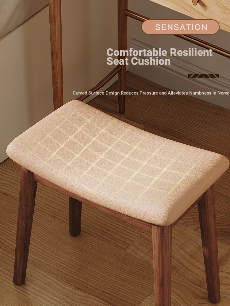 Stylish Solid Wood Saddle Stool - Perfect Makeup Chair for Girls' Bedrooms, Ideal for Dressing Tables, Trendy Short Stool with Square Top