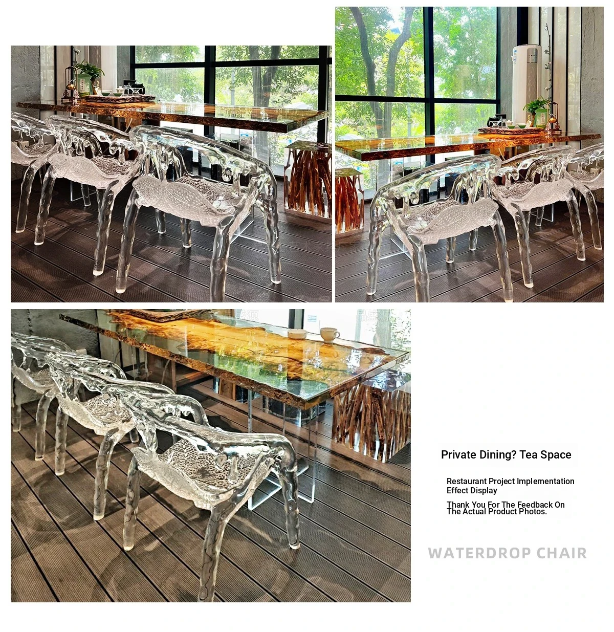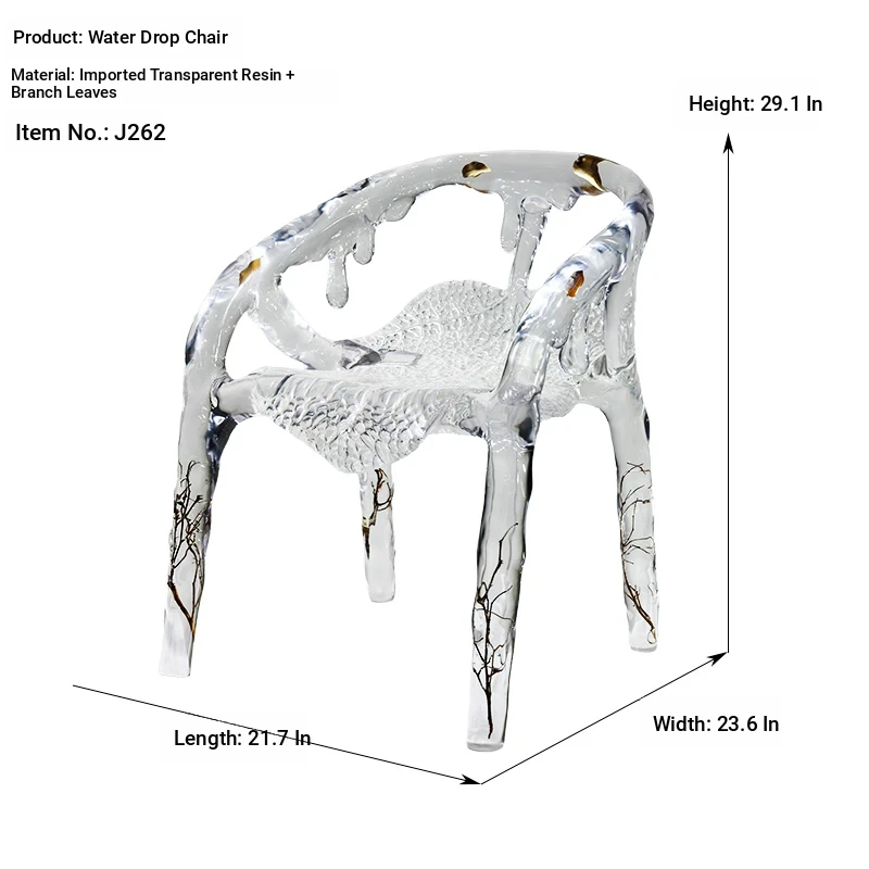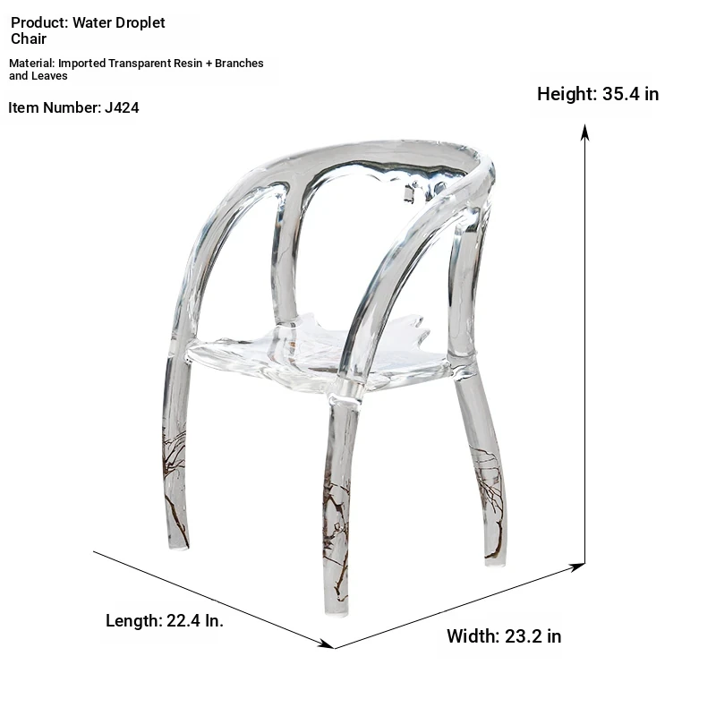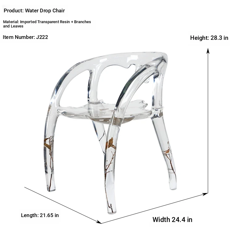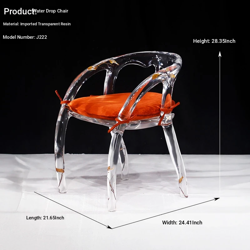 Transparent Water Drop Chair - Elegant New Chinese Style Tea Room Armchair for Tea Lovers, High-End Resin and Crystal Acrylic Design, Perfect for Stylish Hosting