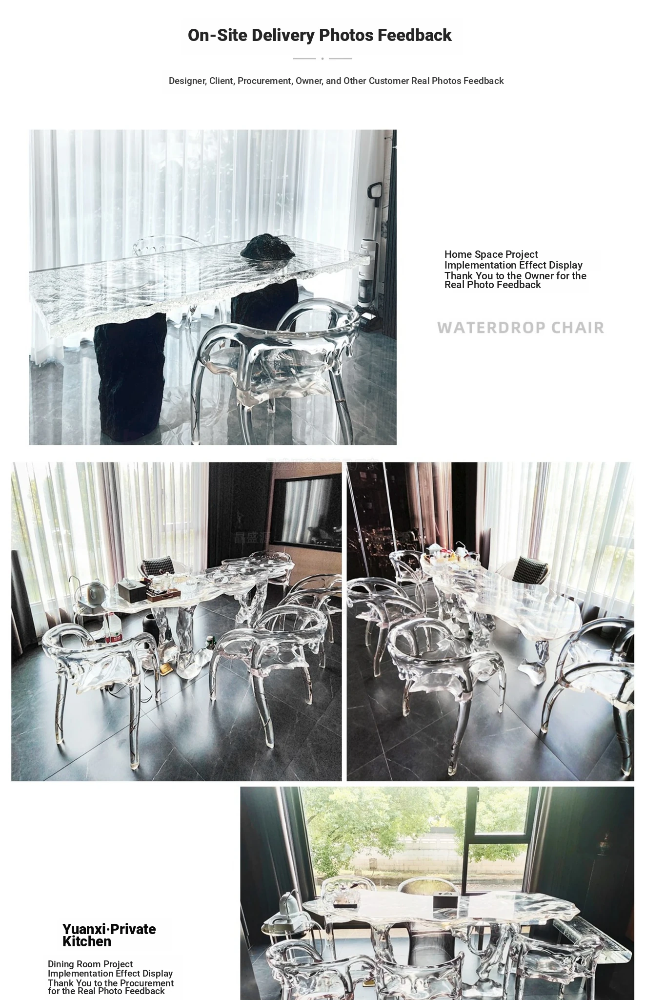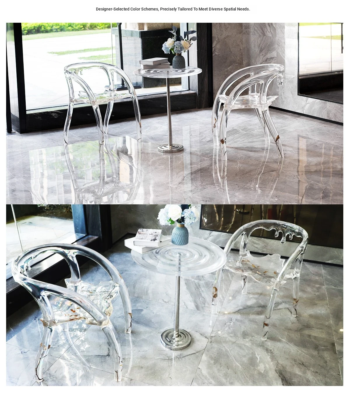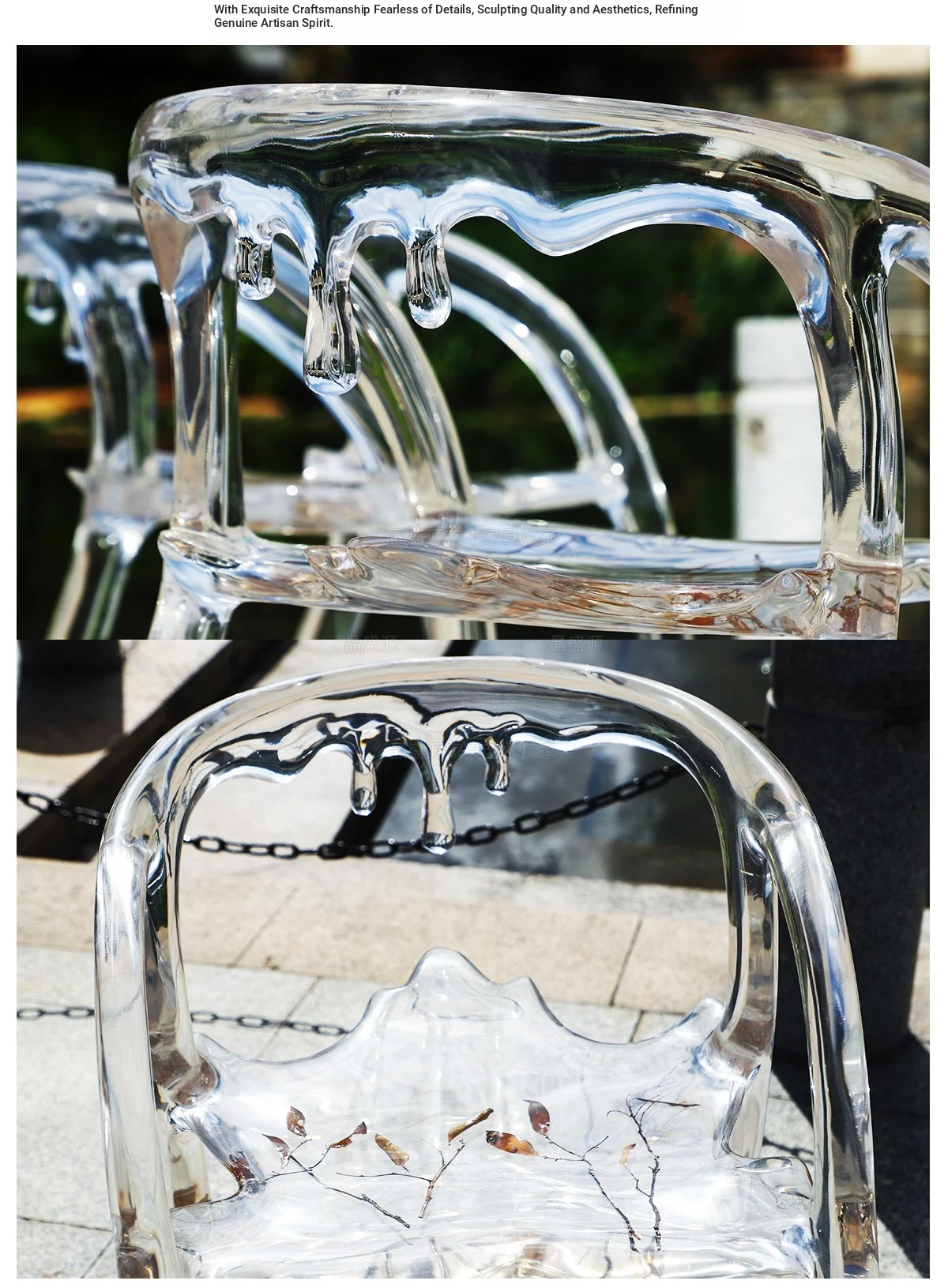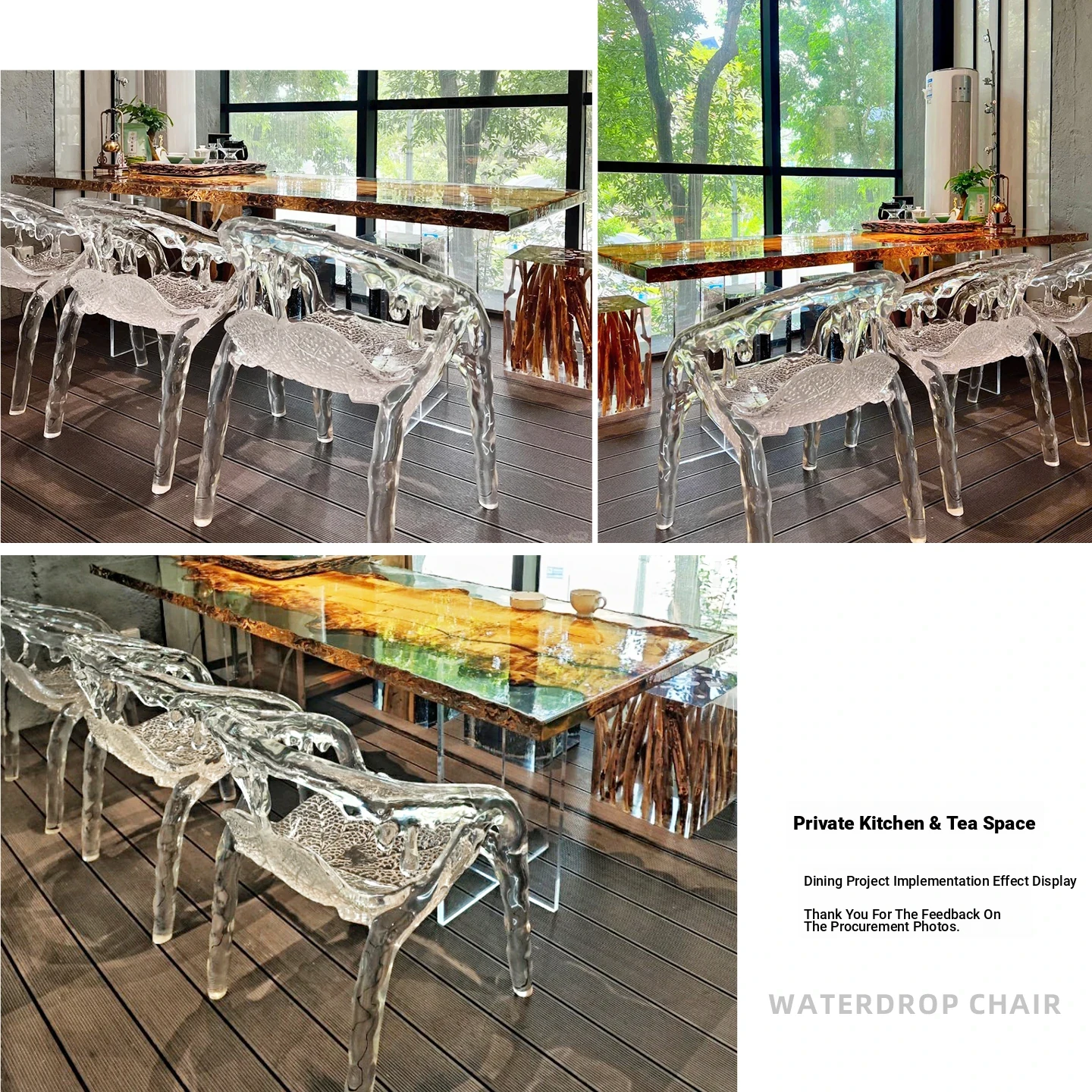 Transparent Water Drop Chair - Elegant New Chinese Style Tea Room Armchair for Tea Lovers, High-End Resin and Crystal Acrylic Design, Perfect for Stylish Hosting