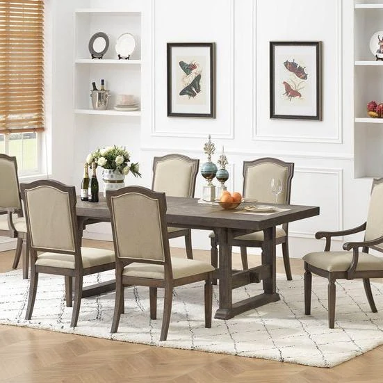 Vintage American Solid Wood Fabric Dining Chair - Retro Style Armchair for Hotels, Villas, and Offices