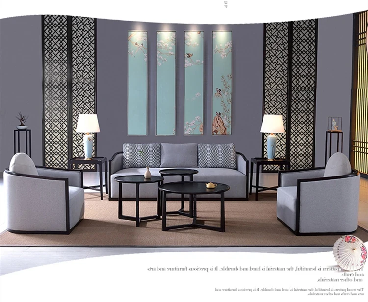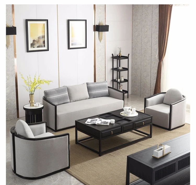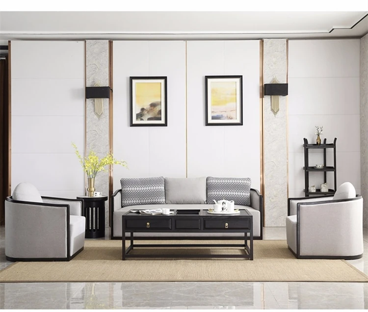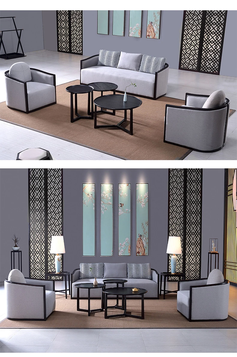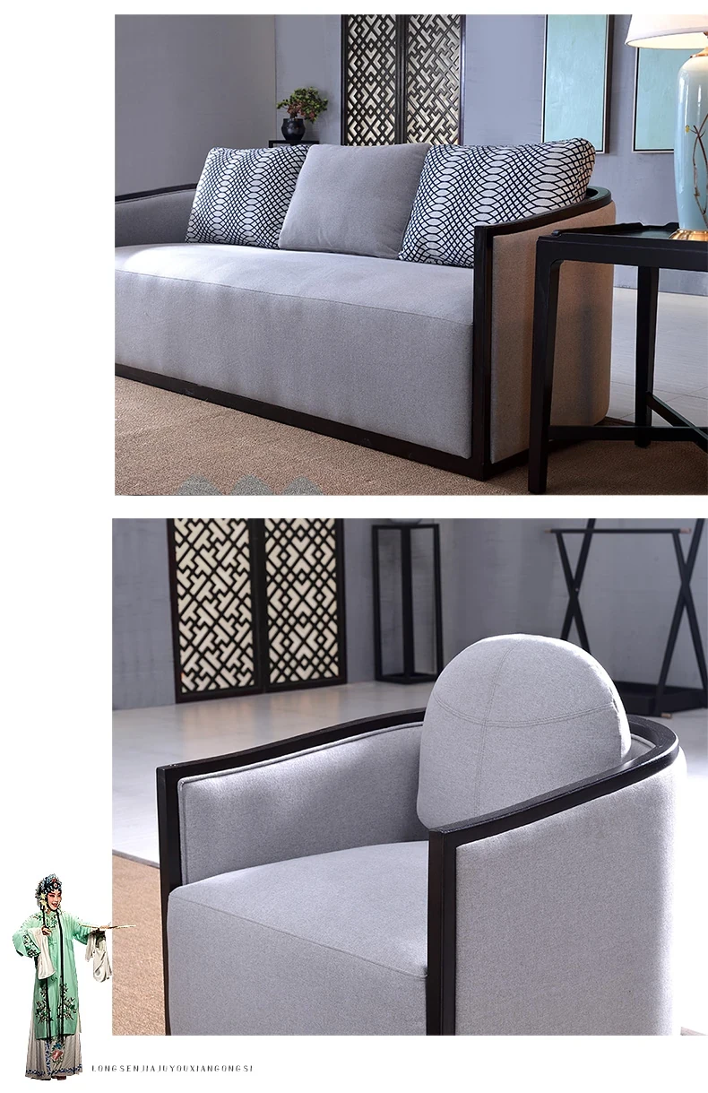 Zen Style Solid Wood Sofa Set - Modern Chinese Design, Ash Wood Furniture for Small Living Rooms, Hotels, Offices, and Home Use