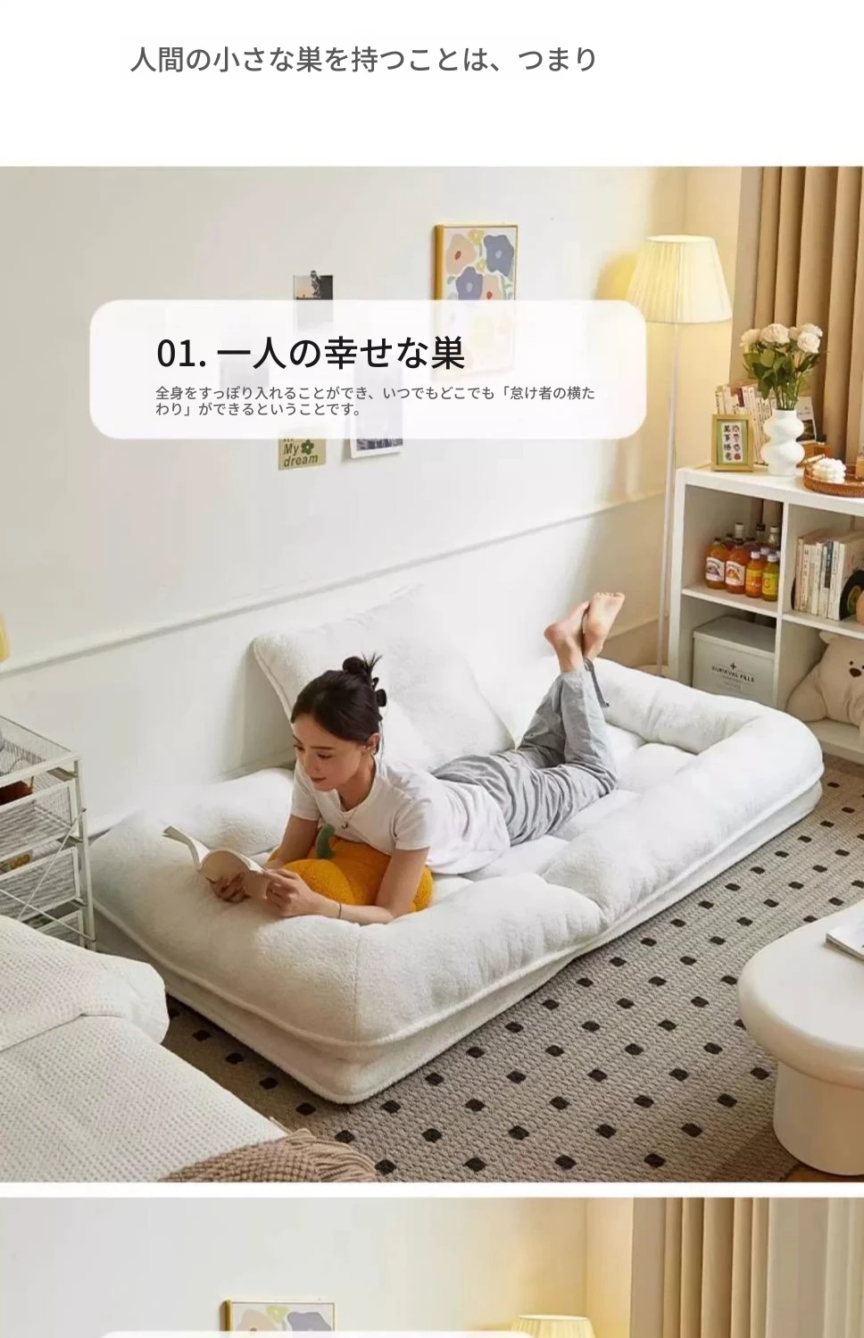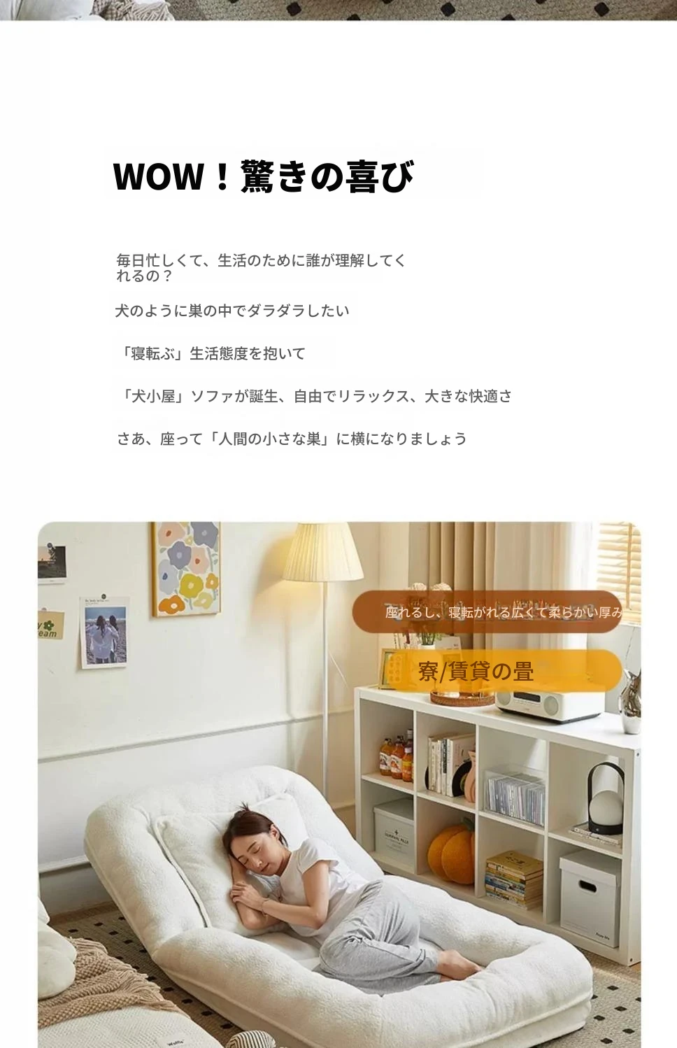 2025年新作!人間用ドッグハウス・リラックスソファベッド - 寝るも座るも自由自在!折りたたみ式・畳スタイルの一人用リクライニングチェア、大人向けの快適さをお届けします。