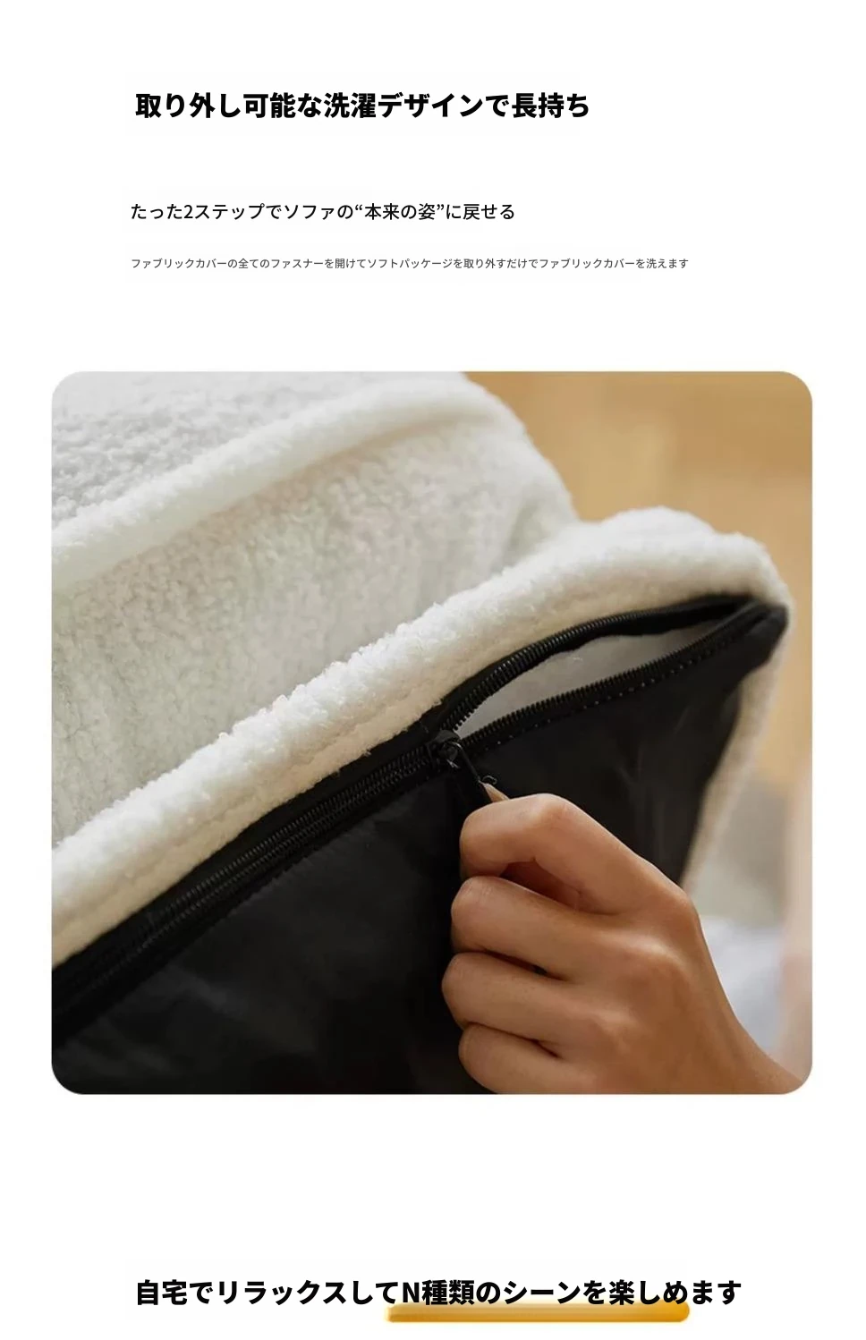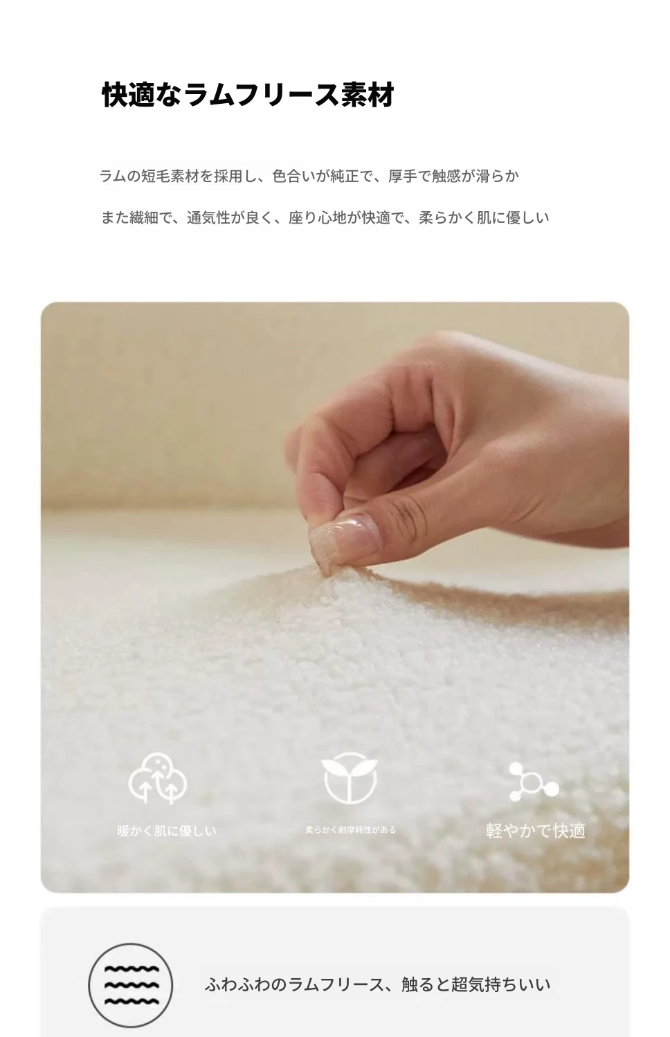 アイボリー-【ロングサイズ178*95】アップグレード厚手【肌触りの良いラムフリース】クッション付き