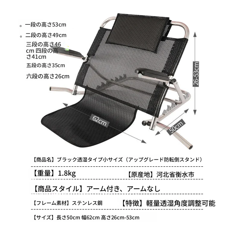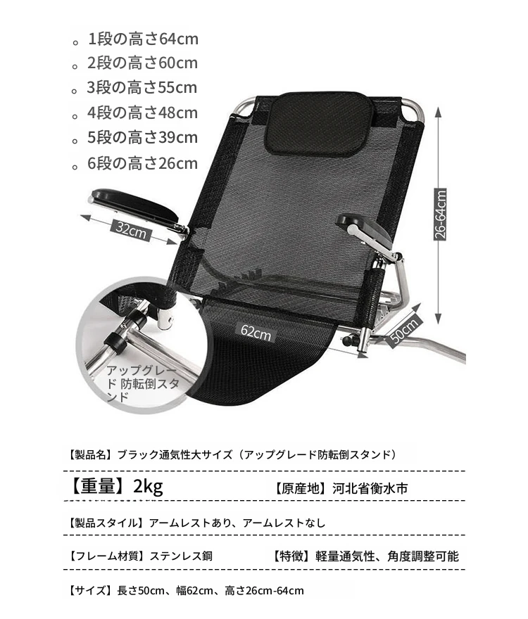 黒色通気性ステンレス製手すりタイプ【アップグレード防倒れスタンド】(大サイズ)