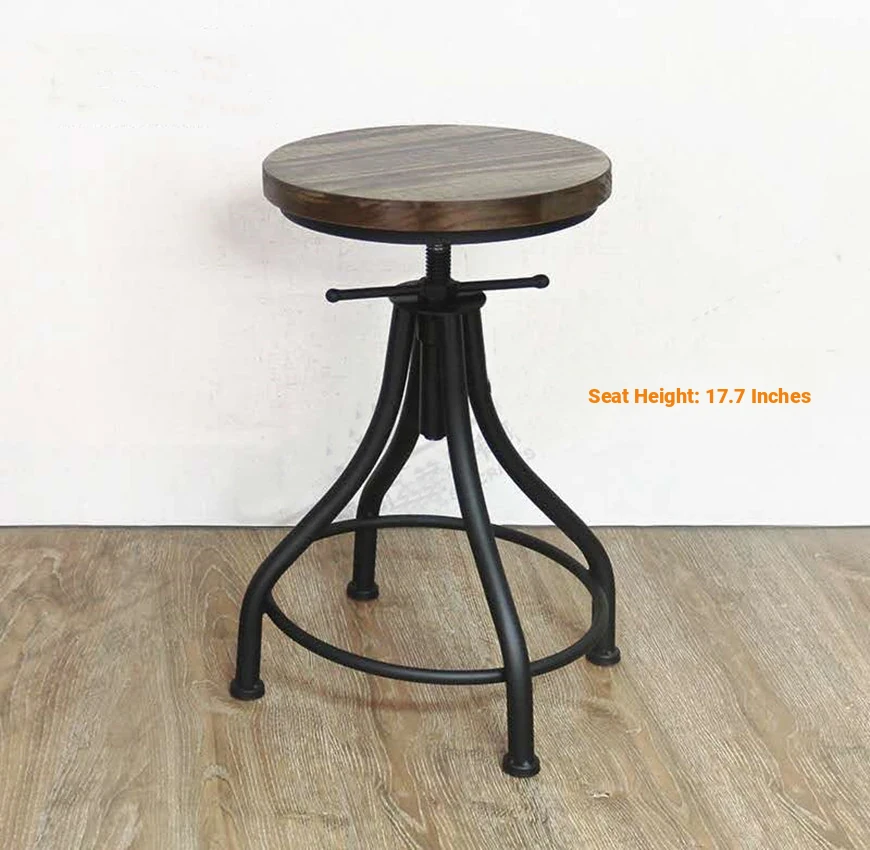 American Vintage Iron and Solid Wood Adjustable Dining Chair - Stylish Bar Stool for Restaurants and Cafés, Perfect for Relaxed High Seating at the Bar