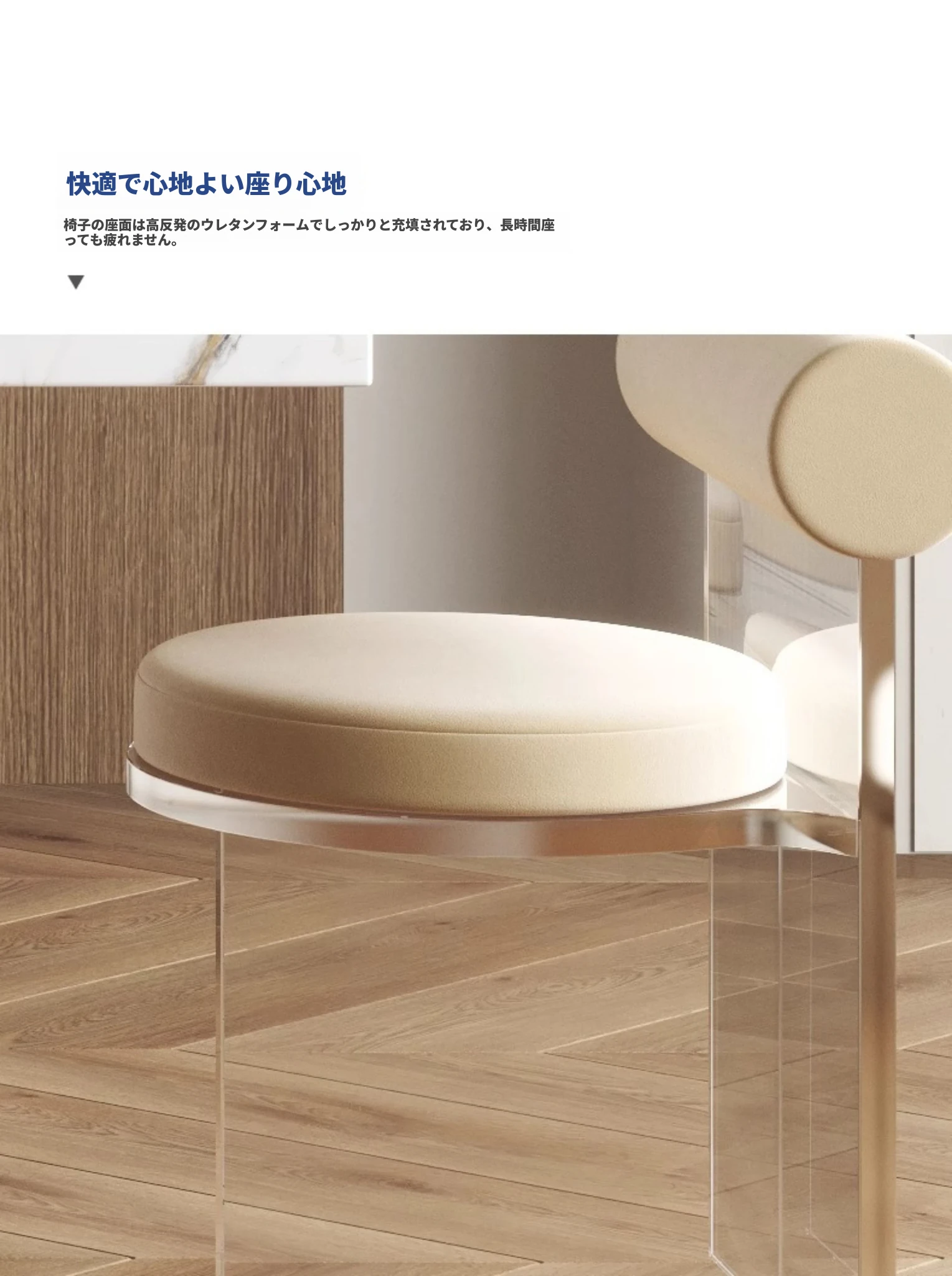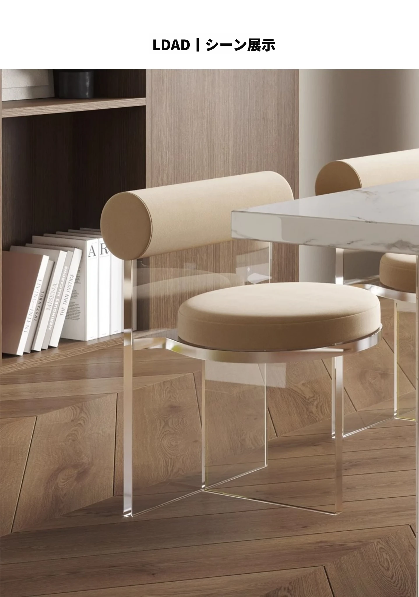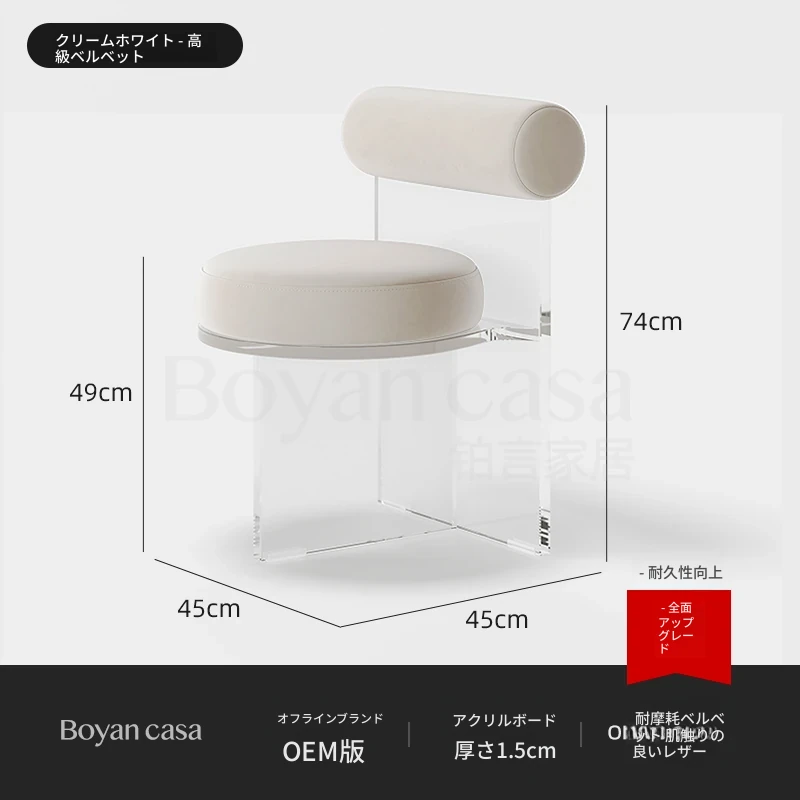 BOYANイタリアンミニマリズムの高級感漂う島台用チェア、透明アクリルの浮遊感あるデザイン。洗練されたスタイルで、おしゃれなダイニング空間を演出します。