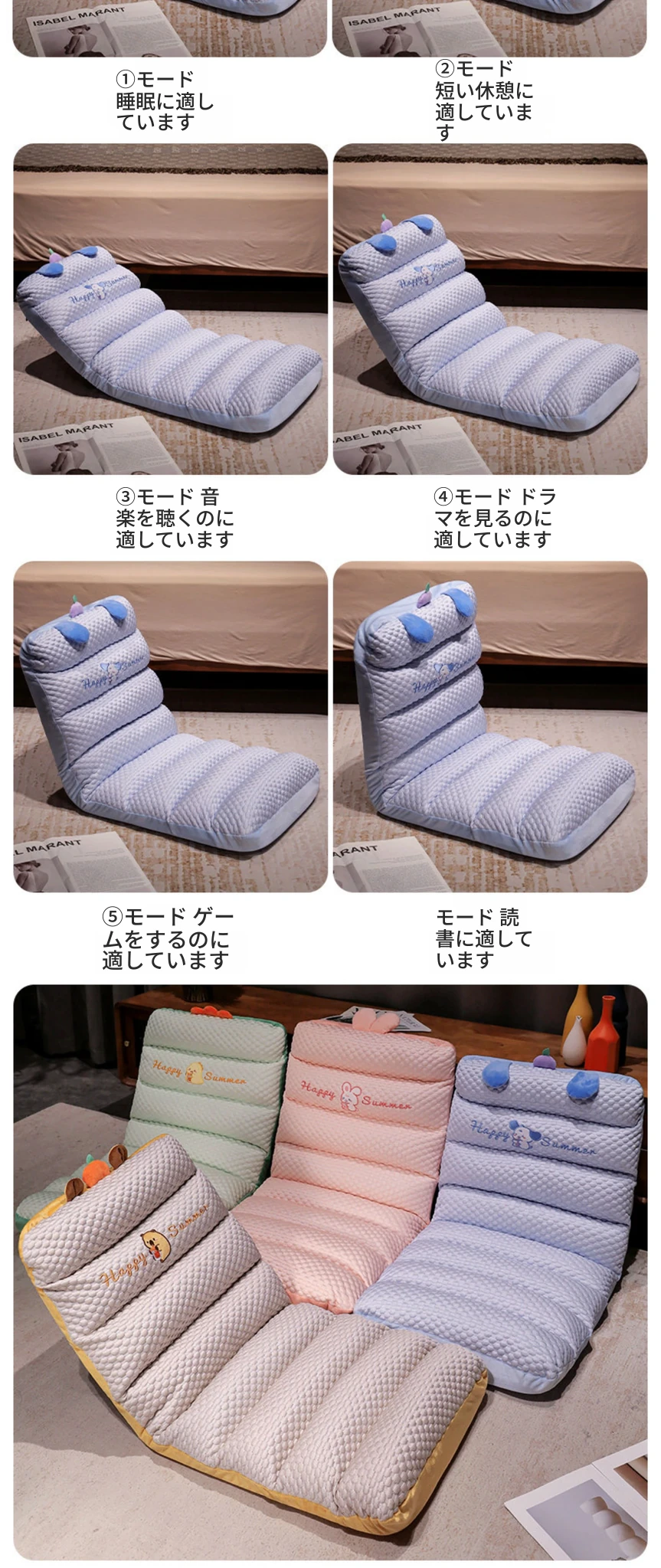 カートゥーンデザインの子供用リラックスソファ!寝転がってもOK、読書やくつろぎに最適な一人用ソファ。寝室やリビング、バルコニーで大活躍!快適なクッションと背もたれ付きで、楽しい時間を提供します。