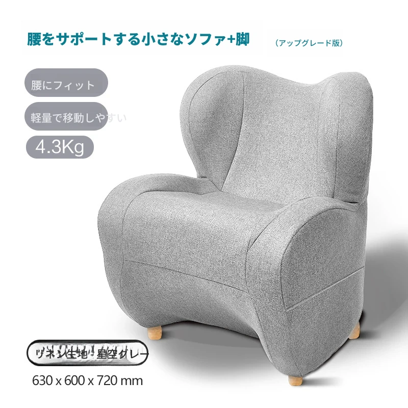 桔座エルゴノミクス背中サポート小ソファ - リビングや狭いスペースに最適なシンプルな一人用ゲーミングチェア!腰をしっかり支えて、リラックスした時間を楽しめる!