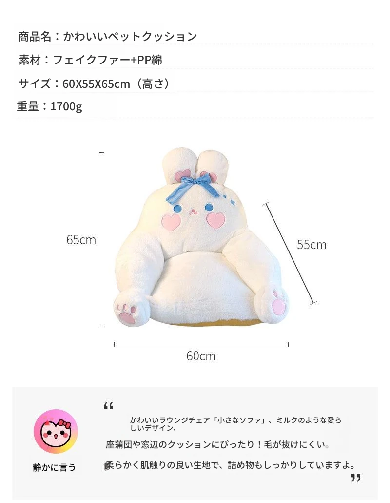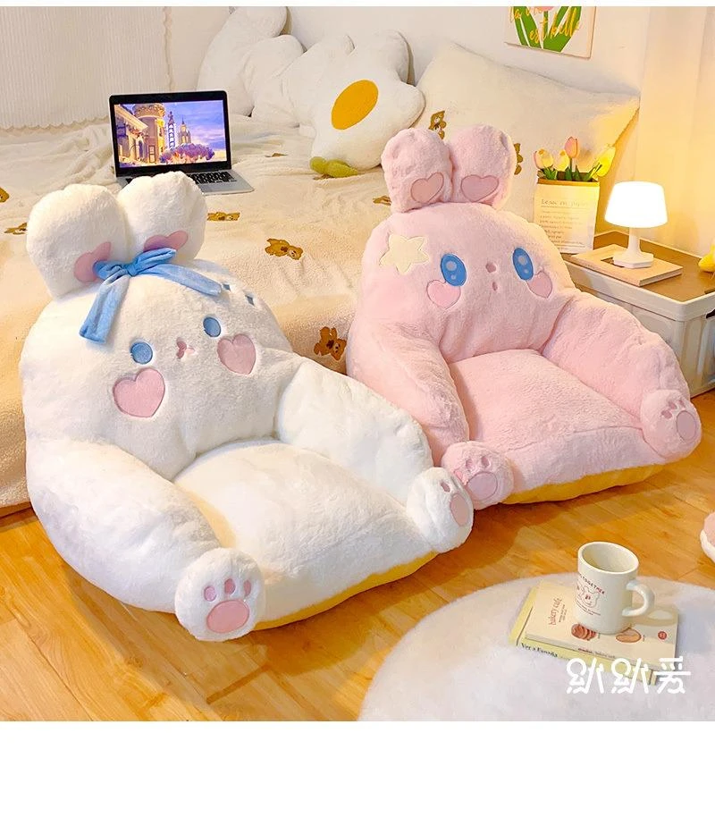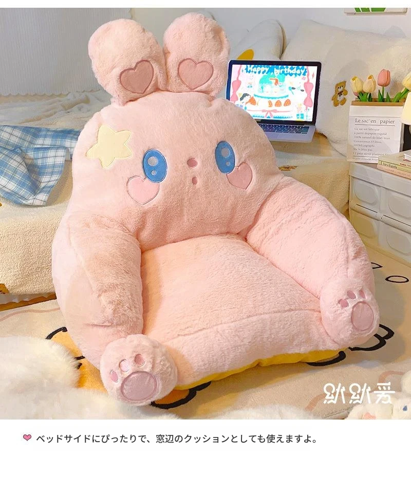 かわいいウサギデザインのリラックスソファチェア!おしゃれな寝室やカーペットにぴったり。子供たちのためのカートゥーンスタイルのクッションと背もたれ、読書やお昼寝に最適。心を癒すひとときをお届けします!