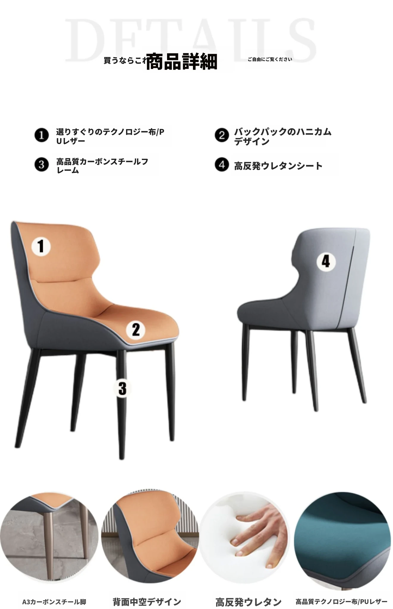 ディオ ポーカー ラグジュアリー チェア レザー素材 A3カーボンスチール サイドチェア インスタ映え ホテル用 家庭用 背もたれ付きチェア