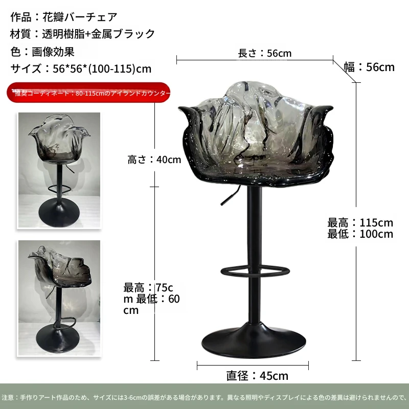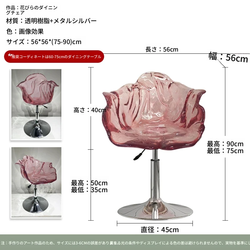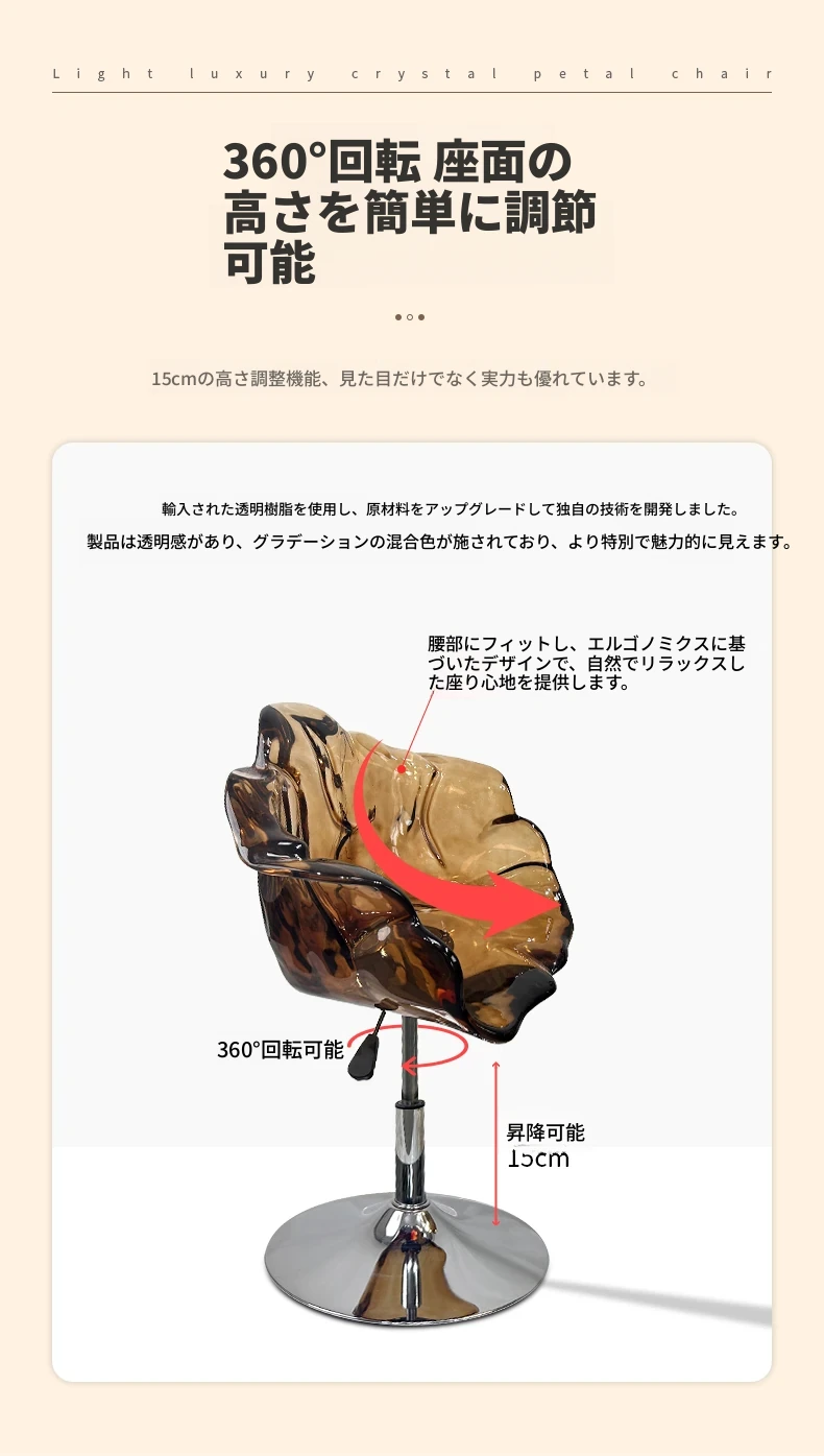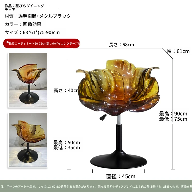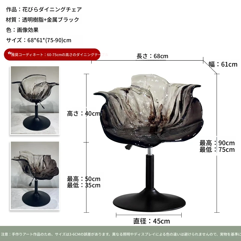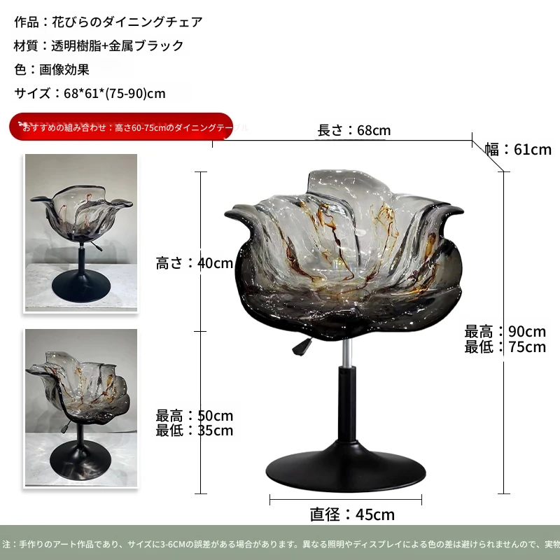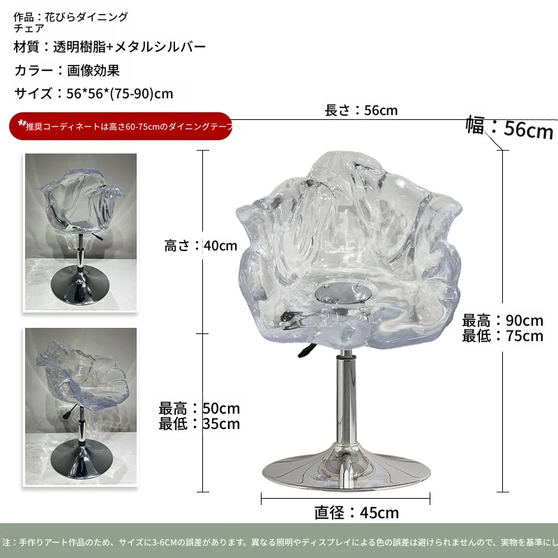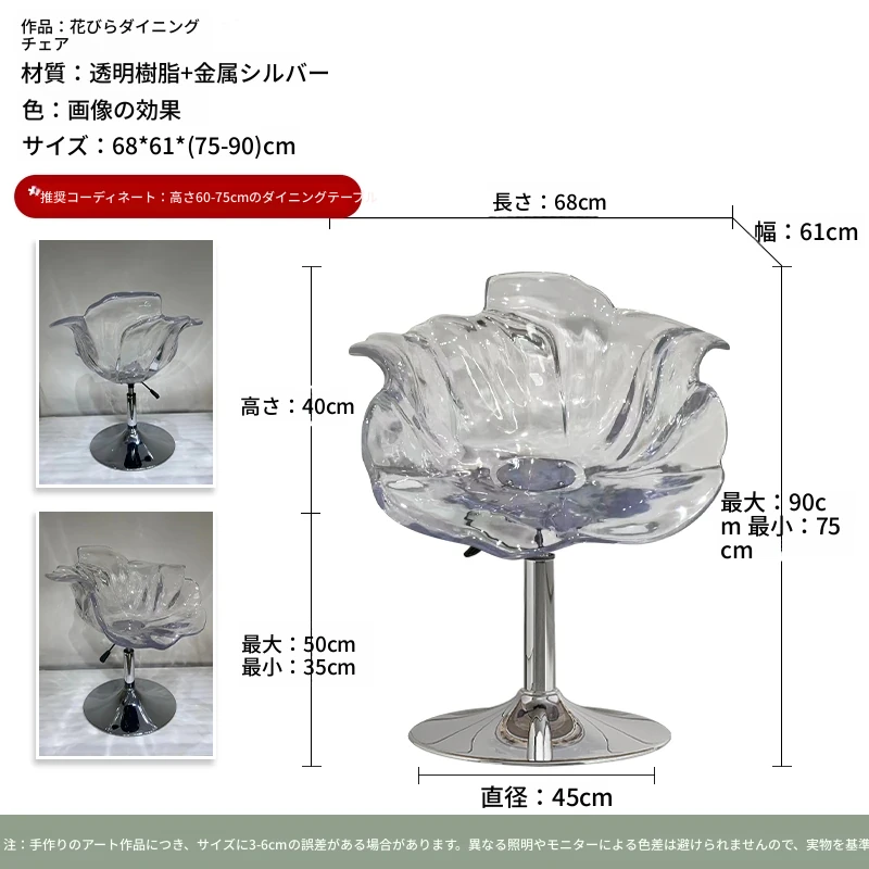 軽やかな高級感!エドラ回転花びらチェア - レストランや家庭に最適なデザイナーズ透明樹脂製、ハイエンド商業向け昇降バースツール。おしゃれで機能的な空間を演出します!
