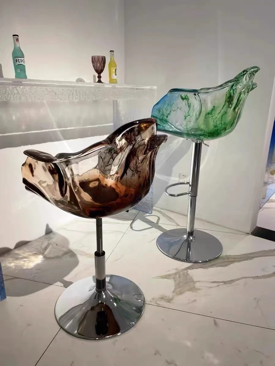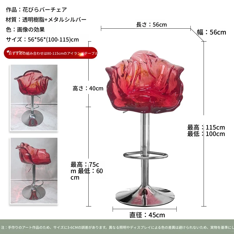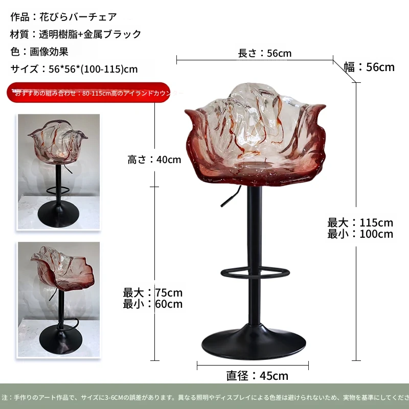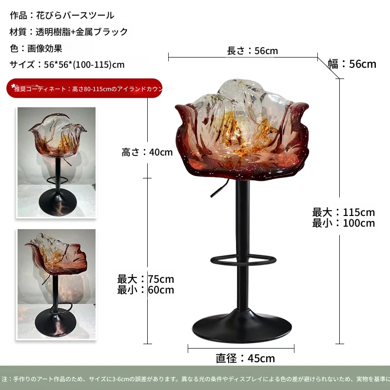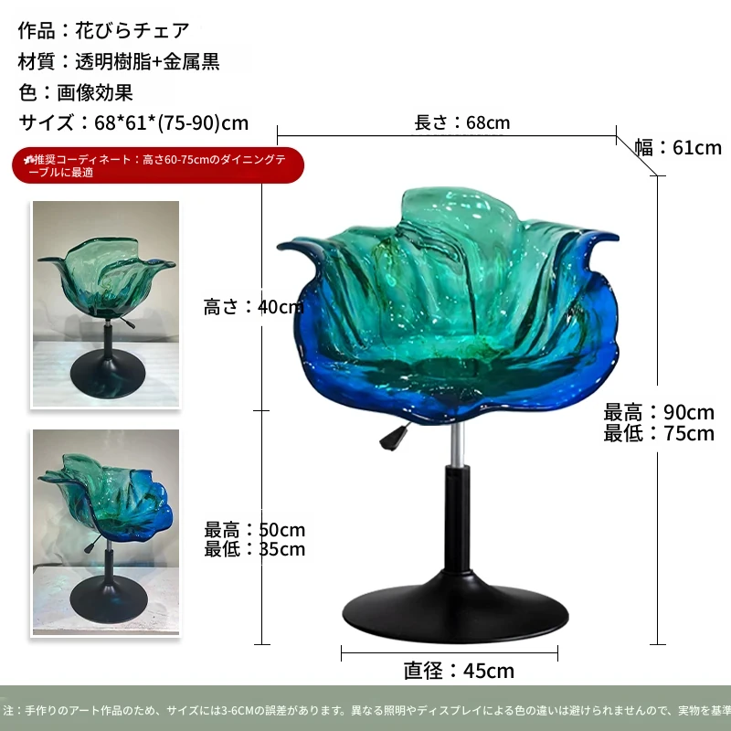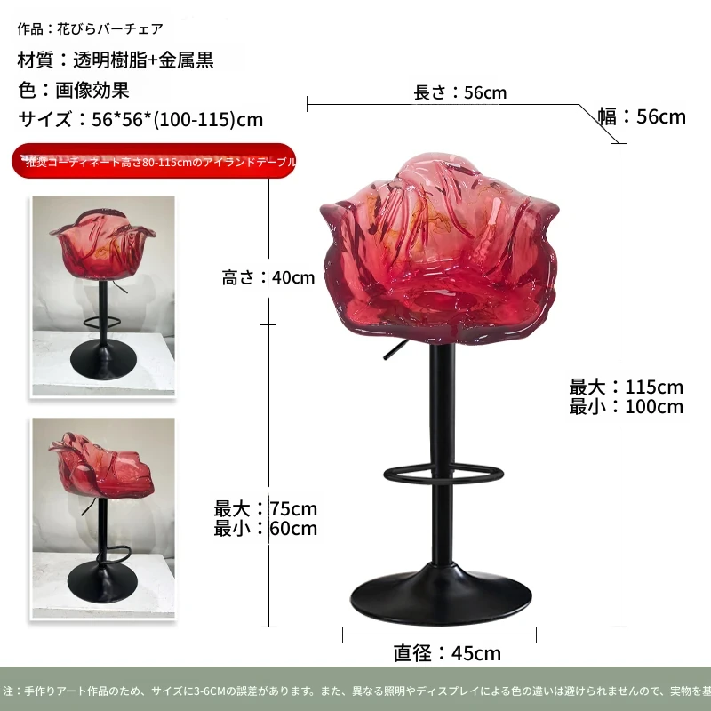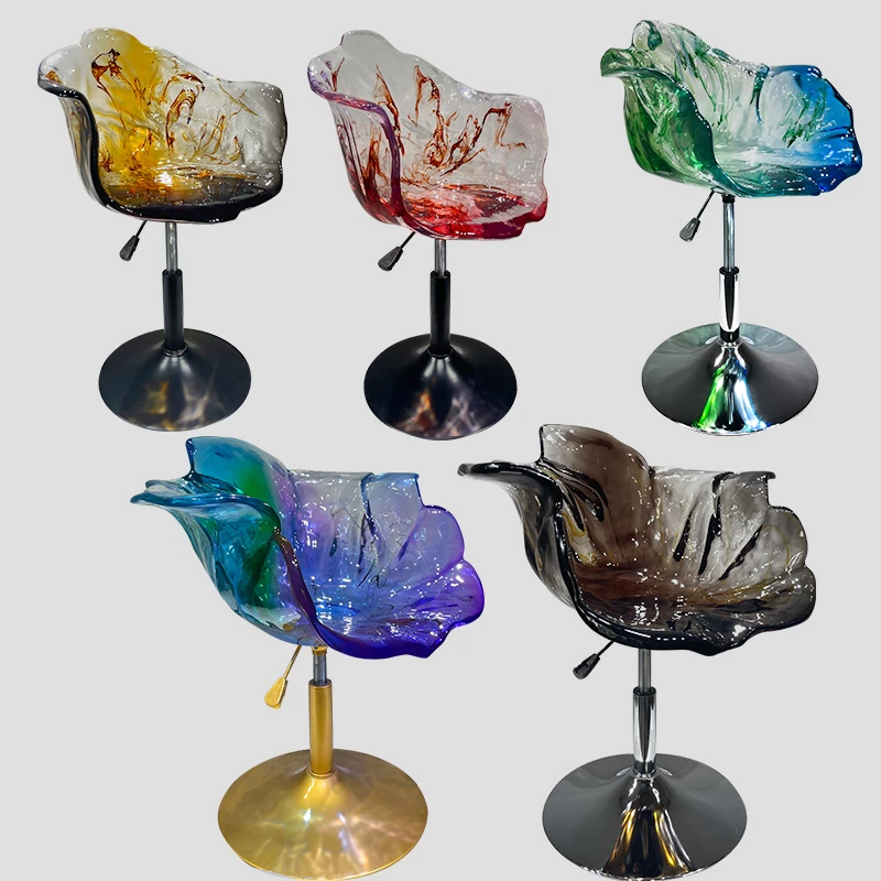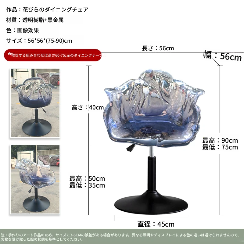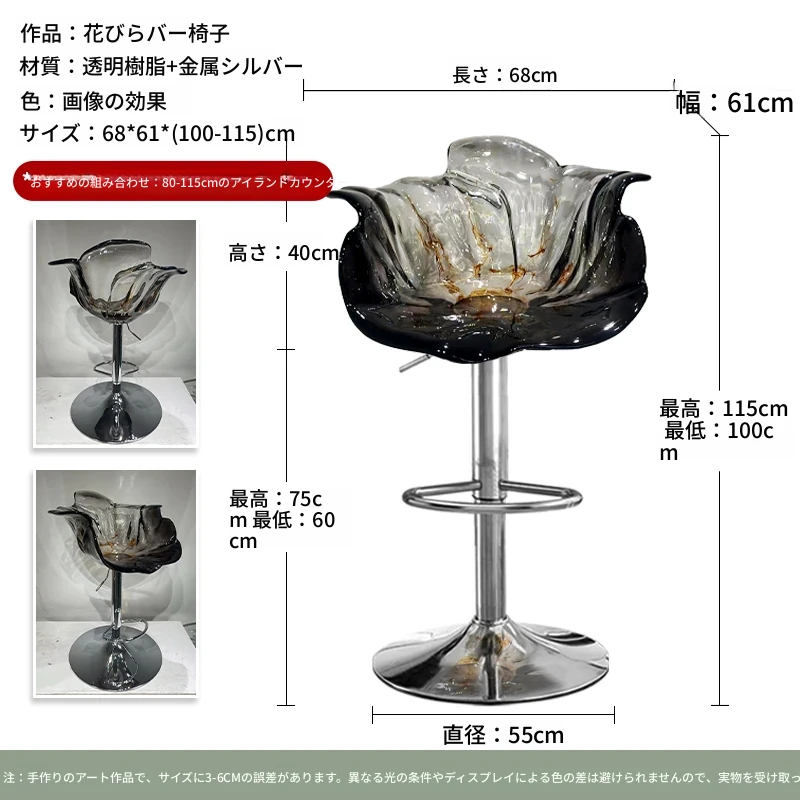軽やかな高級感!エドラ回転花びらチェア - レストランや家庭に最適なデザイナーズ透明樹脂製、ハイエンド商業向け昇降バースツール。おしゃれで機能的な空間を演出します!