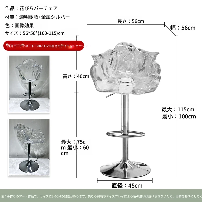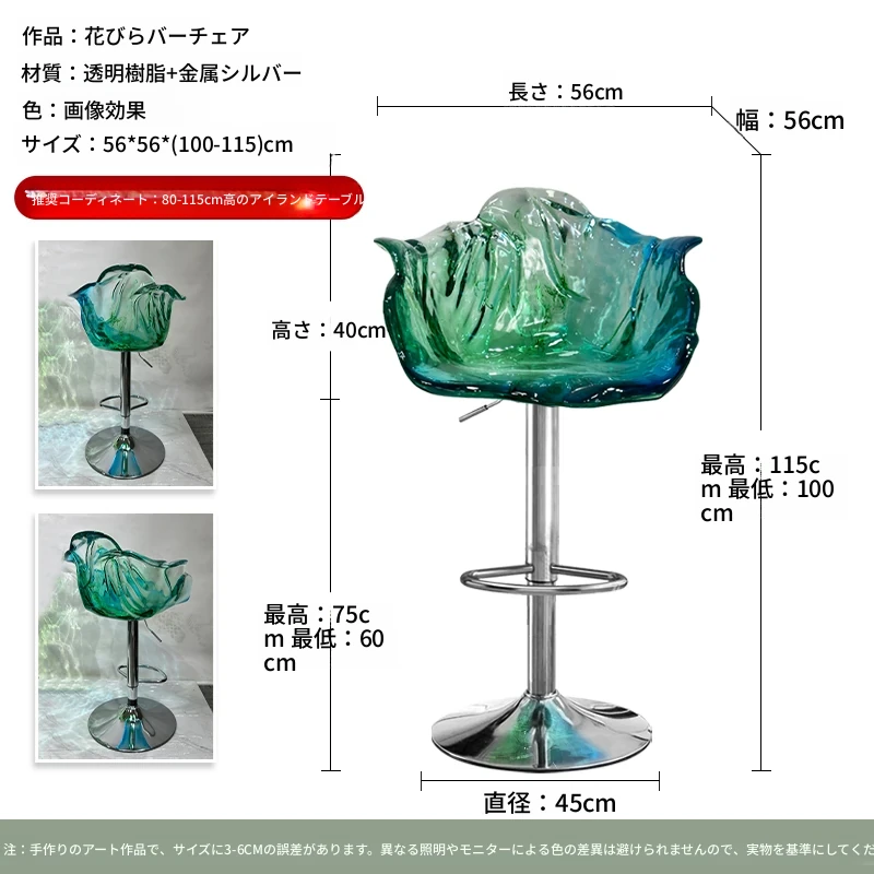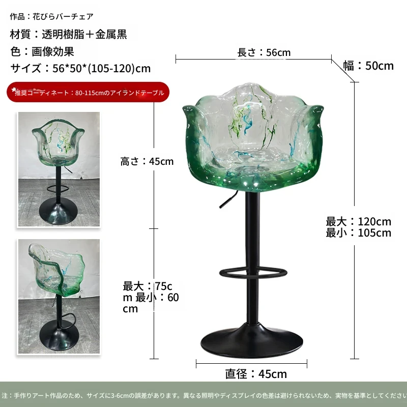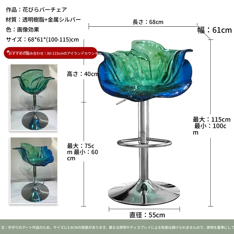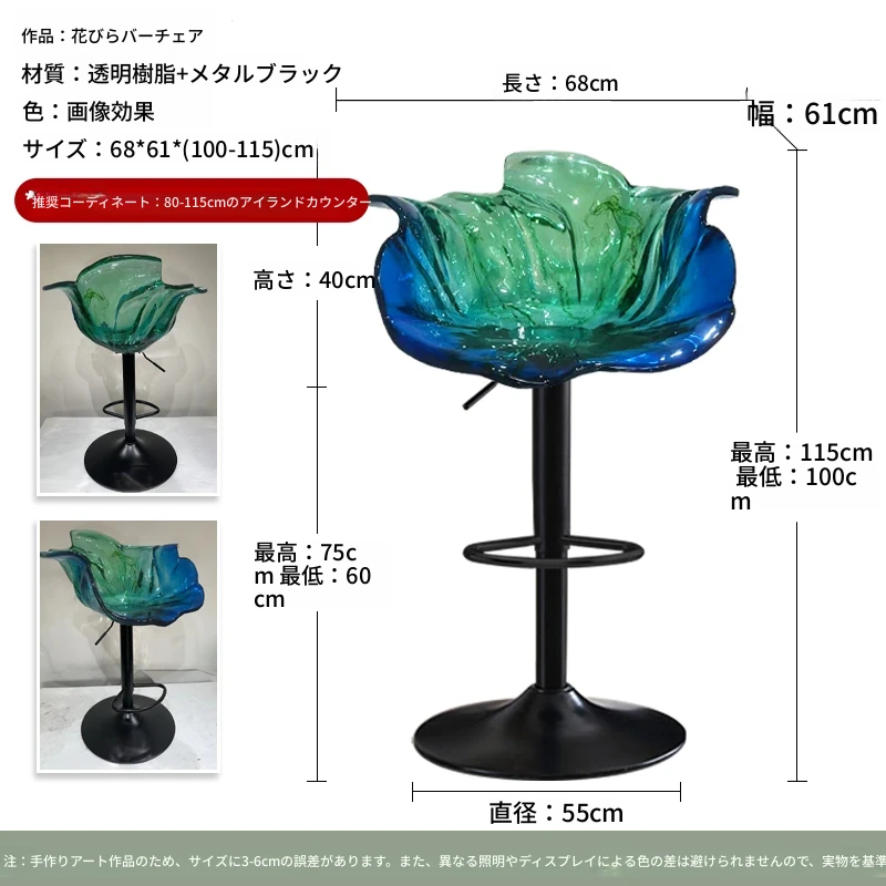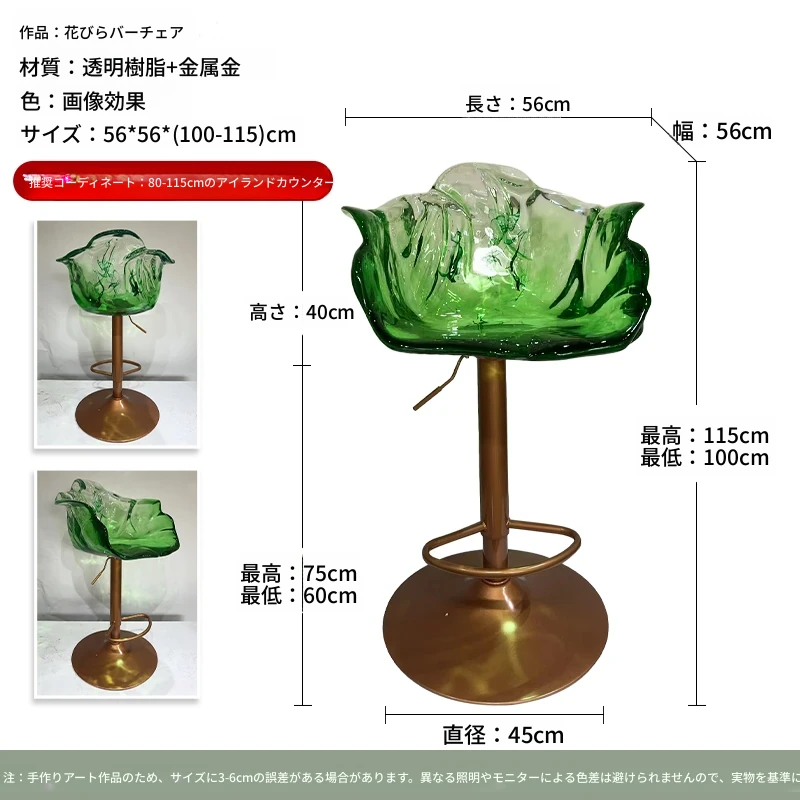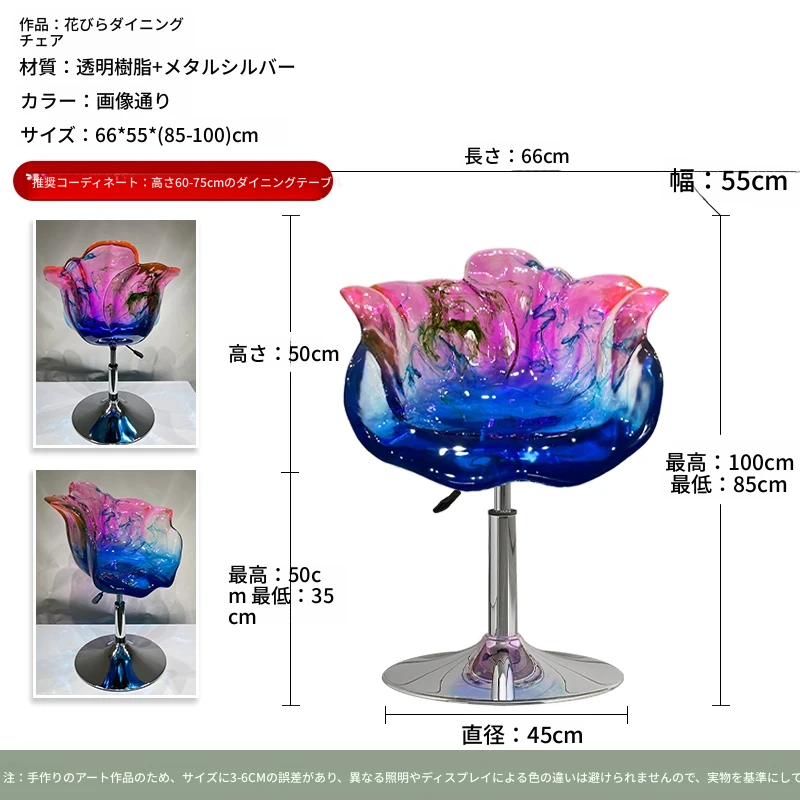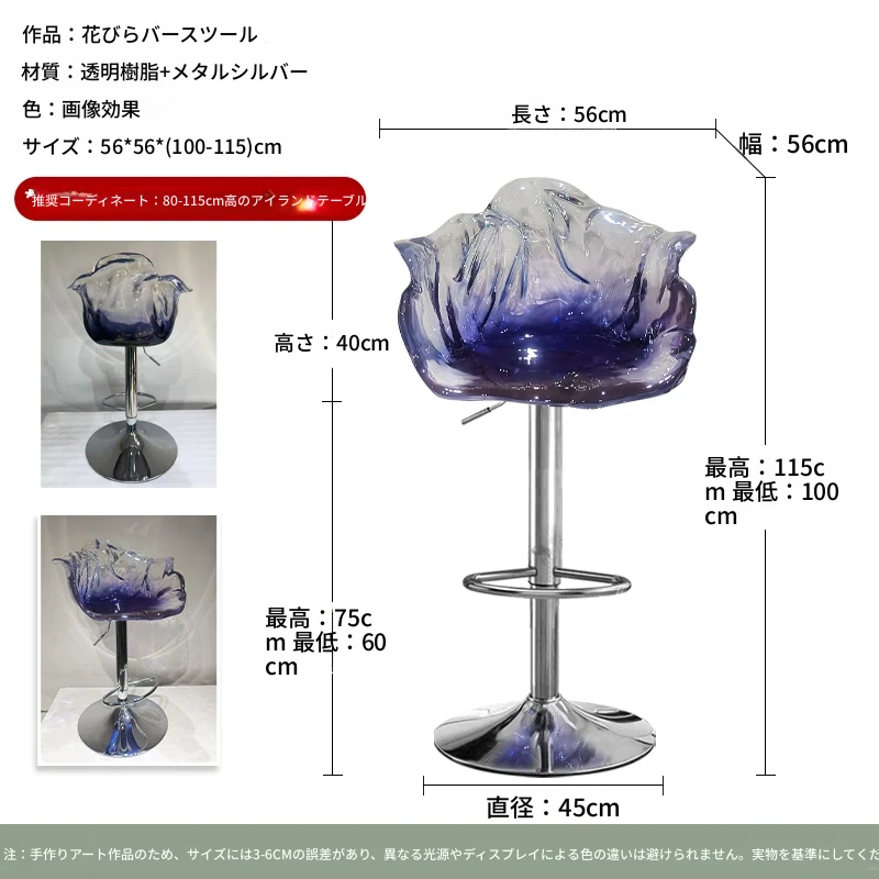 軽やかな高級感!エドラ回転花びらチェア - レストランや家庭に最適なデザイナーズ透明樹脂製、ハイエンド商業向け昇降バースツール。おしゃれで機能的な空間を演出します!