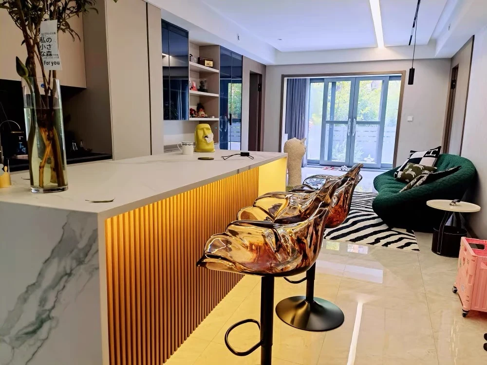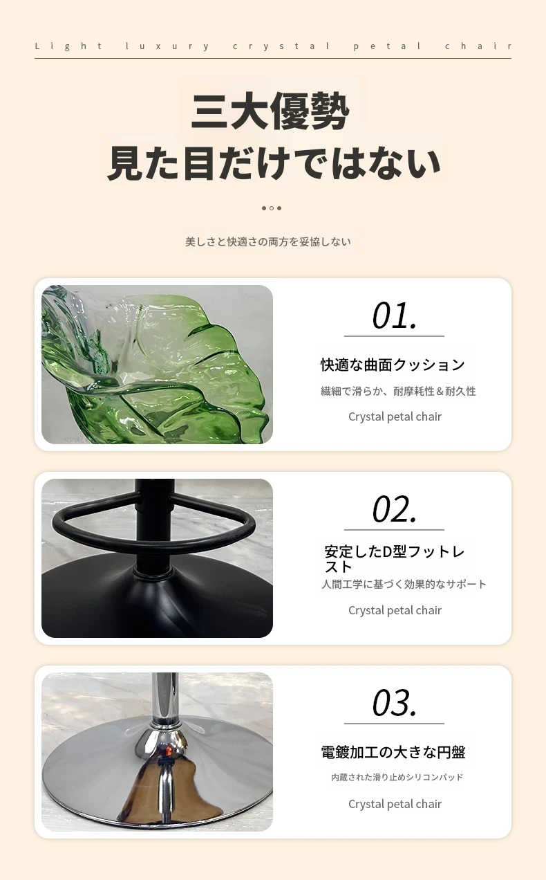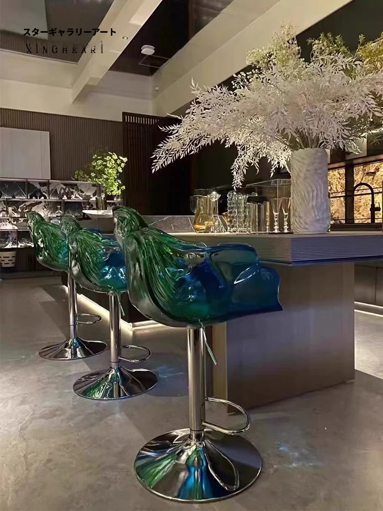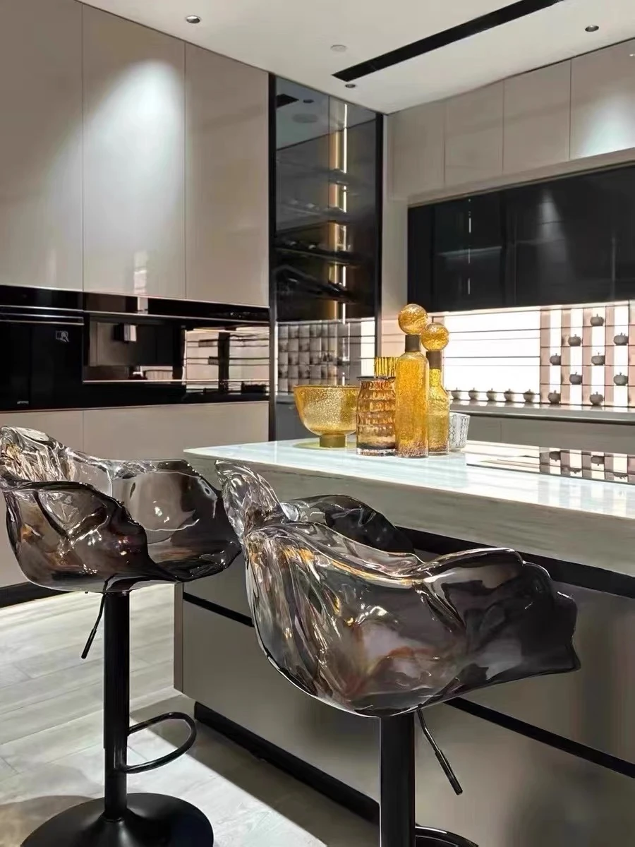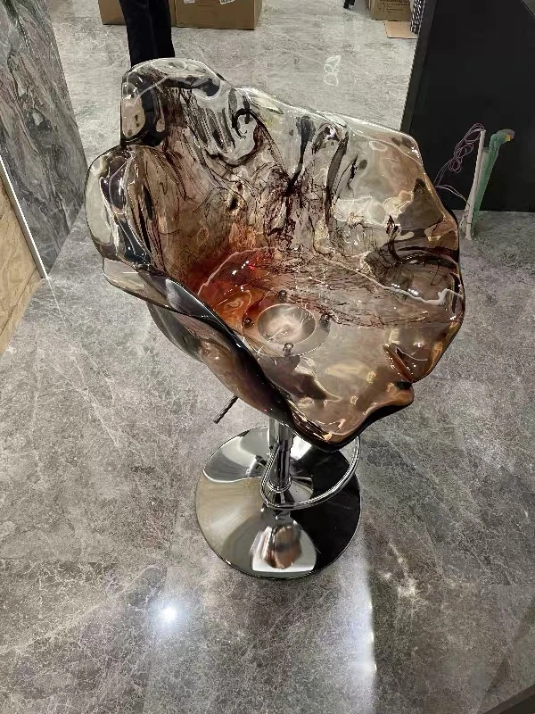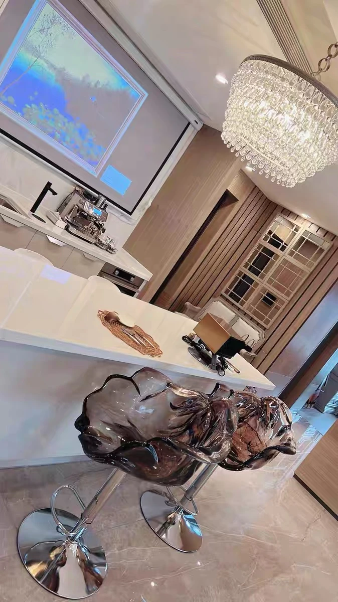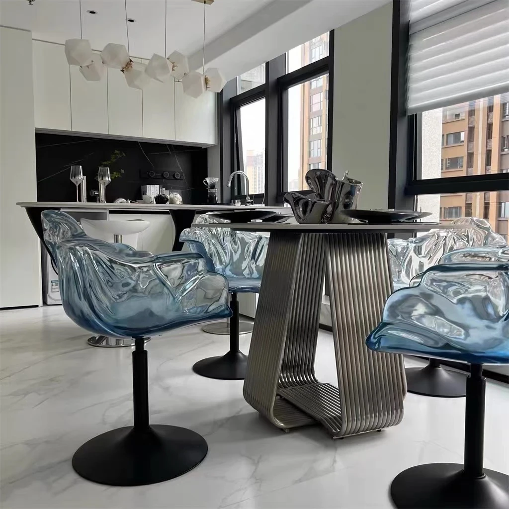 軽やかな高級感!エドラ回転花びらチェア - レストランや家庭に最適なデザイナーズ透明樹脂製、ハイエンド商業向け昇降バースツール。おしゃれで機能的な空間を演出します!